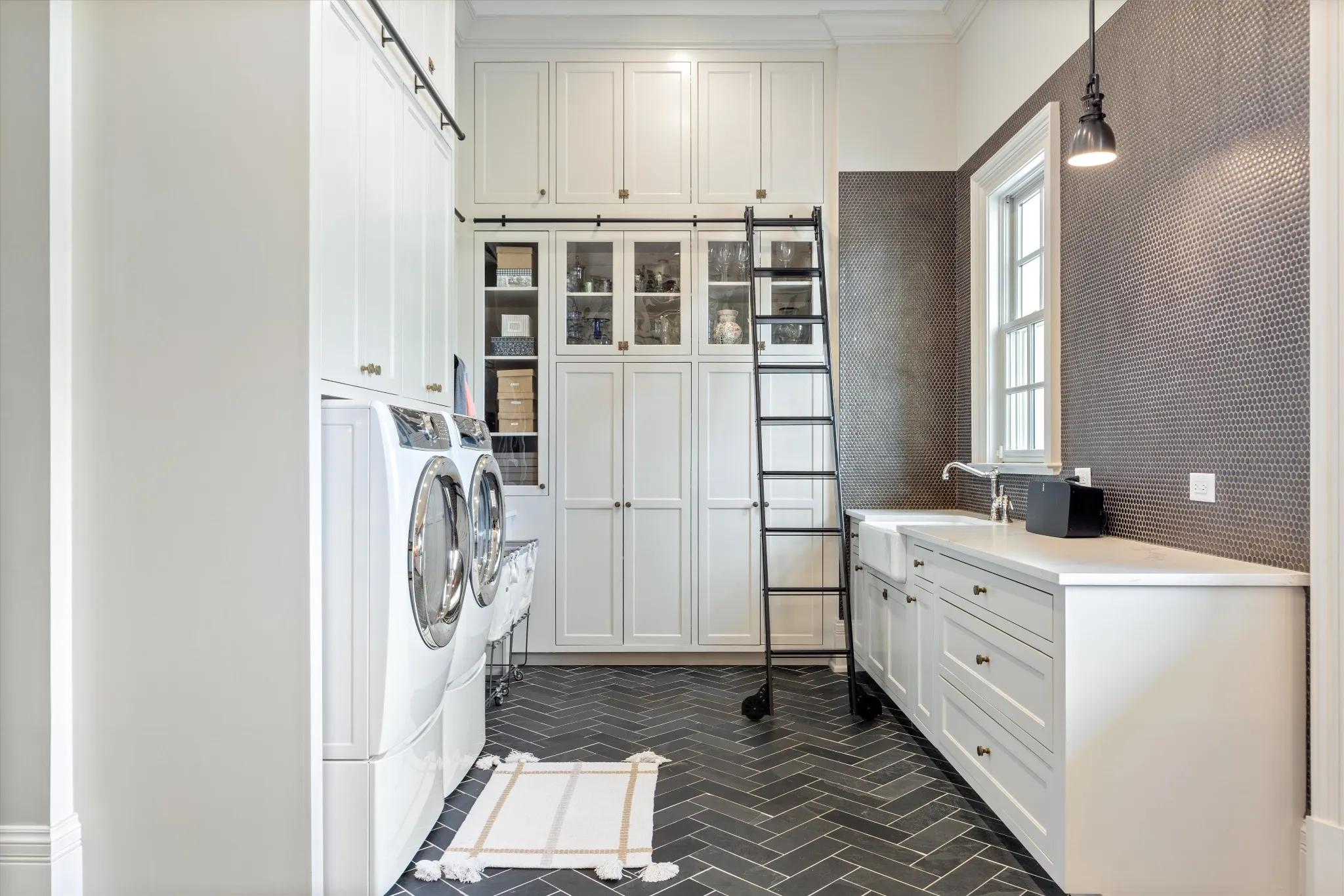 The chef’s kitchen has been updated to become a true masterpiece, featuring a custom island, exquisite cabinetry, and a world-class La Cornue range—ideal for both everyday cooking and entertaining. The thoughtfully designed scullery offers abundant storage space, keeping your kitchen organized and functional.