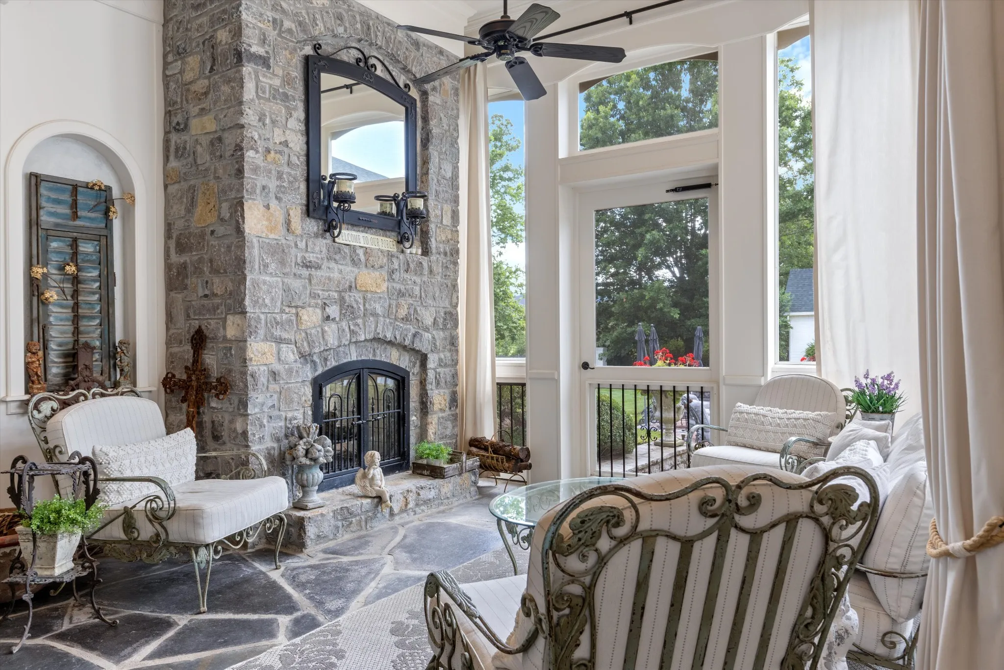 The home’s seamless blend of classic design and modern comforts includes a screened-in porch, ideal for enjoying peaceful outdoor moments.