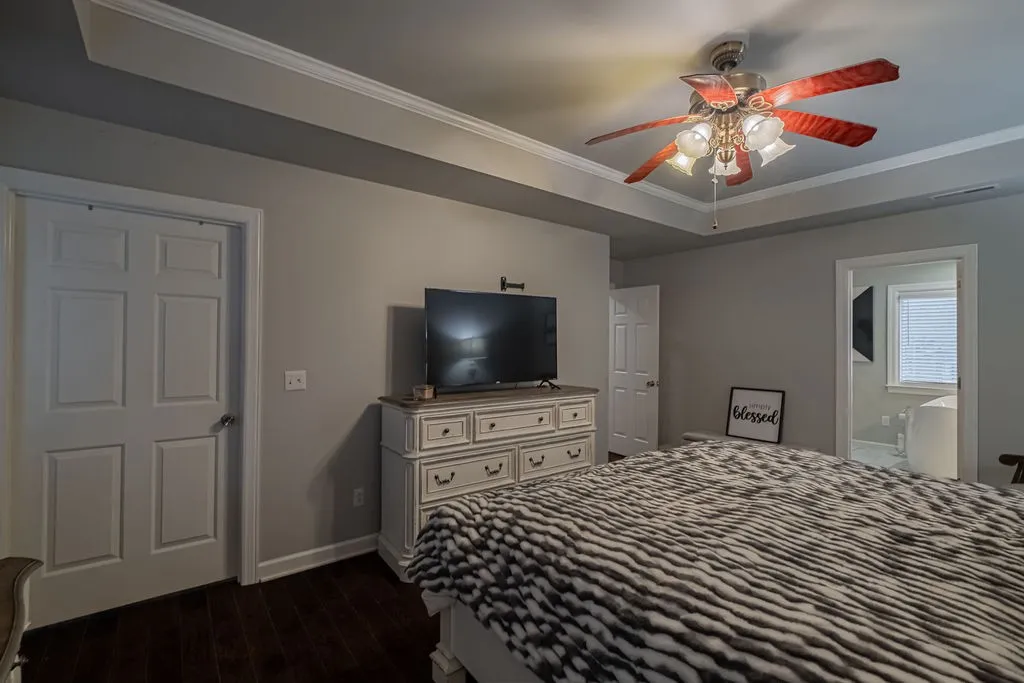 MOTIVATED SELLER! Let the Red Door invite you into your new home! Step inside the foyer unto new engineered hand scraped hardwood flooring ,admire a cozy living room with bay windows, and a formal dining room with charm to spare. The kitchen features custom cabinetry, unique granite countertops, all SS appliances, and new tile flooring. Enjoy a spacious family room with a fireplace (gas piped, just needs logs) and a view of the backyard, and retreat upstairs(2 staircases) to your oversized primary suite with a massive walk-in close and a floor-to ceiling tiled dual shower. The 4th bedroom could be that or bonus room/flex room. MOVE IN READY!! Bring me your offers ! Highly desired Macon Manor subdivision…..Within a golf cart ride to Lakewood Country & Golf Club.