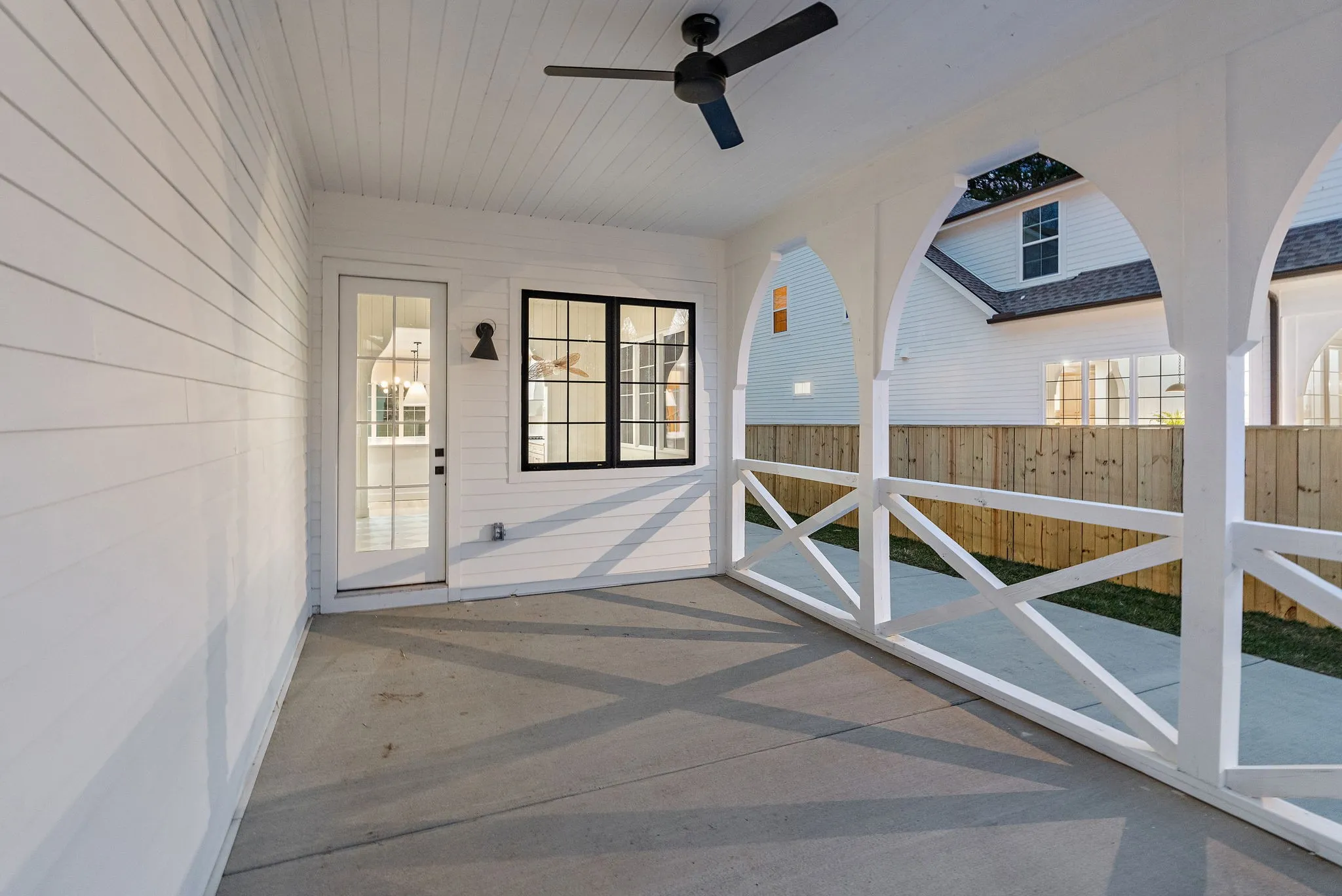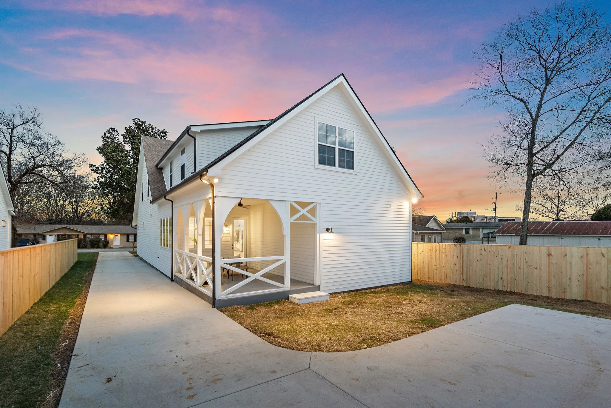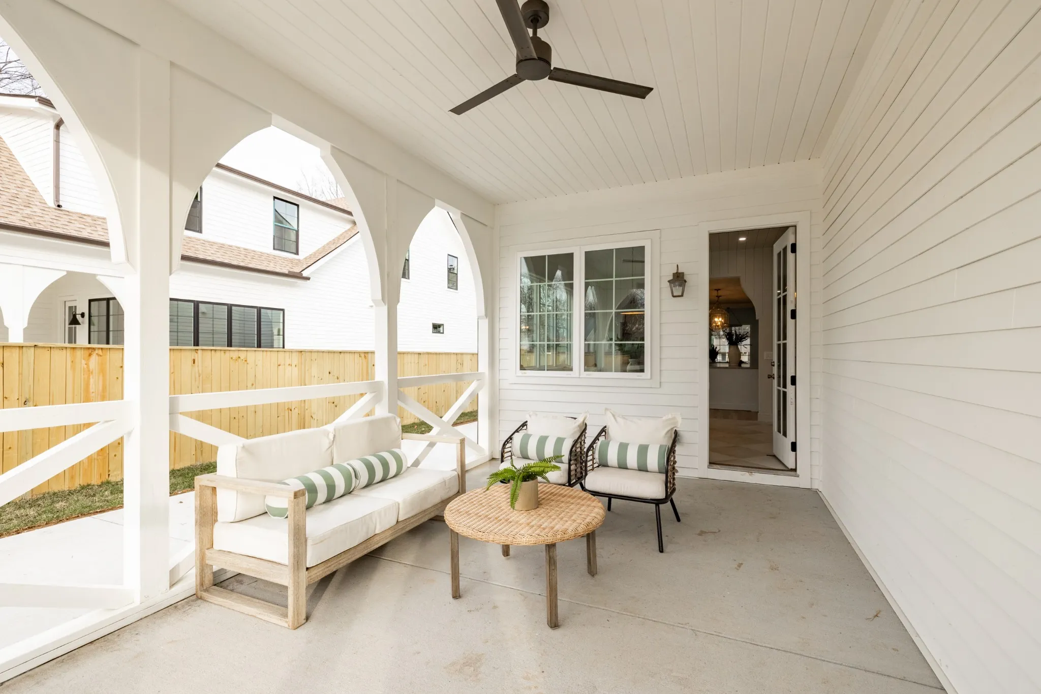 A fenced backyard offers privacy for outdoor gatherings or quiet afternoons.