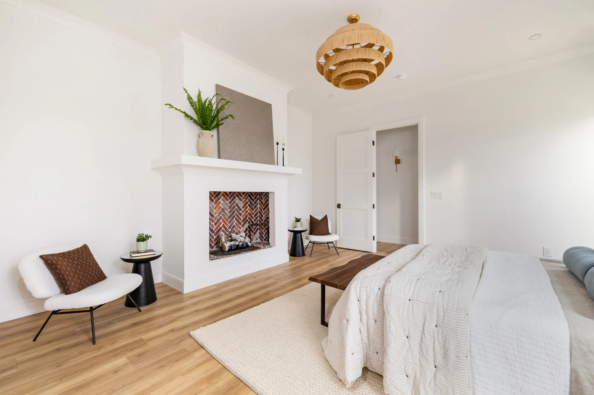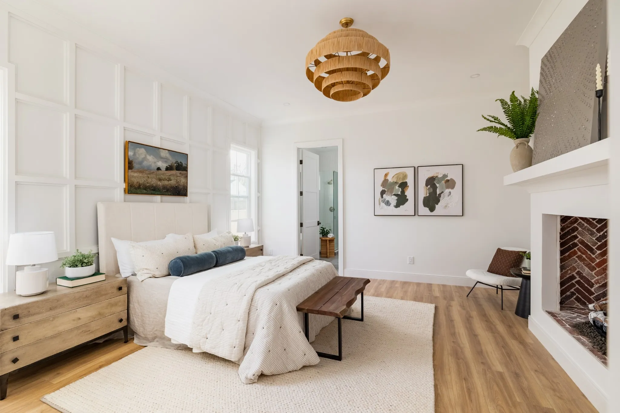 Enjoy one of two fireplaces, including in the spacious main-level primary suite. The en suite bath features a soaking tub and intricate tilework, offering a spa-like retreat. Each of the four additional bedrooms includes its own private bath for optimal comfort.