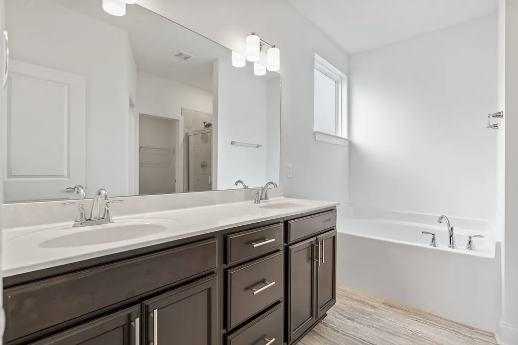 ALMOST NEW, LESS THAN A YEAR OLD!!! FABULOUS 4 BR, 2.5 BA, plus Bonus, PLUS Massive Storage areas!!! Wide Entry leading to Open Concept plan, into Great Room. Hard Surface Flooring (LVT Plank) in Main level Living Areas, Great Room with Gas Fireplace and Ceiling Fan….Kitchen w/island and granite, SS appliances, and custom staggered cabinetry. Dining Area is open to Great Room, and Kitchen, and direct access door to fenced backyard. Owner’s Suite at rear of home/Owner’s Bath features separate garden tub, elegant upgraded tile surround shower, double vanity, and huge WIC. Half Bathroom is easily accessible near Great Room, and separate Utility Room off kitchen area offers spacious work area. Upper level has 3 additional BR’s and Bonus Room, floored walk-in storage, Additional Full bathroom with double vanities, additional separate room for storage, and open Study/Flex use Loft. Backyard feature large patio, and NEW fencing!…