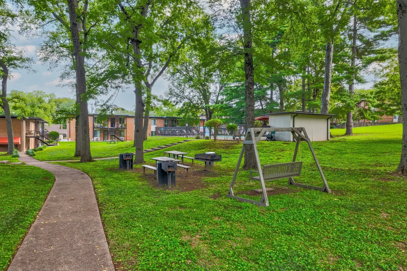 P- One bed condo in the heart of Hillsboro Village! Walking/Biking distance to Belmont/Vanderbilt! This Adorable first floor unit has been well maintained. The Villager offers a Community Pool, Park-Like Setting, and On-Site Laundry Room. Amazing location less than five minutes from Green Hills, Hillsboro Village, 12 South; Less than ten Minutes to Downtown, mid town and the nations; Right off I-440 for easy access. All Appliances Remain. No Short-Term Rentals Allowed Less Than 30 Days. The community features lush green space with picnic tables and a large pool. HOA of $135/month to include pool, water, trash pickup, and grounds/exterior maintenance.