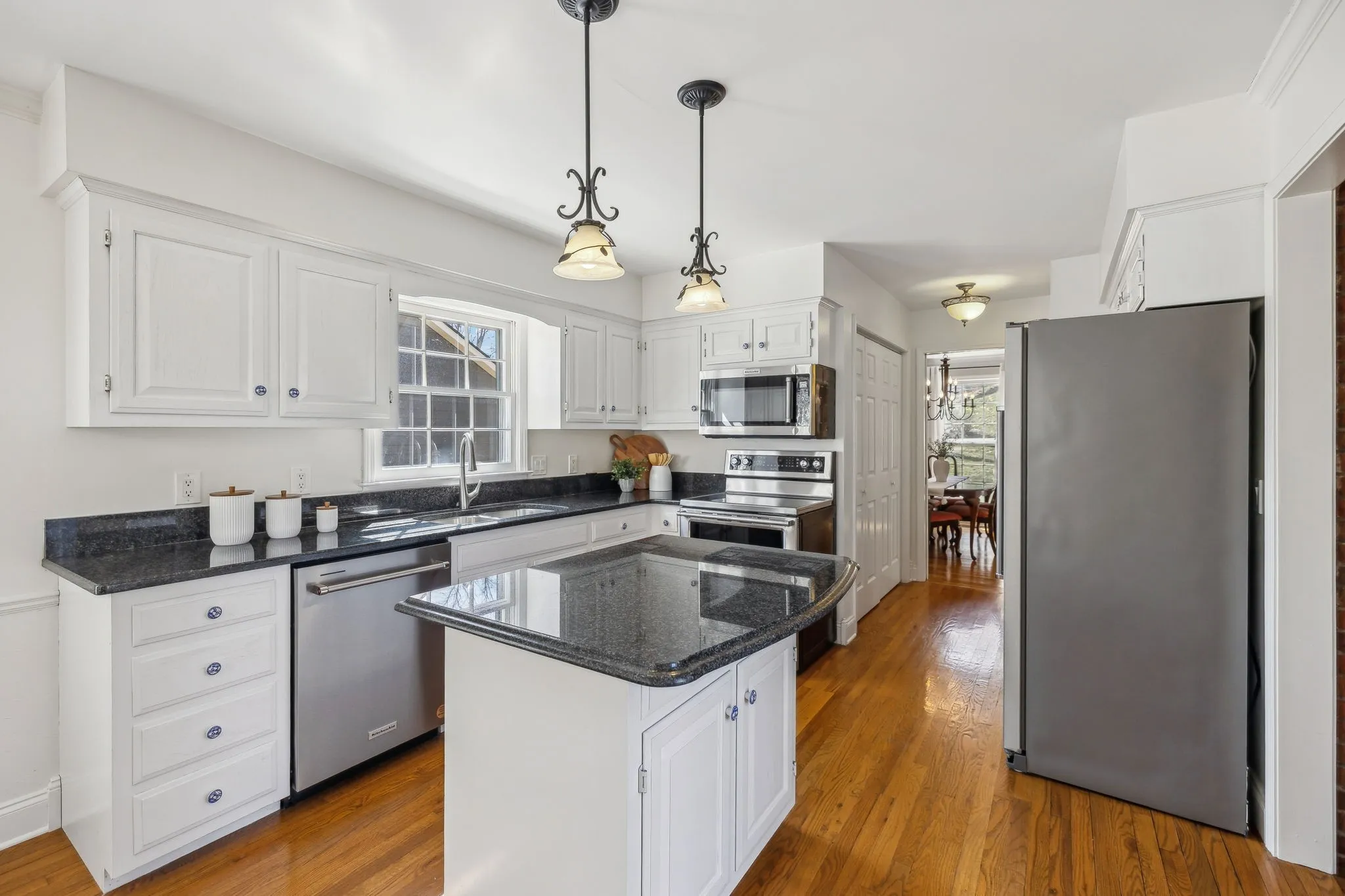 Spacious 5-bedroom, 3-bath home in the desirable River Rest subdivision, nestled between Nashville and historic downtown Franklin. This home features two primary suites—one up, one down—plus large bedrooms with walk-in closets. The upstairs suite includes a versatile sitting room, perfect as an office, nursery, playroom, or lounge. The newly remodeled downstairs primary bath boasts a marble countertop double vanity and a walk-in shower. Custom built-ins add character to the family room, downstairs bedroom, and sitting area. The kitchen features granite countertops, an island, and new stainless fridge and dishwasher. Real hardwood floors and a brick fireplace enhance the charm. A full unfinished walk-out basement offers 1253 sqft of endless possibilities. With mature trees in the front and back, this home blends ‘80s and ‘90s character with thoughtful modern updates. Walkable to nearby schools and backs to community green space with a pool, tennis courts, and playground, plus easy access to Harpeth River trails.