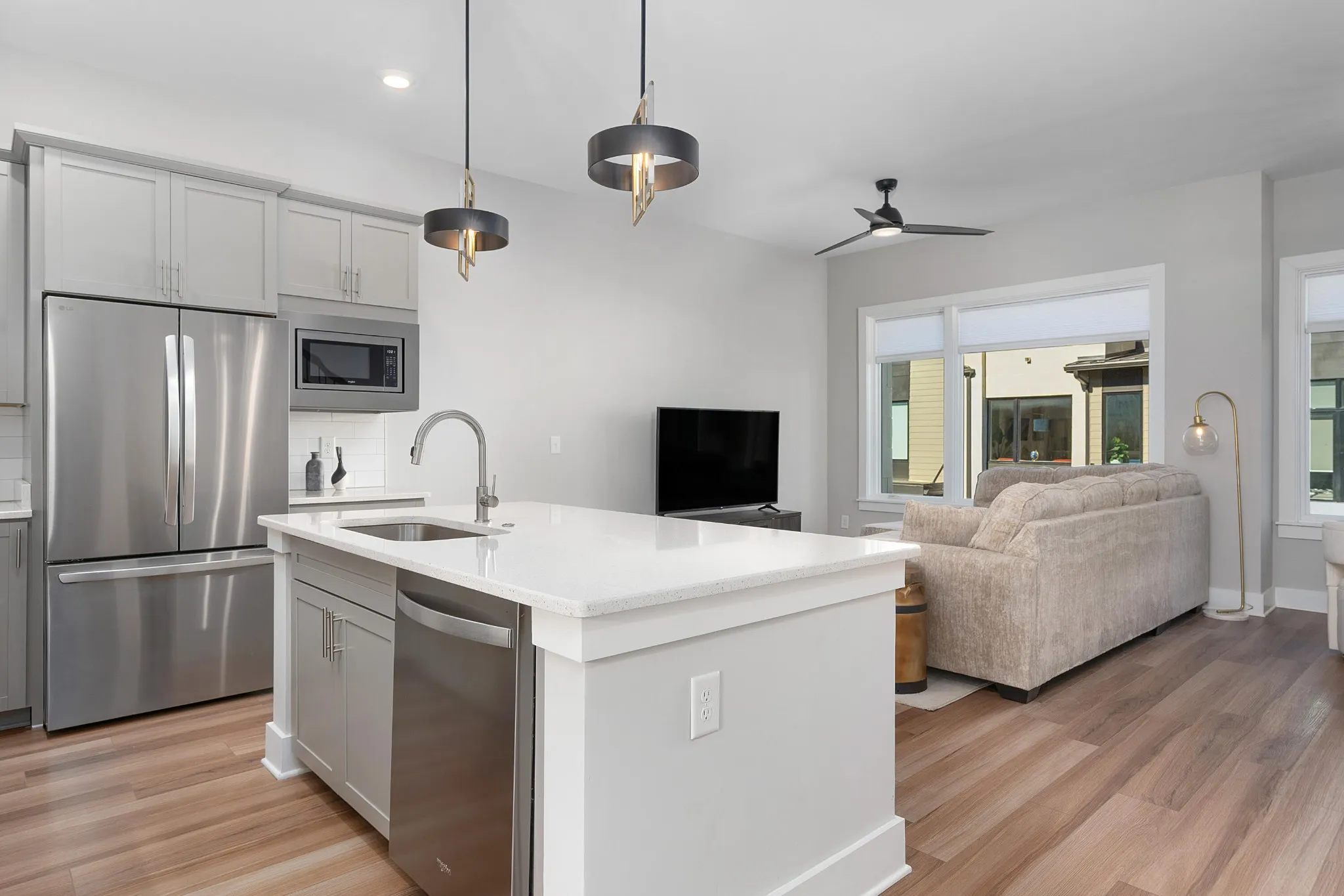 Interior Features Open Floorplan, Walk-In Closet(s), High Ceilings, Kitchen Island, Ceiling Fan(s)