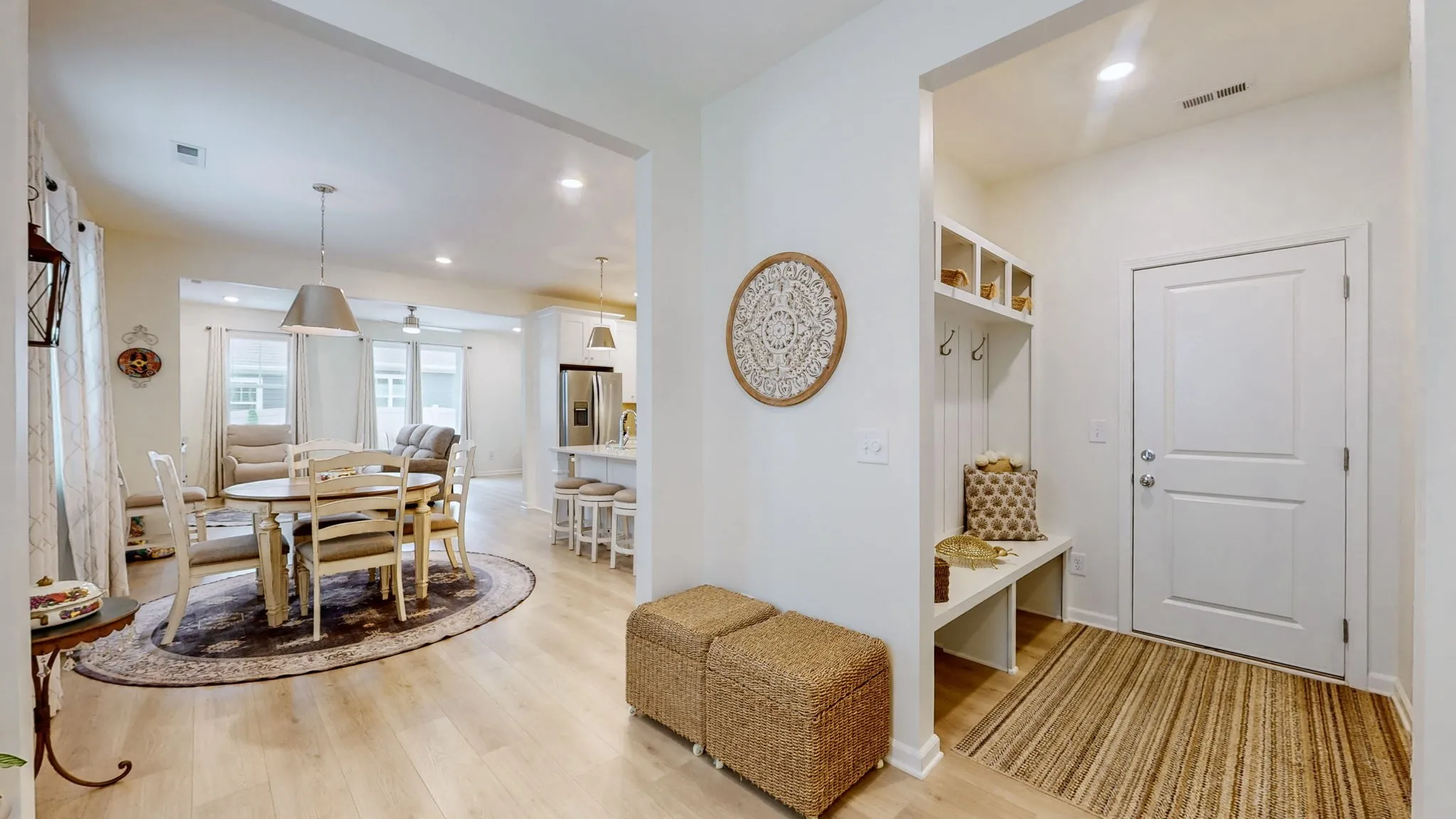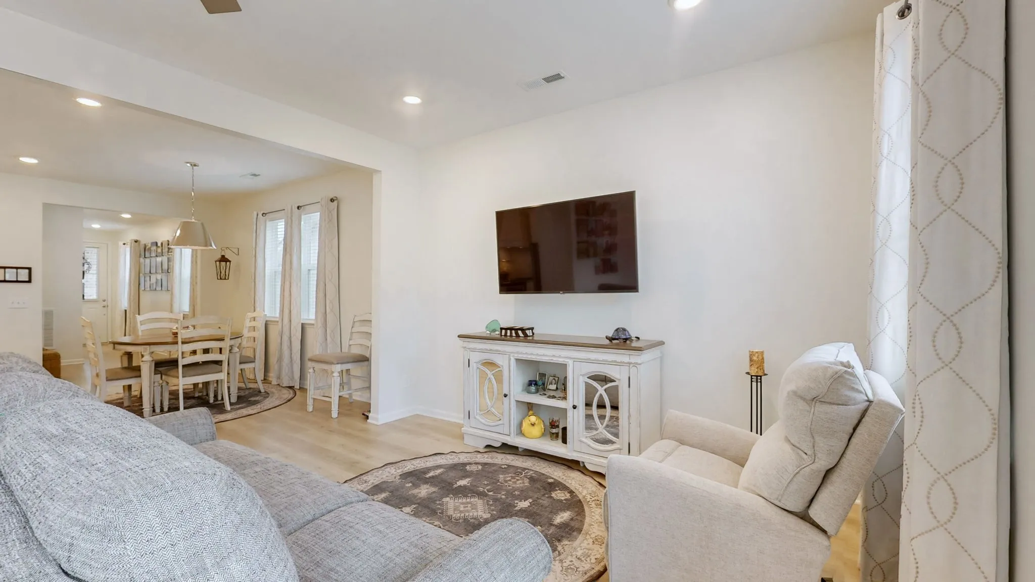 Welcome to popular Dogwood Villas in Smyrna TN featuring pickle ball courts, sidewalks, streetlights and a great location close to shops, dining, parks and more! This fabulous ONE LEVEL 2BR / 2BTH / 2 CAR Garage Condo is one of the most popular plans with all the upgrades including custom blinds, drapery and luxury LVP floors in living areas and bedrooms! Welcoming entry foyer opens up to the bright and beautiful eat-in kitchen with white cabinets, stone counter tops, upgraded backsplash, SS appliances, Island with pendant lighting and large pantry. The Living area is bright and open with easy access to the beautifully designed, tastefully landscaped backyard with privacy fence where you can enjoy the sunshine, your morning coffee, read a book or just relax with friends or your Furbaby. The Primary Bedroom includes a large bathroom with tiled walk-in shower and floors and double vanities. The secondary bedroom is perfect for friends, family or even a roommate. The two-car garage offers driver’s side, zero step home entry access and drop zone for shoes, jackets, groceries, etc. Other extras include laundry room, front entry clear glass storm door, landscape irrigation and concrete driveway with parking pad. Perfect primary home, Second Home or Investment property for folks visiting their families in the area for long term visits (minimum 6 months). Call today for a more information or a showing!
