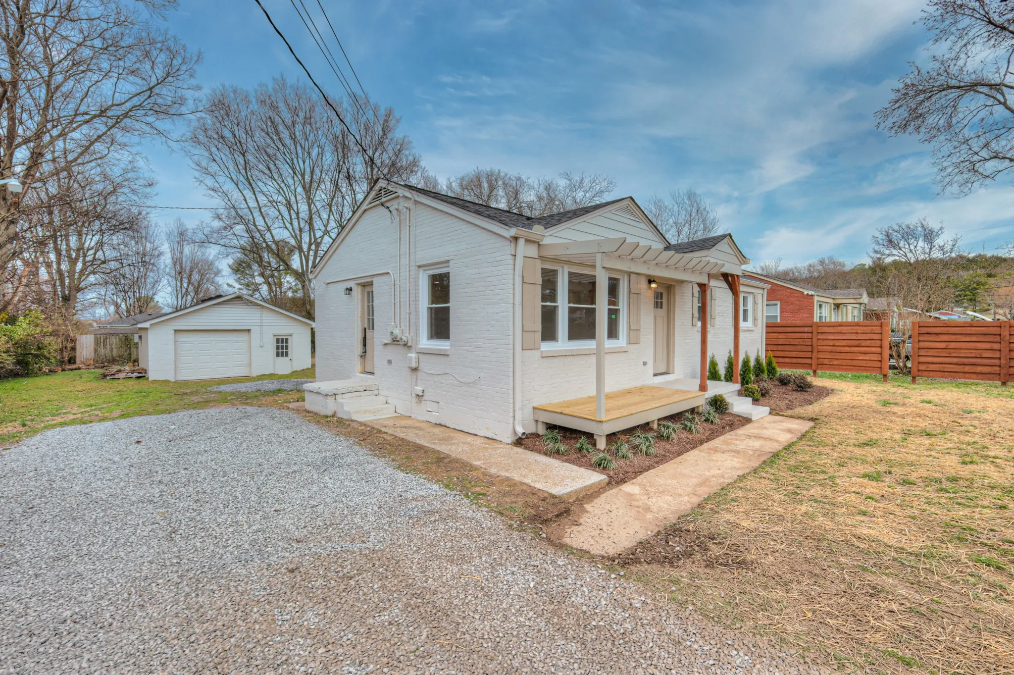 **Charming Remodeled Ranch with Modern Upgrades!** Step into this beautifully remodeled ranch home, where modern upgrades meet timeless charm! Freshly painted inside and out, this home boasts brand-new flooring throughout, creating a bright and inviting atmosphere. The kitchen has been completely transformed with stylish new cabinetry and open shelving, perfect for both function and display. Relax and unwind on the welcoming front porch, now enhanced with a stunning pergola, providing the perfect spot for morning coffee or evening conversations. The bathrooms have been thoughtfully remodeled with contemporary finishes. With its fresh updates and inviting spaces, this home is move-in ready and waiting for its new owners to enjoy.