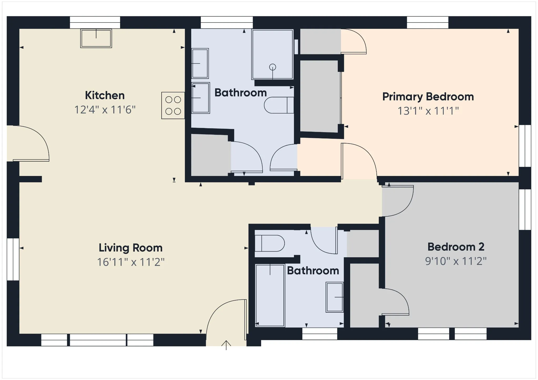 2 Beds Total Bedrooms