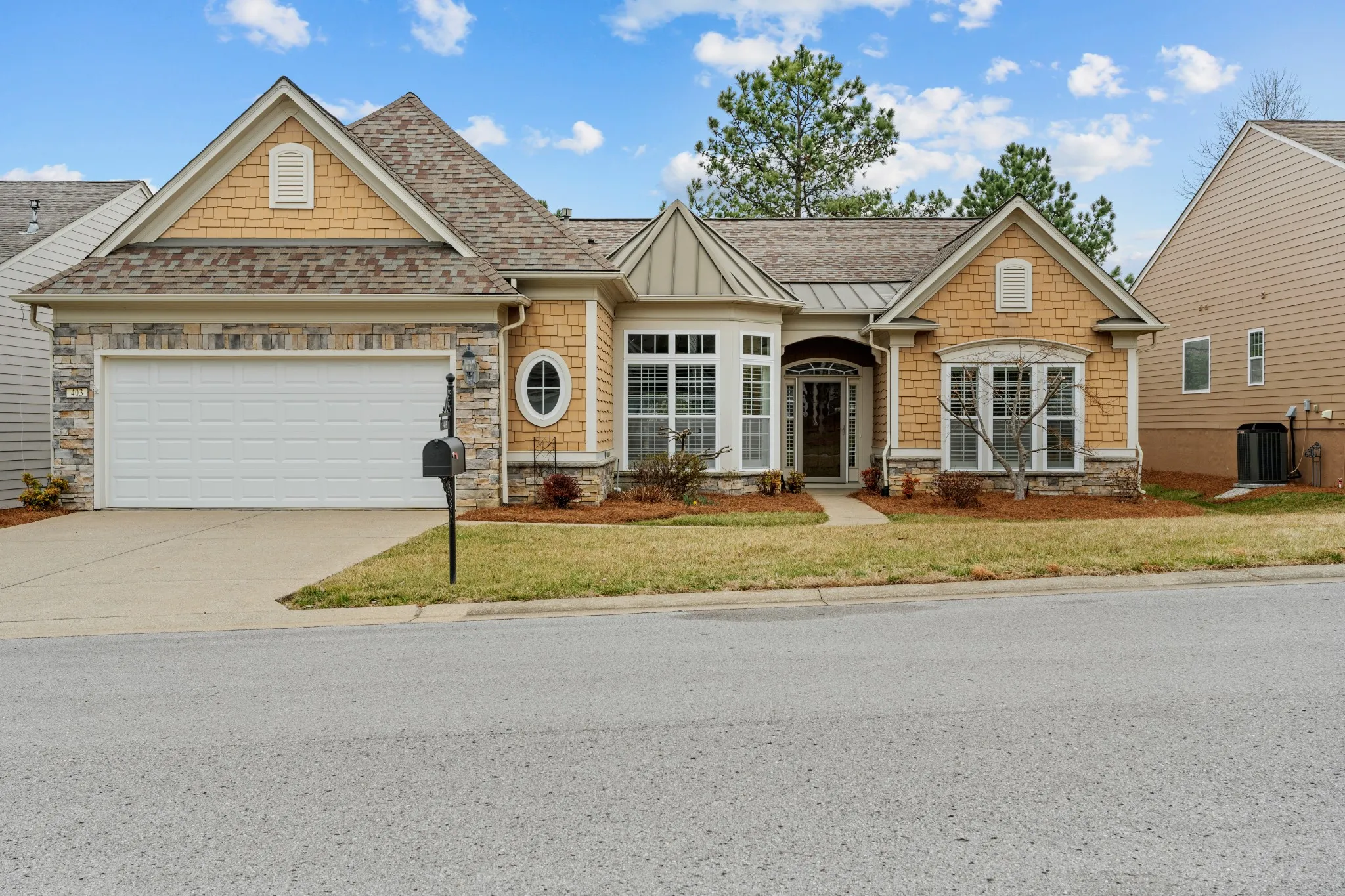 +"PublicRemarks": "This charming one-level Cumberland Hall floor plan home is located in a desirable 55+ gated community. It features hardwood floors throughout the main living area, a gourmet kitchen, luxury primary bath, a sunroom, and a cozy fireplace. The secondary bedrooms share a convenient Jack and Jill-style bath, laundry room with sink and cabinets, additional space in garage for golf cart or work bench and there's a built-in desk area! The roof was replaced in 2017, and the Train HVAC system was updated in 2023. The refrigerator, washer, and dryer were all purchased in 2022. The community boasts an impressive clubhouse with both indoor and outdoor amenities, as well as a variety of organized activities, clubs, and events. Conveniently located near healthcare facilities, the airport, shopping centers, and dining options, this home offers both comfort and convenience."