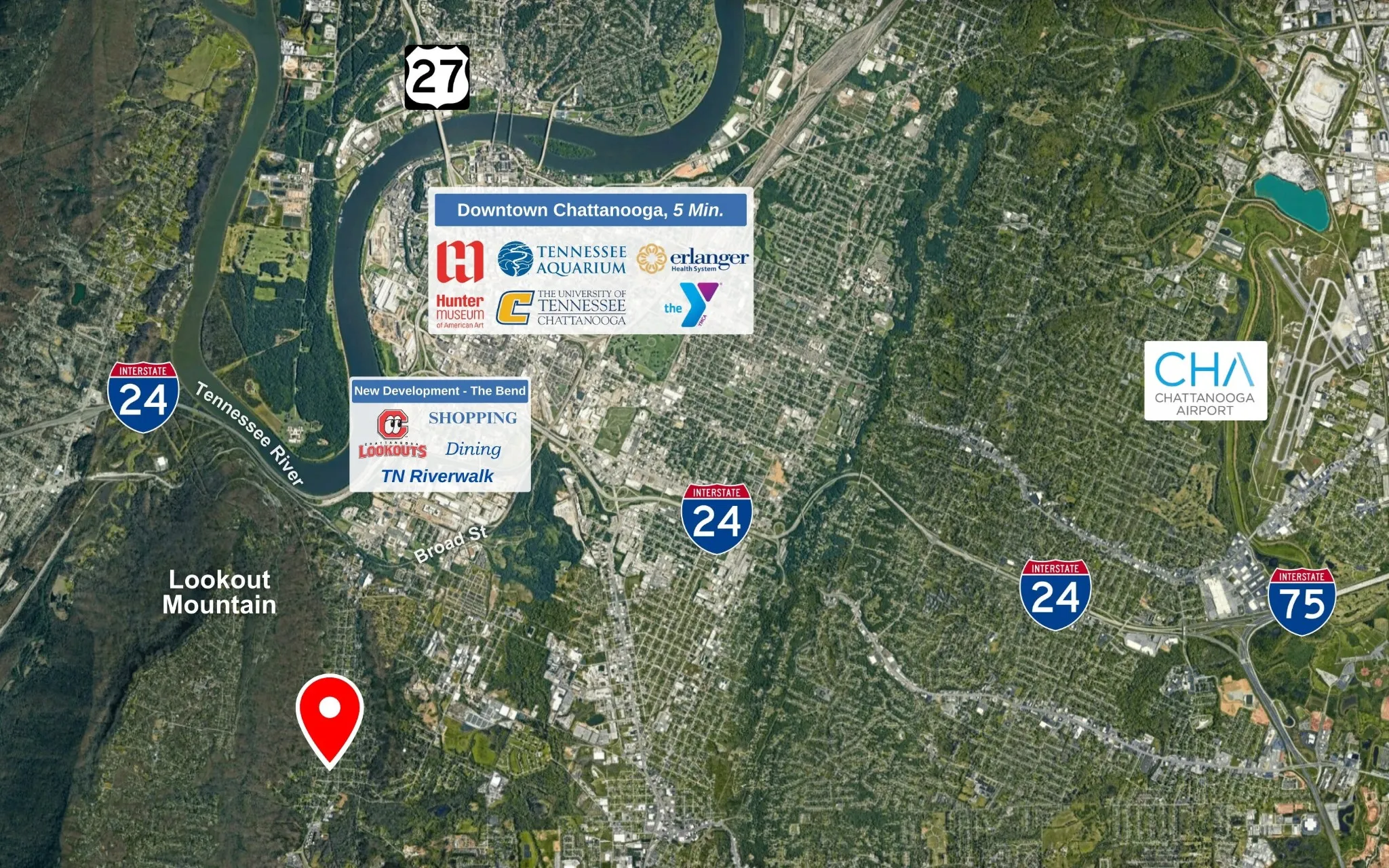 - Directions: From Downtown Chattanooga: Take Broad Street South. Continue on Broad Street into St Elmo. Turn Slight Right onto Tennessee Avenue - Stay on Tennessee Avenue for about 1.5 miles as it turns into St. Elmo Avenue. Home will be on the left.