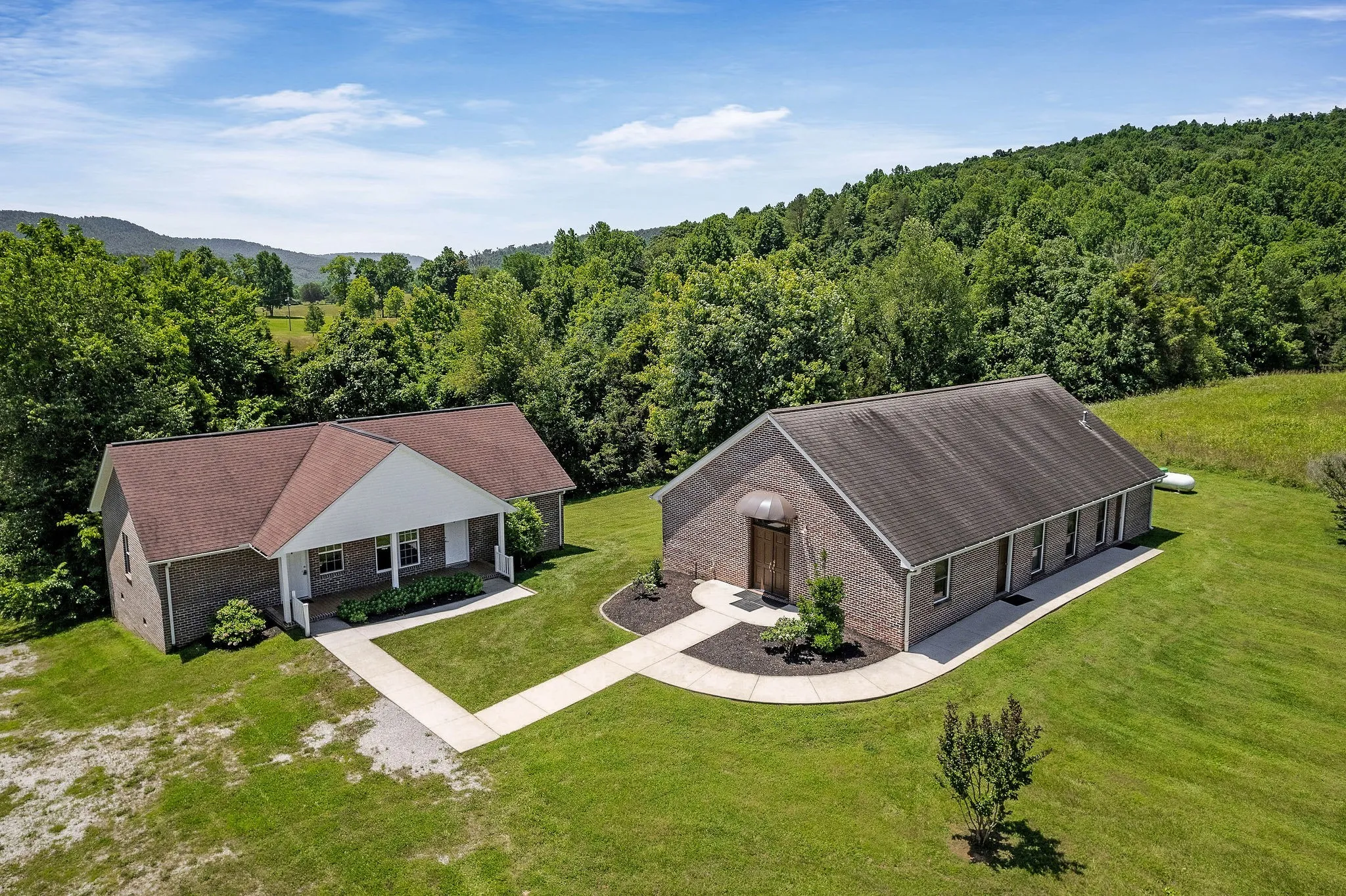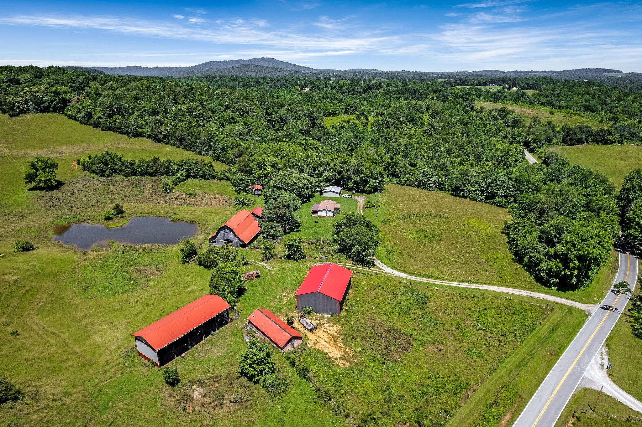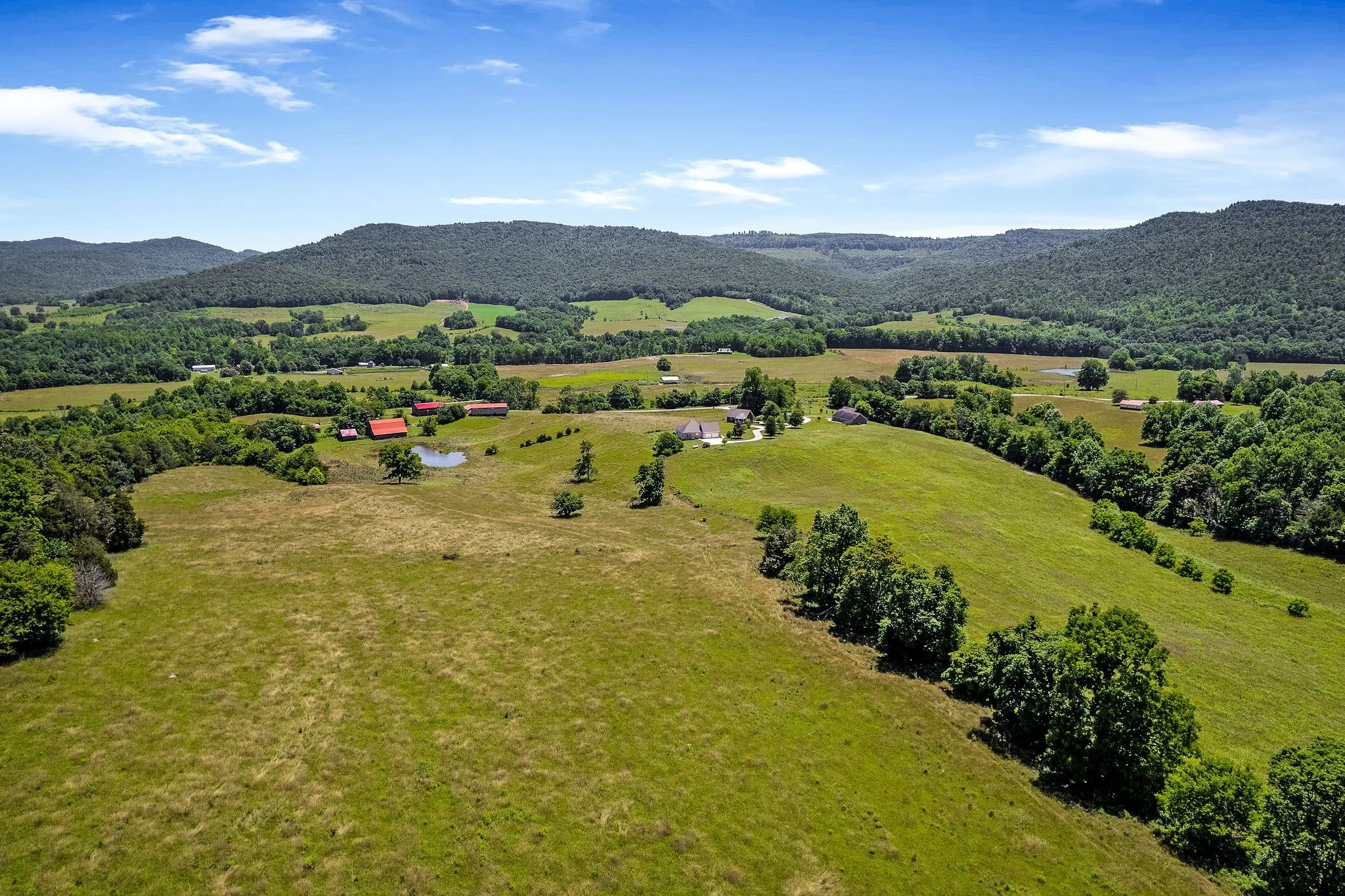 From a full scale hunting lodge to a homesteaders paradise, this 80 acre slice of paradise offers the unique opportunity for a generous farm that will build lasting memories for years to come! The incredible views of rolling pasture land is ready for cattle and the abundance of wildlife is a hunter’s dream! This property has two beautiful brick homes on the property, each with two bedrooms, nice amenities, great storage, and spectacular views. An additional 1br/1ba duplex on the property is perfect for rental income, airbnb, lodge guests or nonprofit housing. A gorgeous chapel on the property has wood inlaid ceilings, sourced right on the farm! With an industrial kitchen and bathrooms equipped to expand, this building could be multi use for venue space, recreation, or ministry. The property offers barns and storage buildings, a fully stocked pond, spring, and hardwoods. The possibilities are endless and an opportunity to own a true sanctuary like this rare!