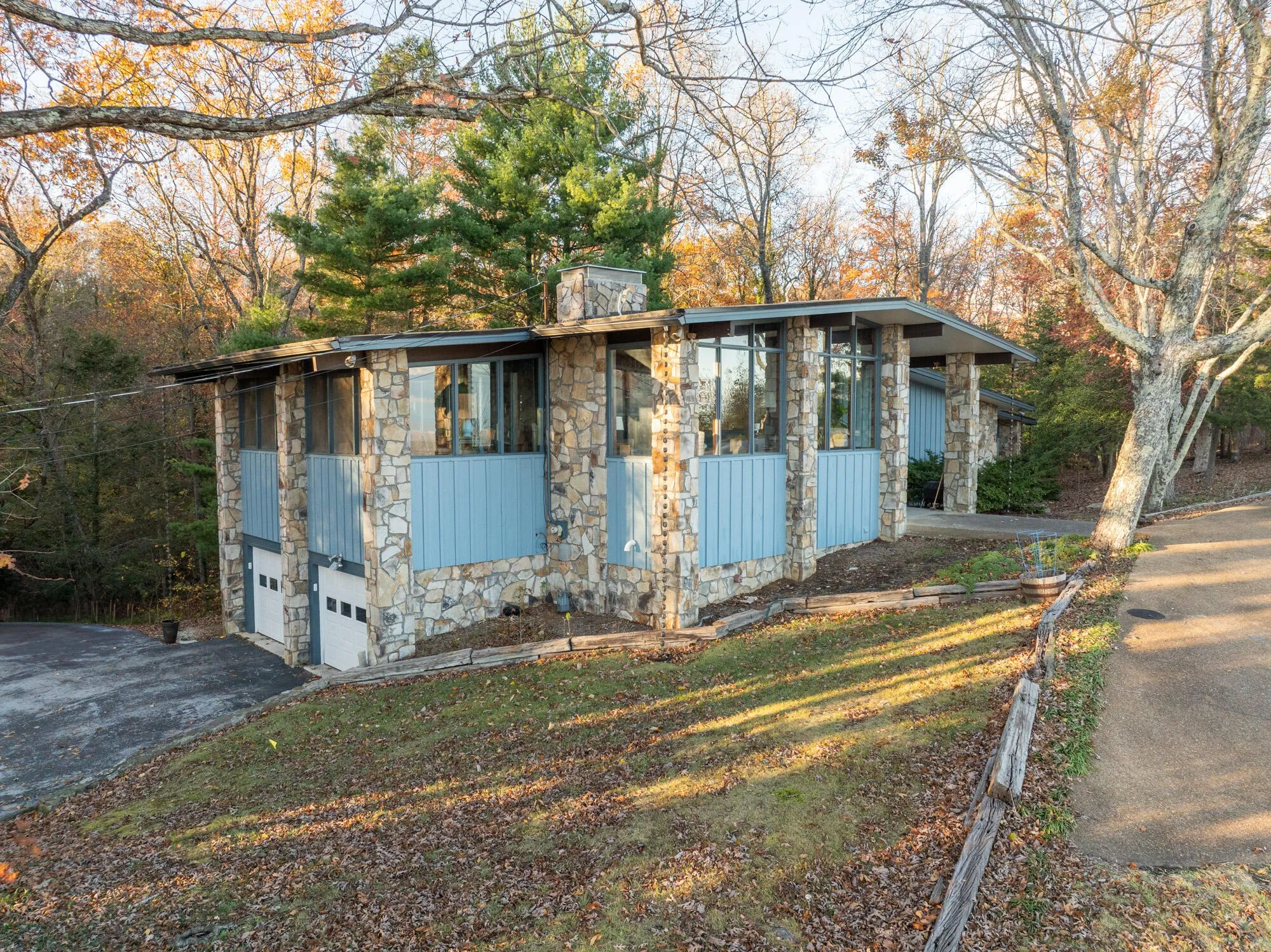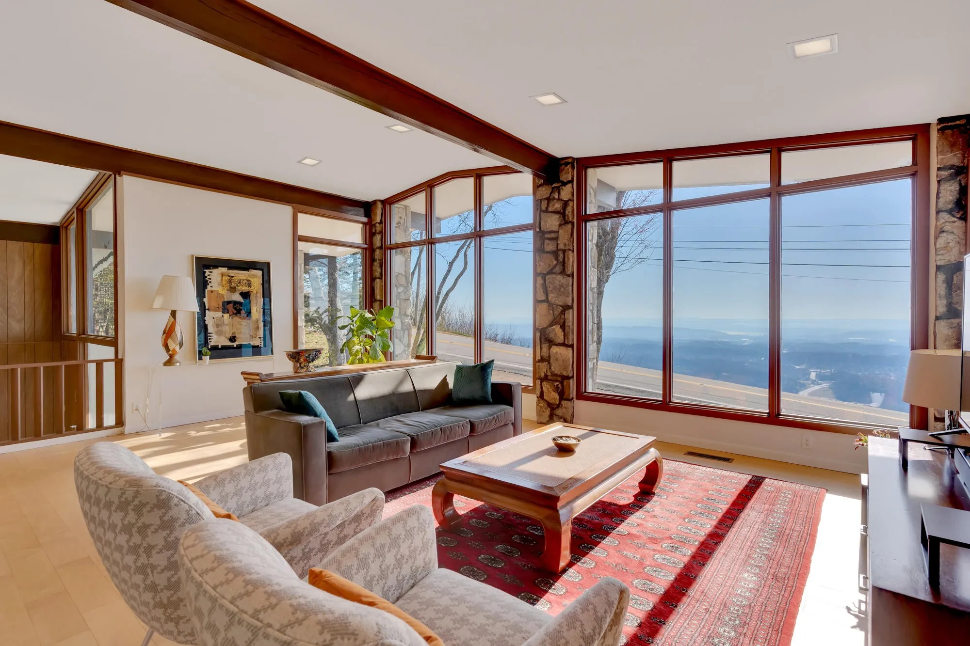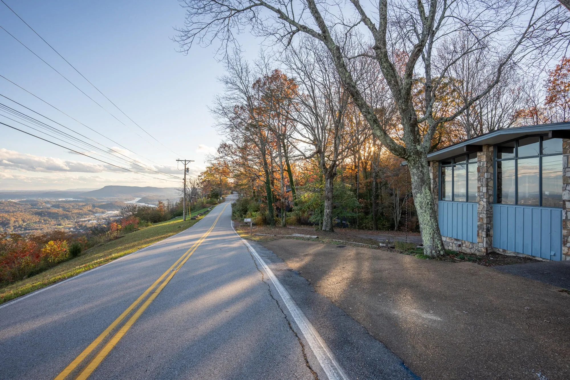 This stunning mid-century modern home, designed by renowned local architects Derthick & Henley and built in 1966, offers breathtaking panoramic views of the city, mountains, and the Tennessee River winding below. With nearly 250 feet of brow frontage and 3.6 acres of land—including a frontage lot and a backyard perfect for exploring with a spring-fed creek—this property is a true mountain retreat.