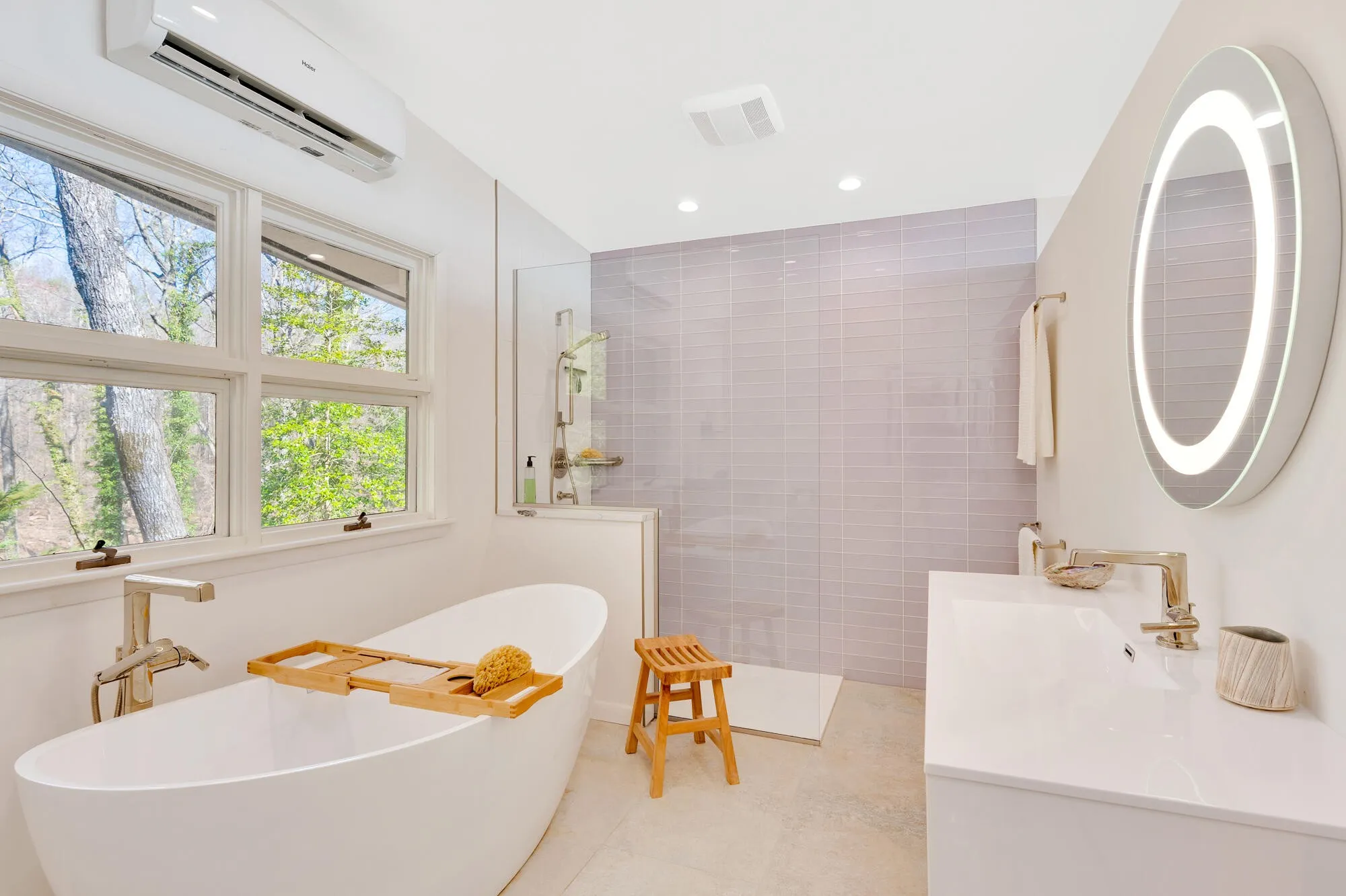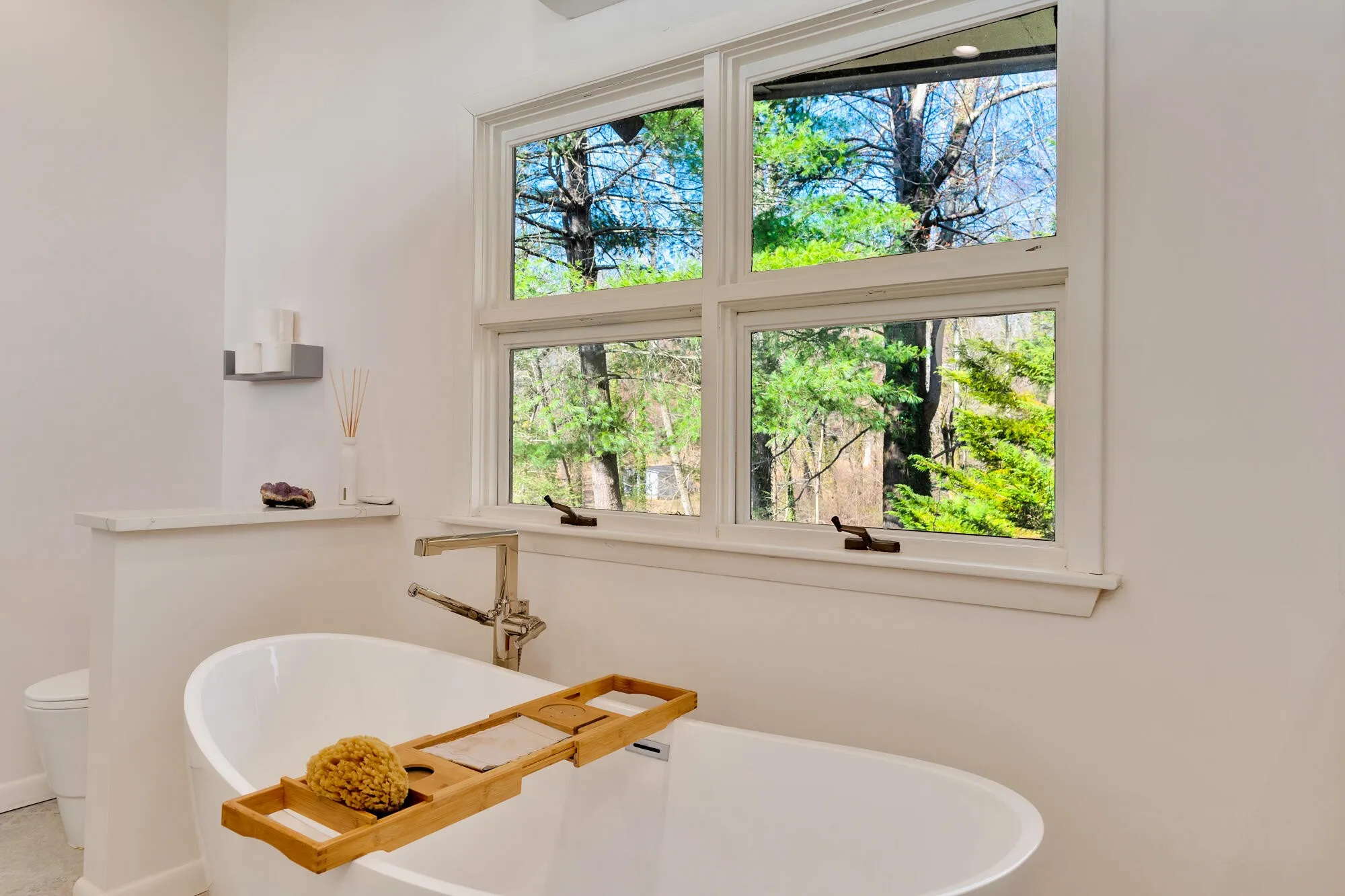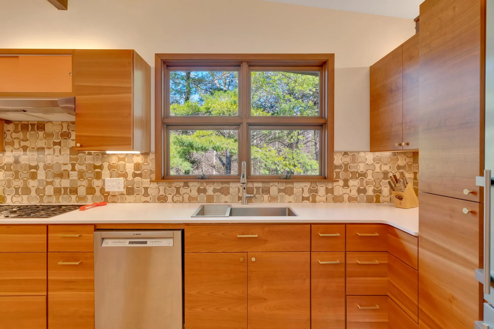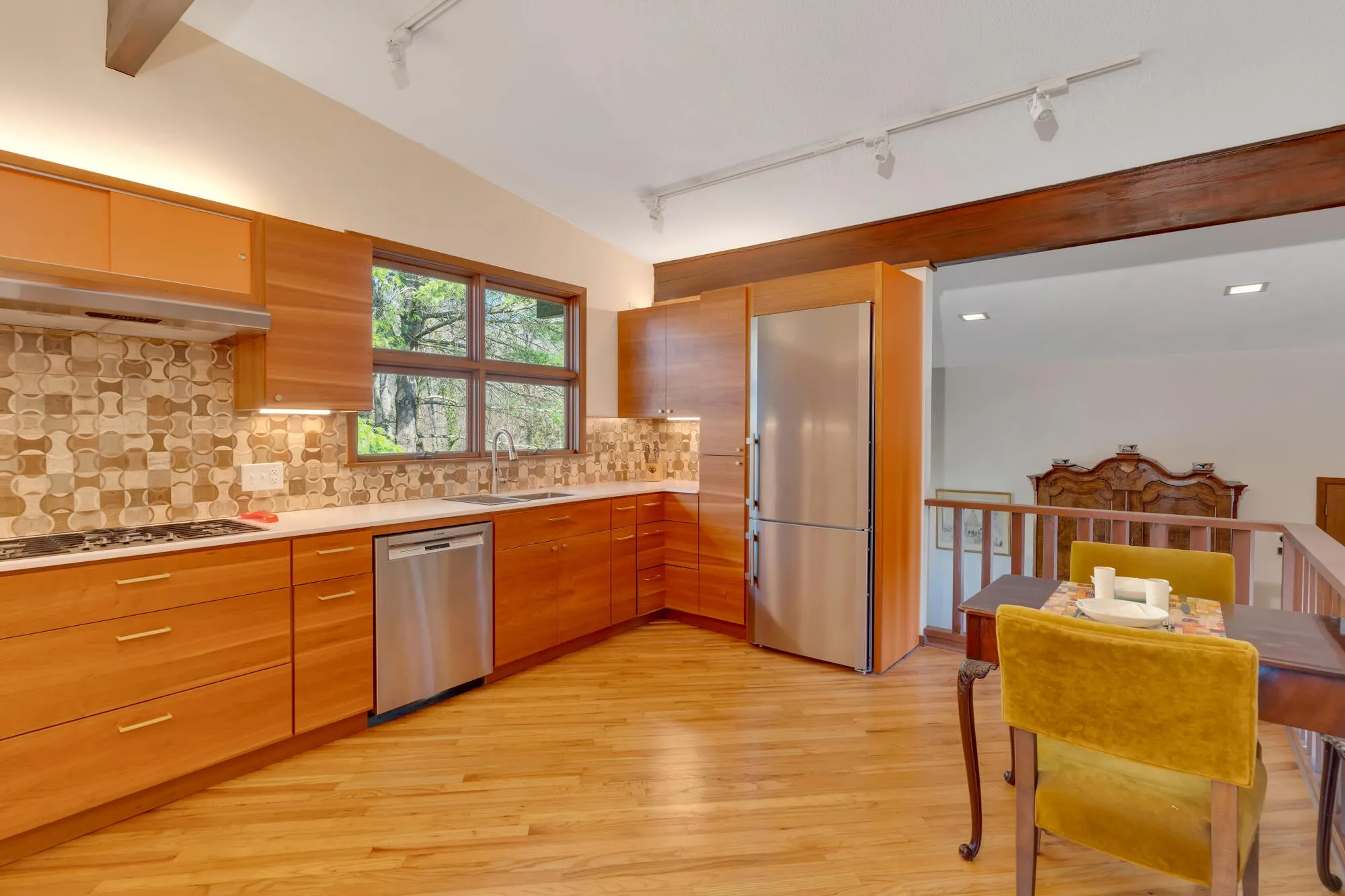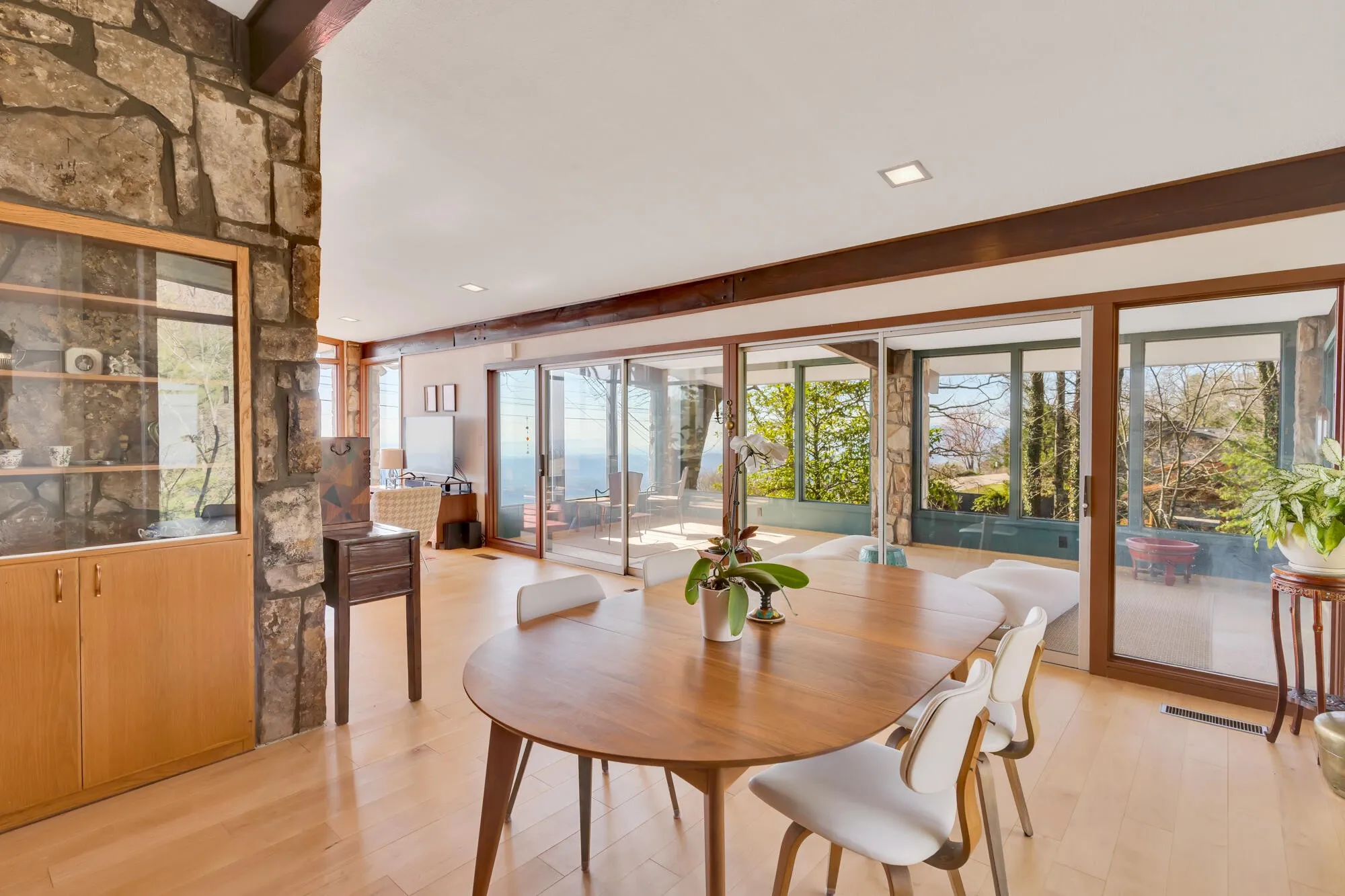The home features floor-to-ceiling windows in the first living room, maximizing the incredible views, and an enclosed sunroom with removable glass panels. The kitchen overlooks the family room, creating an open and inviting space perfect for gathering. There is a second living room downstairs that leads to the back patio. Thoughtful renovations have enhanced the home’s modern charm, including custom kitchen cabinets, expansion of the master en-suite and closet, enhanced guest bathroom, and the addition of a convenient half bath.