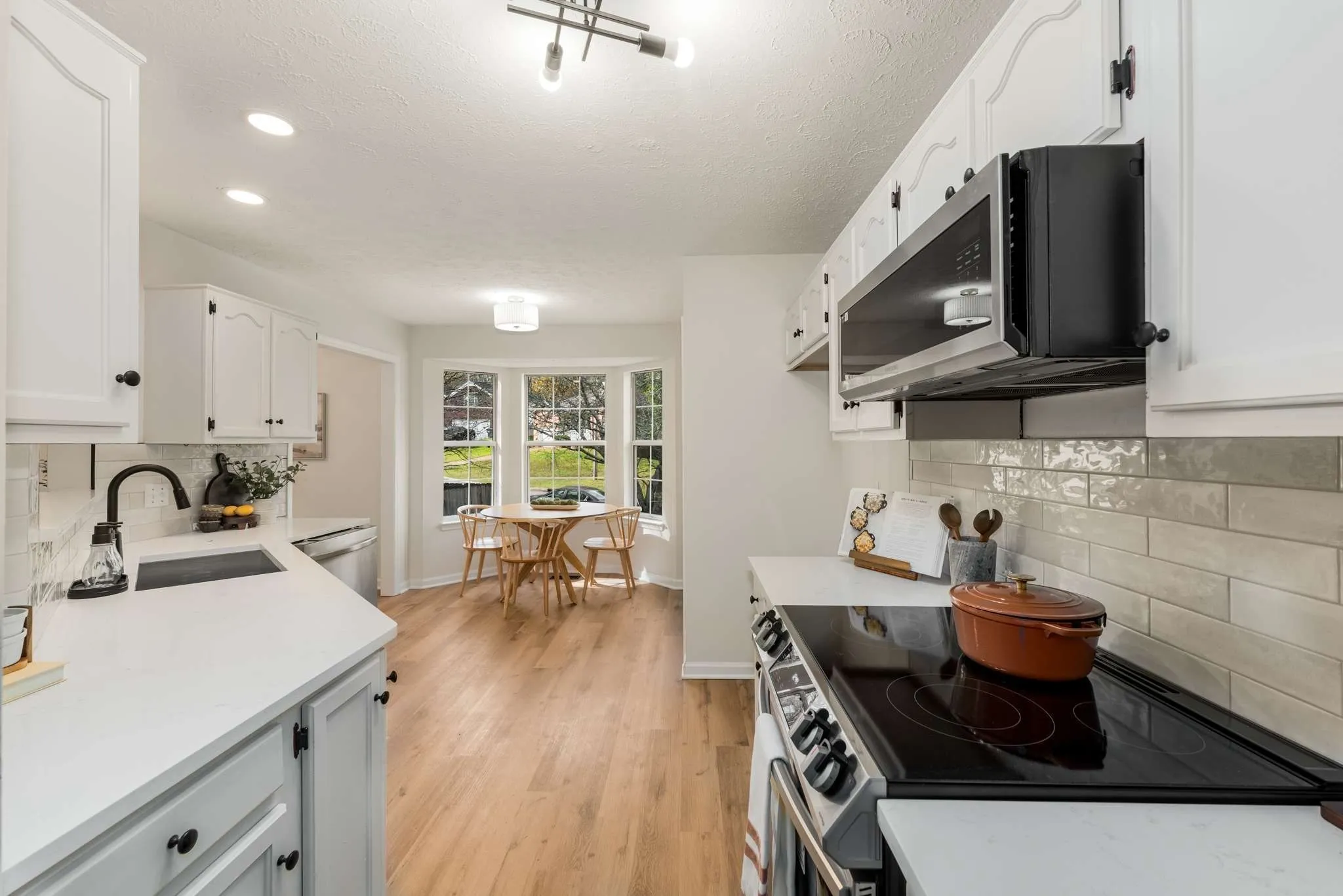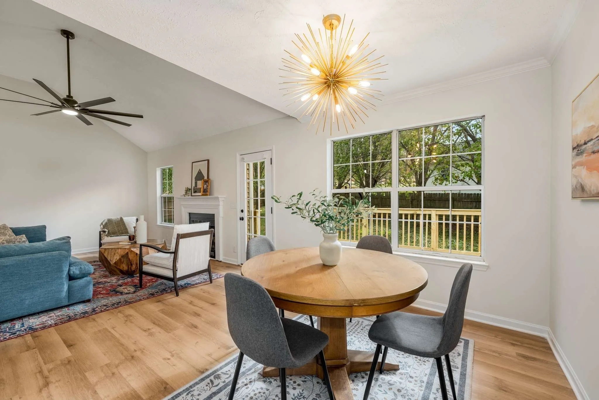 This beautifully renovated home combines modern updates with cozy charm, making it the perfect place to call your own. As you step inside, you’ll immediately notice the pristine new hardwood floors, high ceilings, and upgraded light fixtures that create a bright, inviting atmosphere throughout. The kitchen is a showstopper, featuring sleek white cabinetry, matching countertops, and a stylish tile backsplash. Brand new stainless steel appliances complete the space, while the adjoining breakfast nook offers a perfect spot for casual dining. For more formal gatherings, the elegant dining room is just a step away, highlighted by a stunning new chandelier. Retreat to the spacious primary suite, a true oasis featuring a double vanity, a walk-in shower, a garden tub for ultimate relaxation, and a generous walk-in closet. Two additional bedrooms share an upgraded hall bathroom, ensuring ample space for family or guests. The two-car garage comes equipped with a tool bench and shelving, providing the perfect storage for all your tools, toys, and outdoor gear. Step outside and enjoy the brand new deck overlooking a private, fenced backyard lined with mature trees—an ideal space for entertaining or unwinding. The front yard is beautifully landscaped with fresh mulch, offering great curb appeal. Located just 15 minutes from downtown Mt. Juliet and 40 minutes from downtown Nashville, this home offers a wonderful blend of tranquility and convenience.