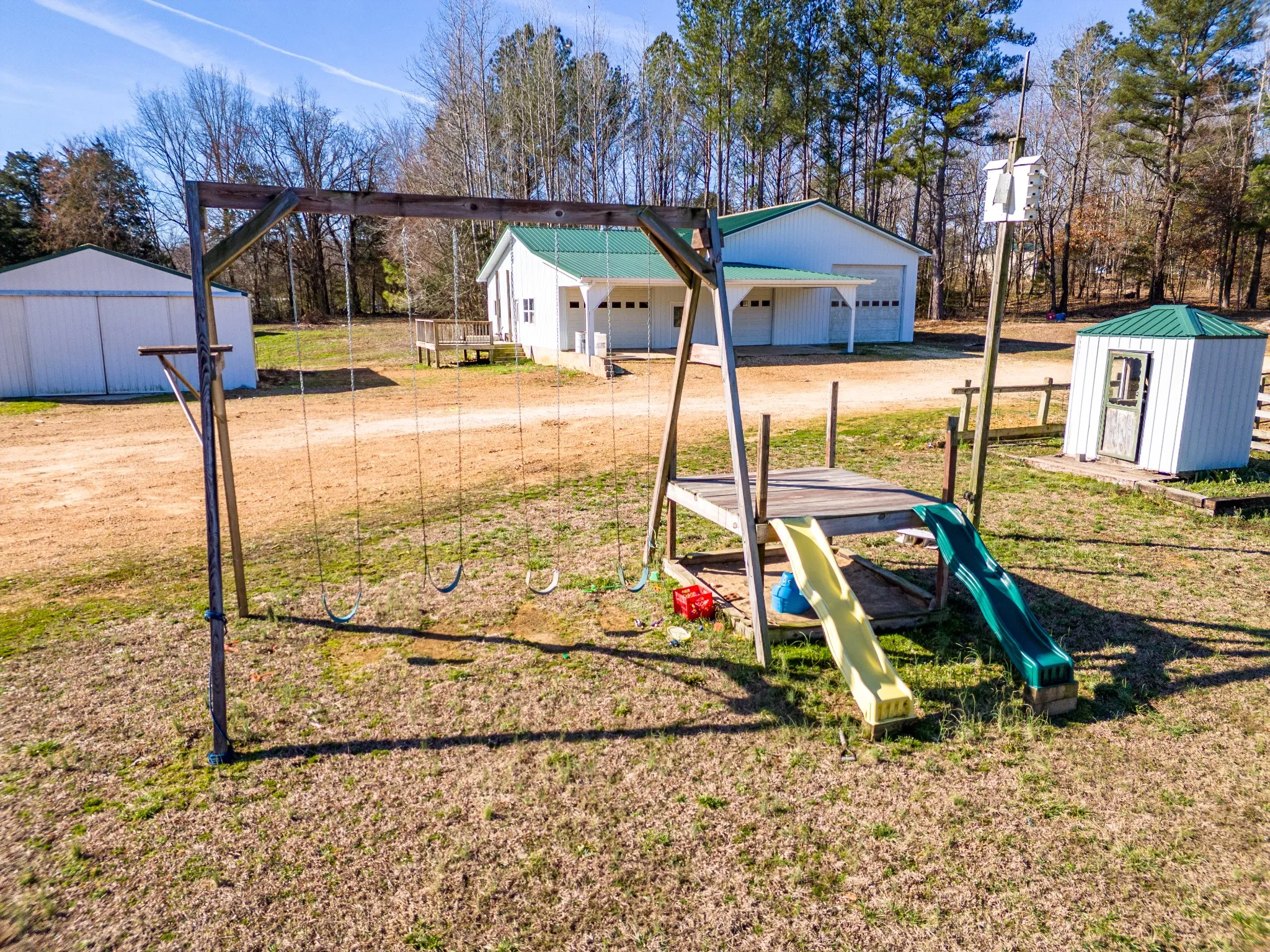 Escape to the countryside with this 19.5-acre mini farm featuring road frontage on HWY69A. Built as an Amish homestead, this property includes two living quarters and multiple outbuildings. Building 1 (60×40) offers three garage doors and an efficiency apartment with a kitchen, bathroom, pantry, and loft. Building 2 (50×30)features a primary bedroom and bath downstairs, a kitchen/dining combo, living room, and two loft bedrooms. The 40×30 barn is ready for horses, or chickens, plus a small livestock shed and partially fenced pasture. A small pond for livestock. Public water is plumbed to both main buildings, and well water is available with an electric pump installation. A private, peaceful setting perfect for homesteading, a hobby farm, or a weekend retreat! All info is approximate; buyer to verify details. 3D tour of land: https://kuula.co/share/collection/7bgdW?logo=-1&info=0&fs=1&vr=1&sd=1&initload=0&thumbs=1 3D tour of buildings: https://www.asteroom.com/pviewer?hideleadgen=0&token=1mDdCEIYkUuEZDB8BMzGjg&autorotation=1&defaultviewdollhouse=1&showdollhousehotspot=1 Drone Video: https://youtu.be/J10dPLH5uaY