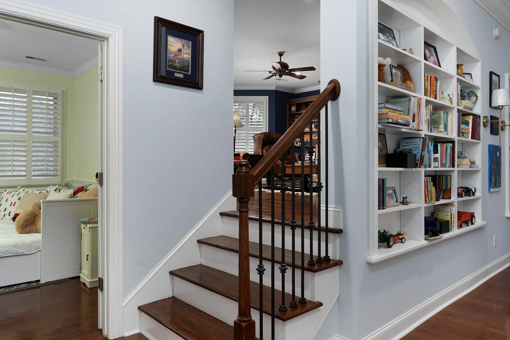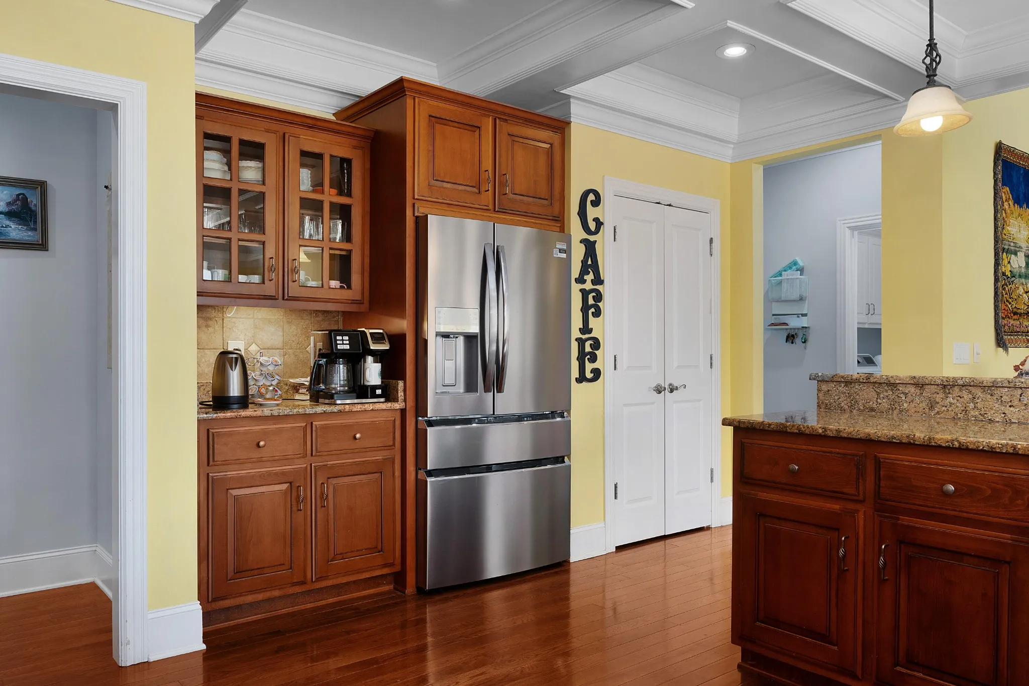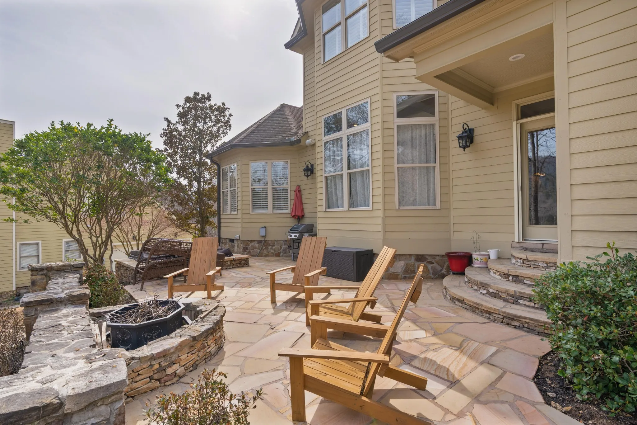4 bedroom, 3 full and 2 half bath home overlooking the 2nd and 3rd greens in the Black Creek golf course community approximately 15 minutes from downtown Chattanooga. This craftsman style home exudes curb appeal with its Hardie and stone exterior and fantastic outdoor living spaces, and you will love the versatile floor plan and quality amenities, including the hardwood floors, granite countertops, multiple built-ins, specialty ceilings, crown moldings, open living area, primary on the main, great storage, 3 garage bays, 2 outdoor firepits and more. Entry to the home is via the covered front porch with beautiful flagstone patio and walkways. The 2-story foyer opens to the formal dining room and great room beyond. The great room has a coffered ceiling, gas fireplace with built-ins on either side and easy access to the powder room. This room adjoins the kitchen which is open to the breakfast and keeping rooms and enjoys wonderful natural lighting and views of the golf course. The kitchen is well-appointed and also has a coffered ceiling, a center island with a raised dining bar, travertine tile backsplash, pantry and stainless appliances including a new refrigerator, a gas cooktop, stacked wall oven and microwave and access to the rear patio. The keeping room has a vaulted ceiling, gas fireplace and sliding glass door to the screened in porch providing a nice flow for everyday living and entertaining. The primary bedroom is on the opposite side of the house and has a trey ceiling, room for a desk or sitting area, and the primary bath with dual vanity, jetted tub, separate shower with tile and glass surround and a walk-in closet with organizer system. The upper level has one bedroom with a private bath, and a shared bath with separate vanities that adjoins a bedroom and bonus room on one side and the 4th bedroom on the other. There is also a raised family room with a built-in in beverage center and a half bath, as well as wonderful walk-out attic storage.