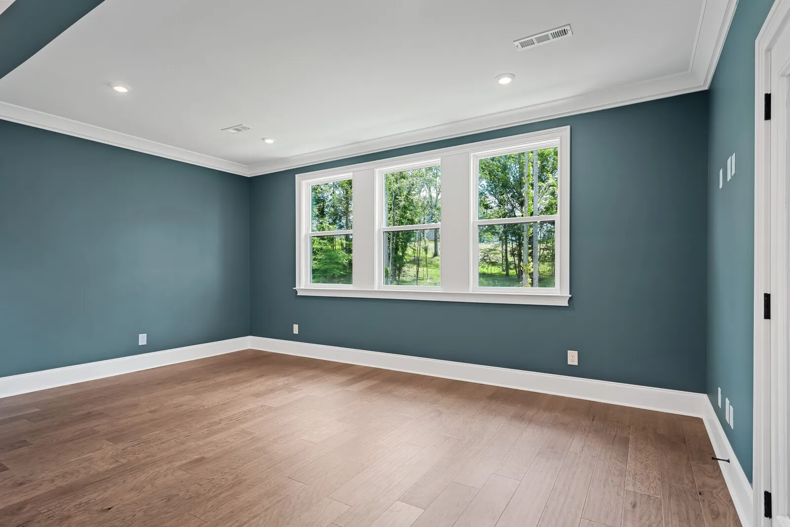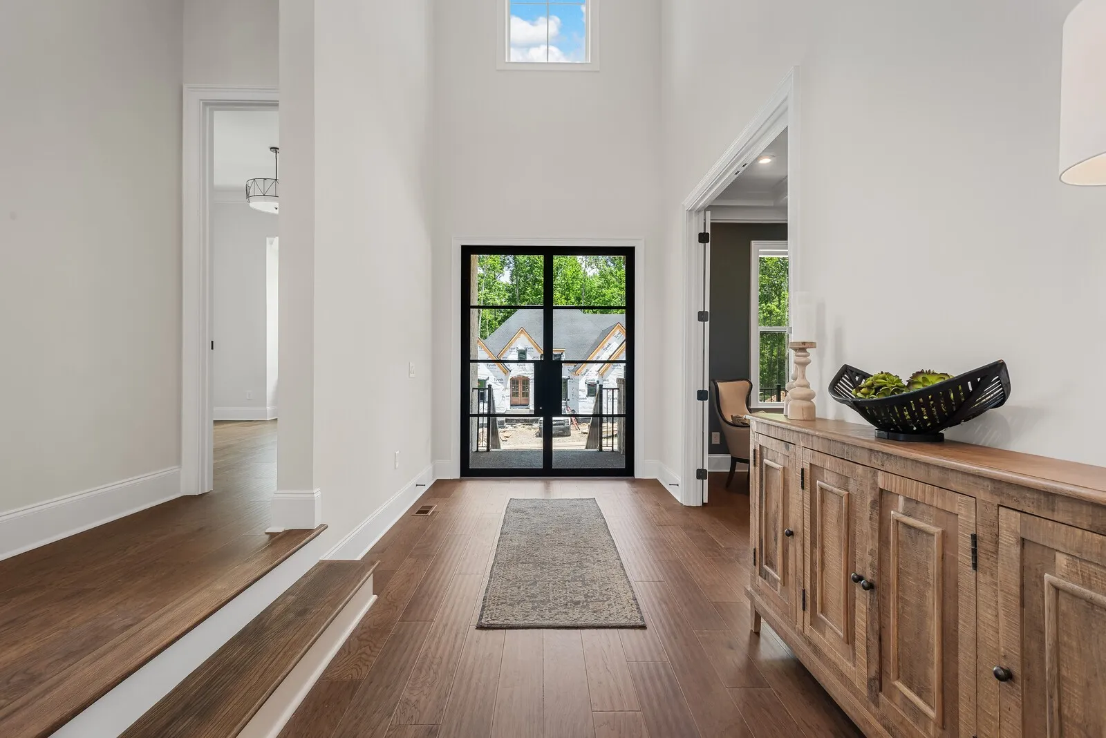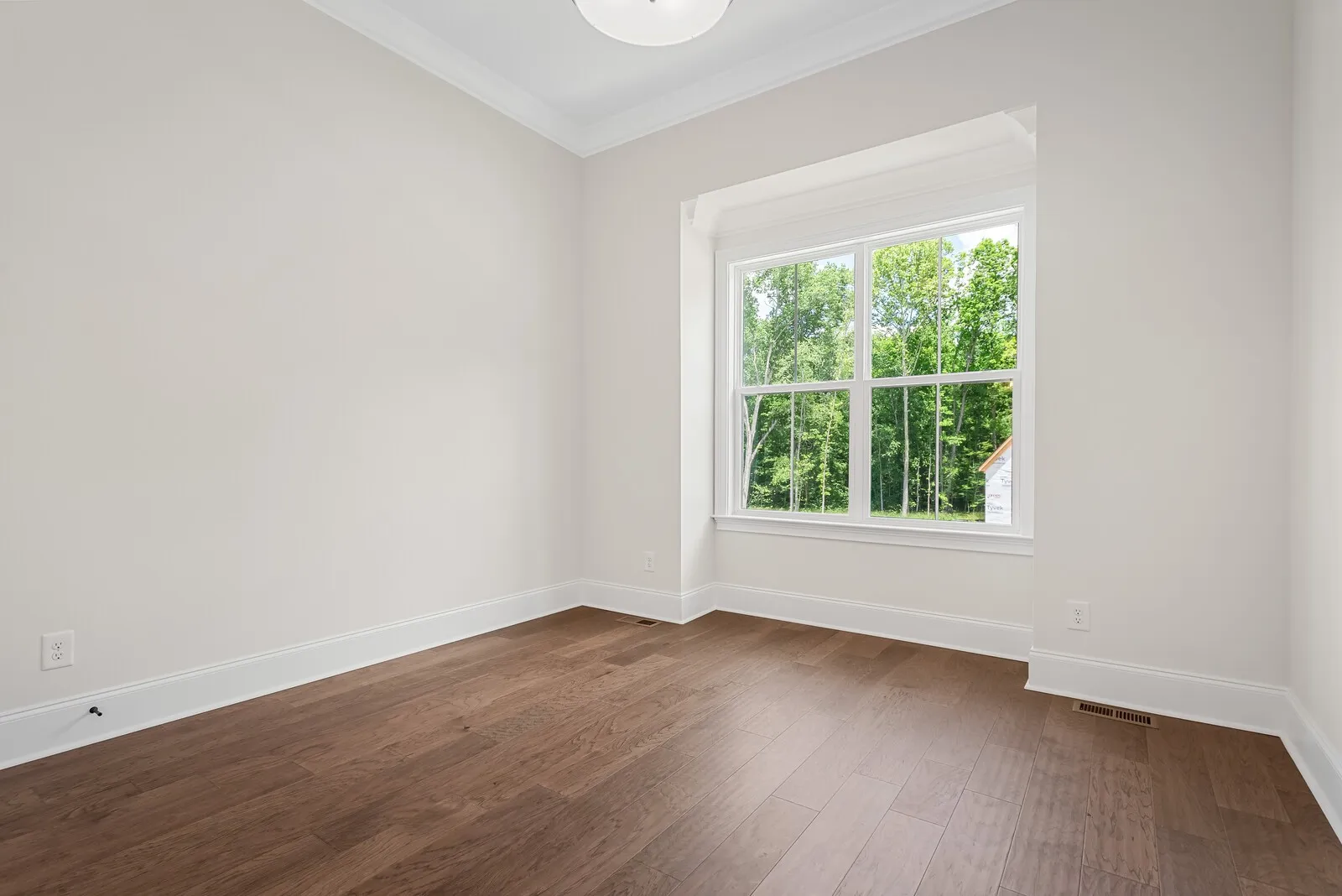 Welcome to a harmonious blend of luxury living and natural beauty, where the enchanting melodies of rustling leaves and birdsong become the soundtrack of your daily life. This brand-new architectural gem is a haven of sophistication and tranquility, seamlessly blending the comforts of modern living with the embrace of a lush, wooded backdrop. As you approach this exquisite residence, the striking exterior hints at the carefully crafted elegance that lies within. Step through the grand entrance and be greeted by an abundance of natural light dancing across pristine surfaces, highlighting the fine details that define this home. The open floor plan effortlessly guides you through each space, creating an inviting flow that complements the surrounding greenery.