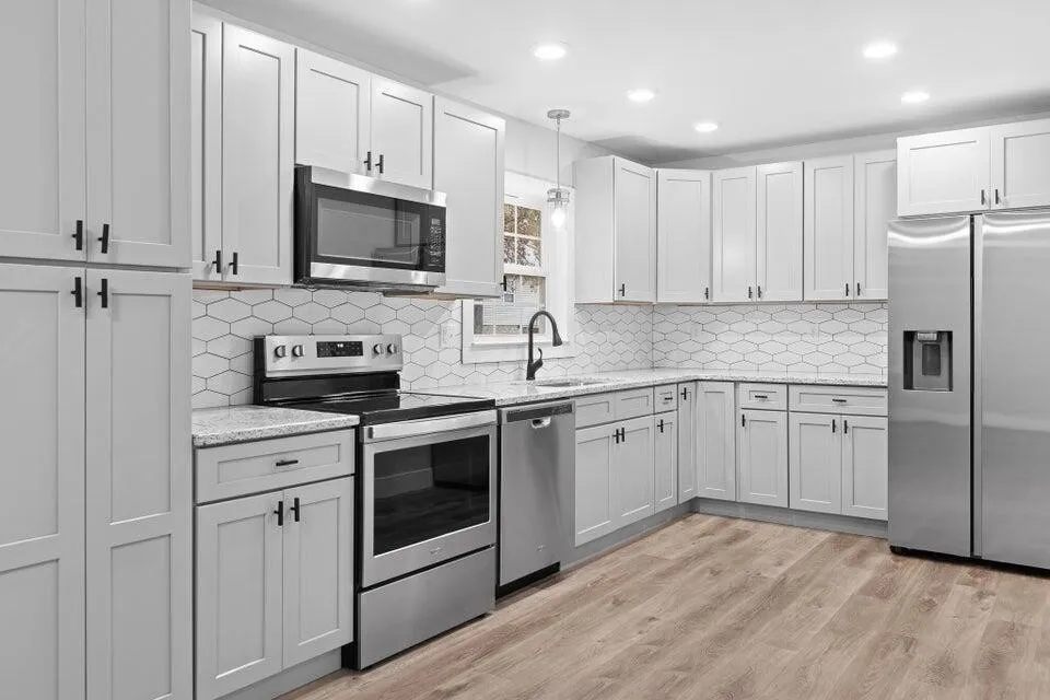 PET FRIENDLY! Beautifully Renovated 4 bedroom, 2.5 bath home on HUGE fenced-in lot! This home has updated flooring, tile, cabinets, and appliances. Laundry Hook-ups are provided. Perfect home for your family with a primary suite, two nice-sized bedrooms, and a large bedroom with attached half bath.