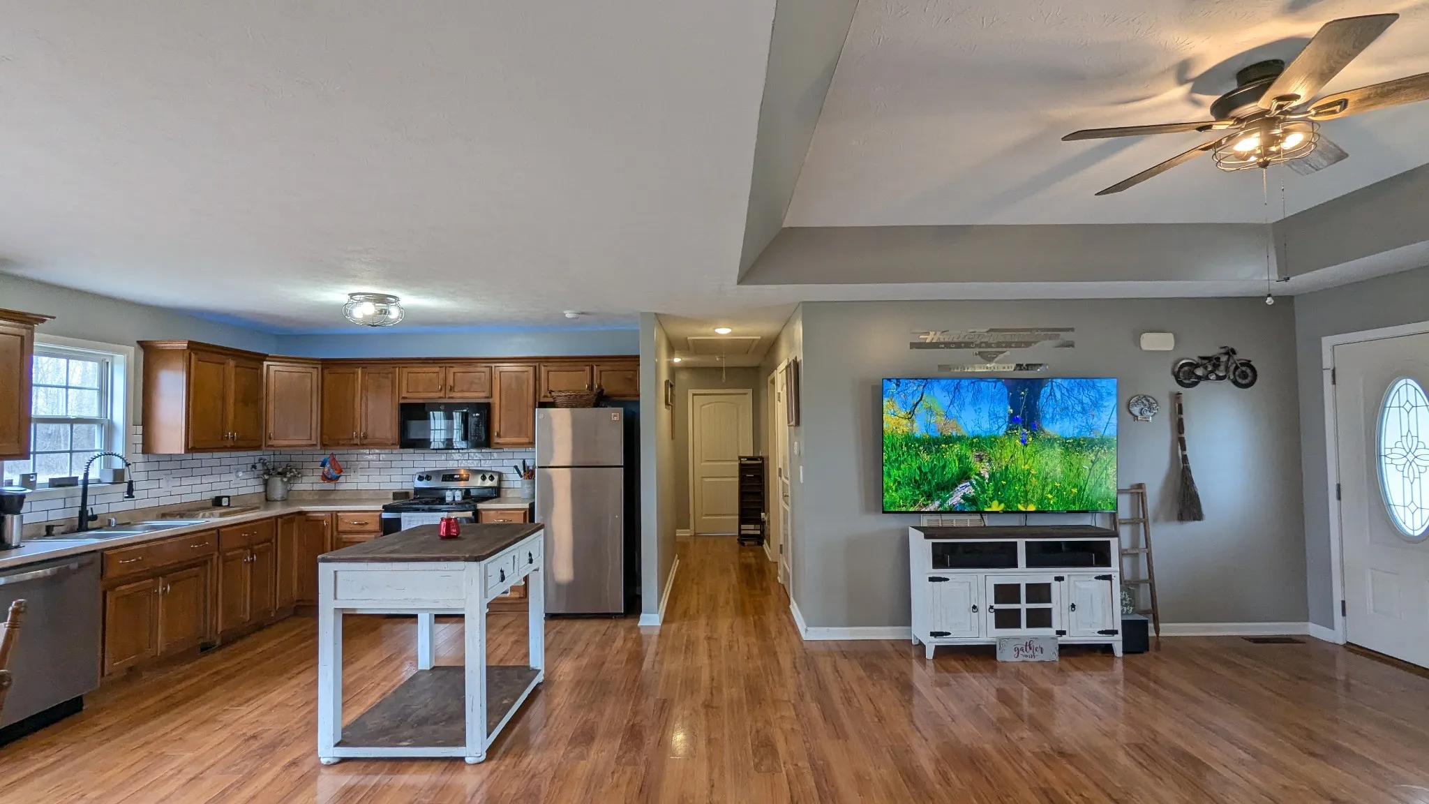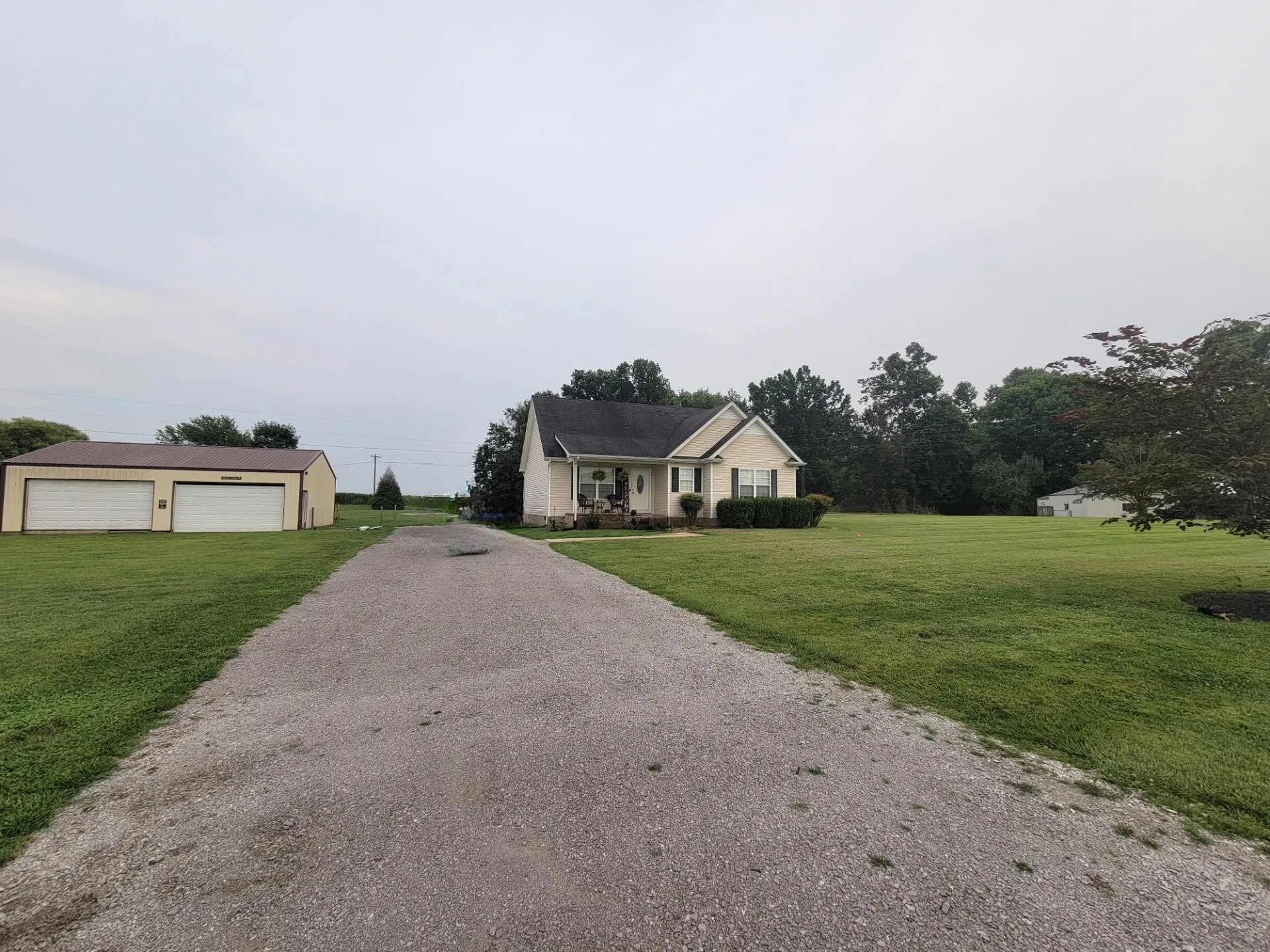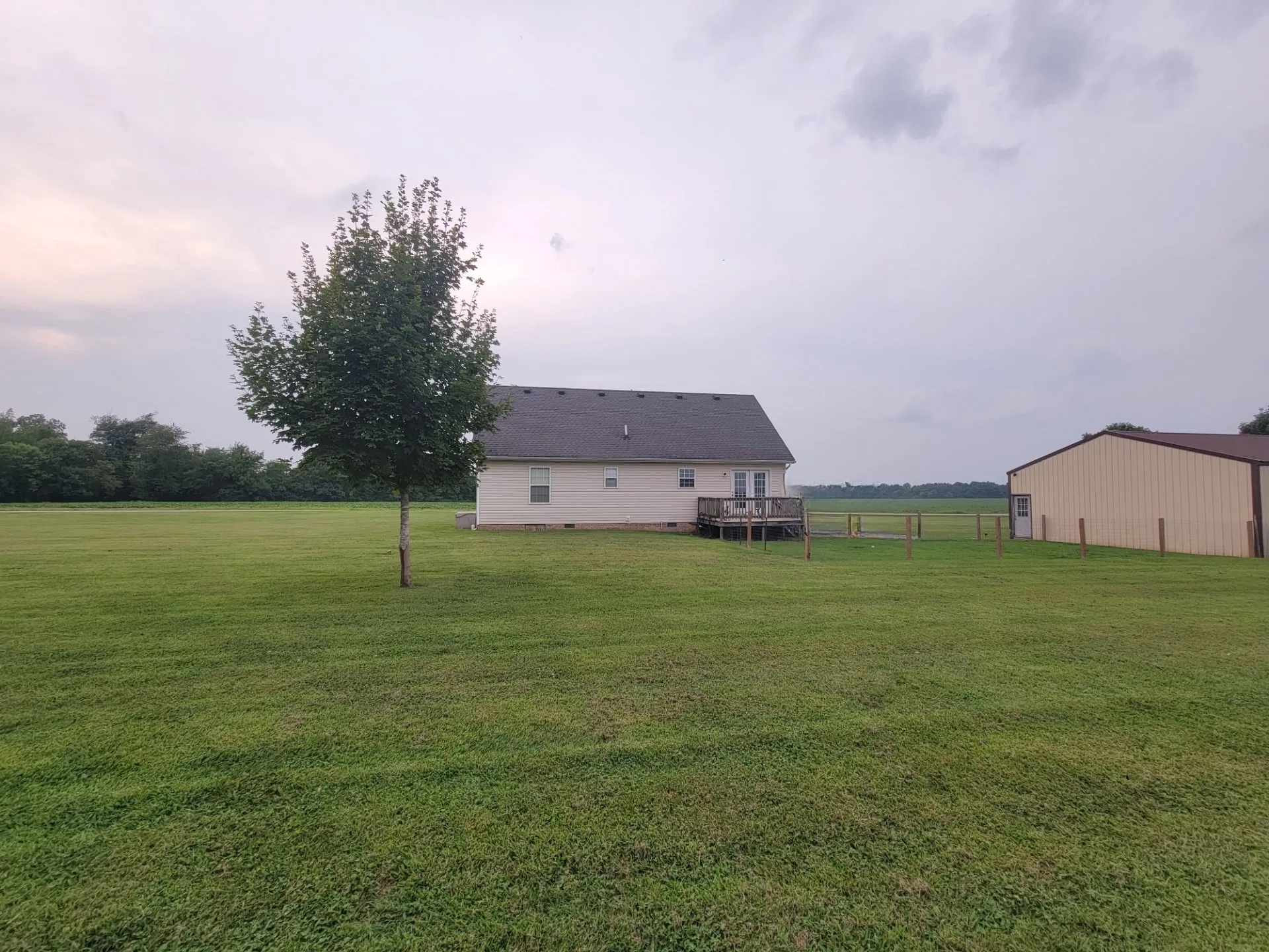 This property is a true oasis with country views and breathtaking sunrise and sunsets. A beautiful One Level Home features an open concept – the living room and dining room flows seamlessly into a well-equipped kitchen with ample counter space. Kitchen has hardwood cabinets, tile backsplash, large pantry & New appliances. Home includes 3 bedrooms, 2 full baths, utility room and extra closet space. Large Primary Bedroom with separate His & Her walk-in closets – Lg Primary bathroom w/ plenty cabinets! Take a stroll Outside onto a large deep spacious yard, detached garage (workshop) 30×40, concrete pad for camper. Imagine enjoying summer evenings on the spacious deck overlooking the large beautiful yard. This home is perfect for hosting spring barbecues and outdoor gatherings. It is the perfect time to make your move!