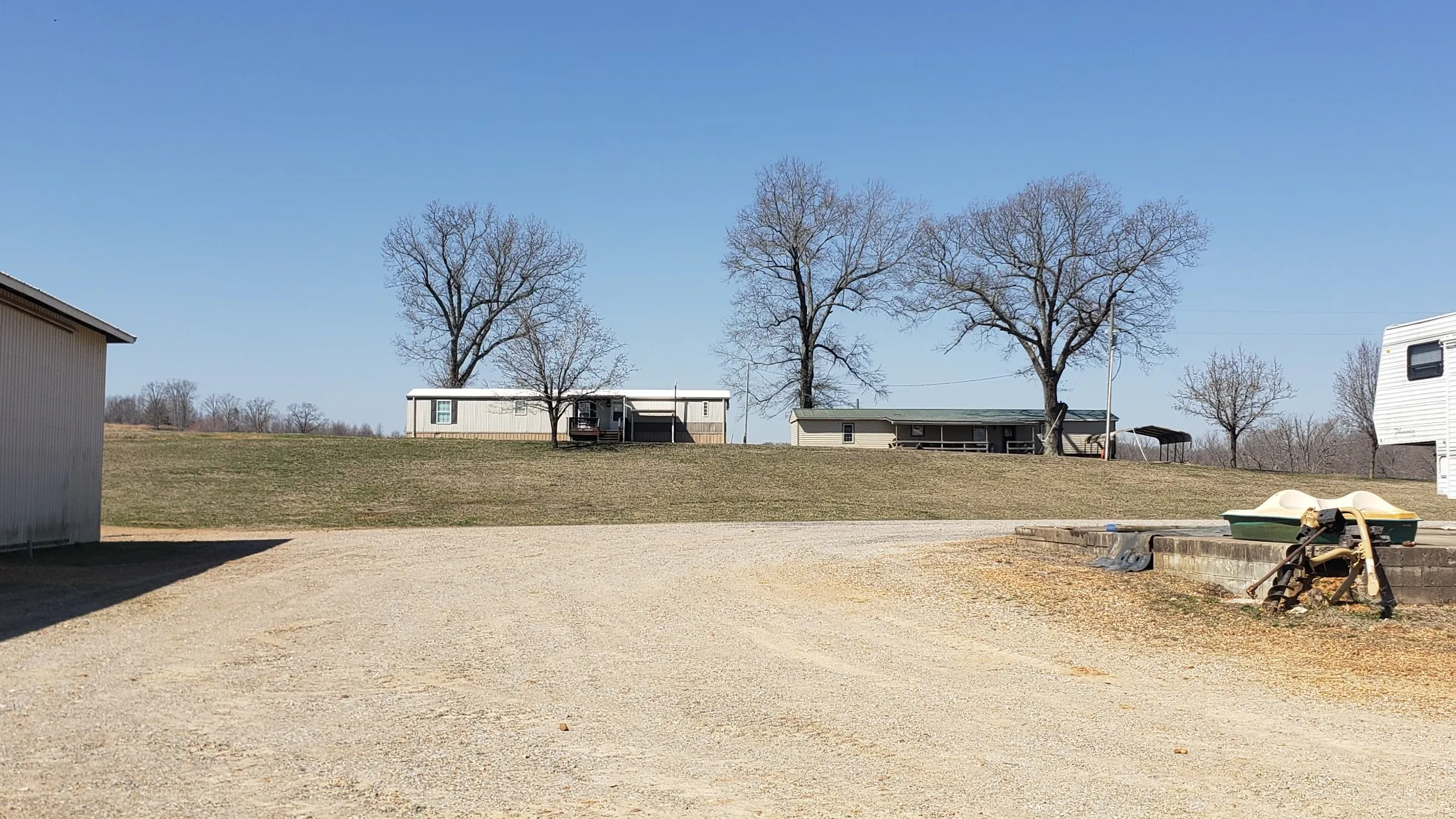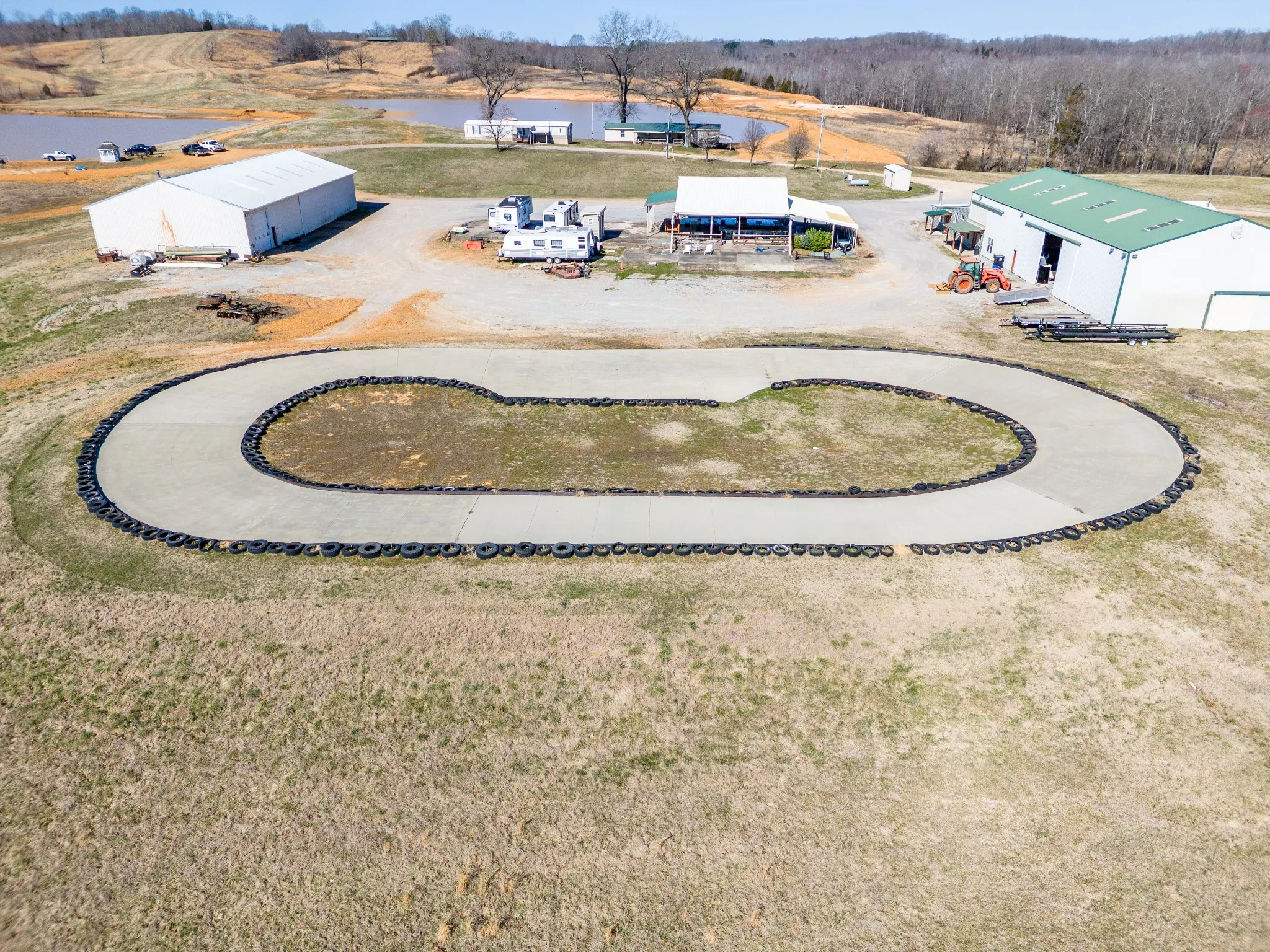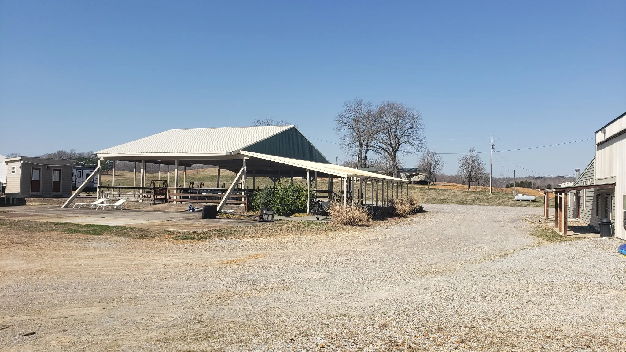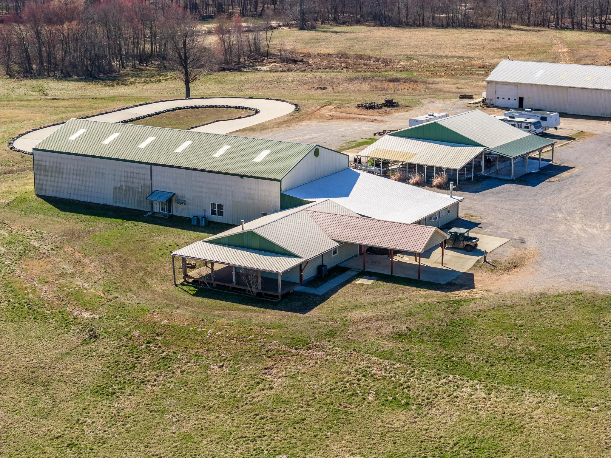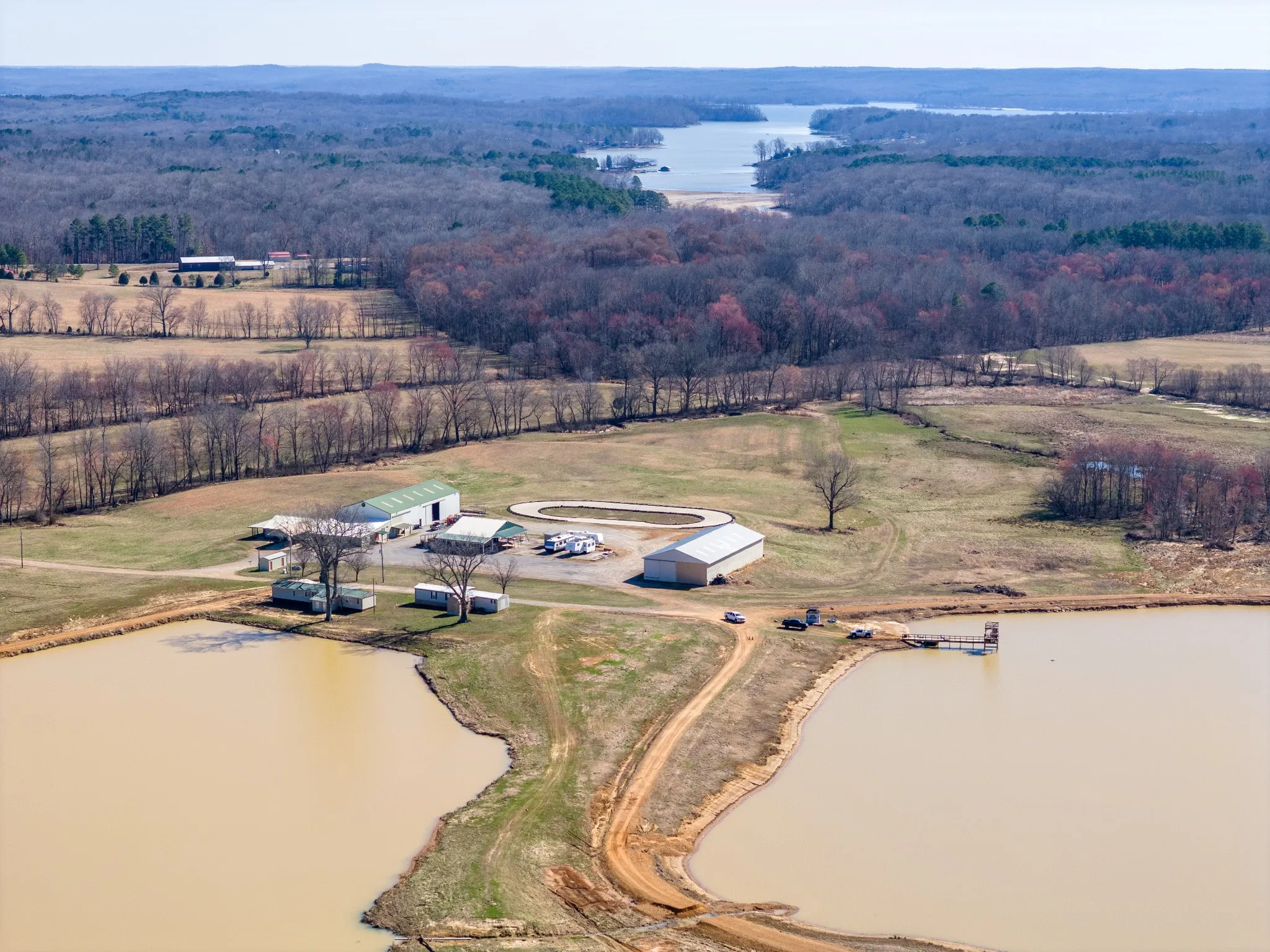+"PublicRemarks": "Approx 610 Ac of Blissful Ranch Living & Entertaining!! Unlimited Building spots with views of KY Lake in the distance from the higher elevations. Currently, there are two 3 bedroom mobile homes & a 1 bedroom apartment attached to the Event Center, which was a restaurant at one time, still featuring a Chefs Kitchen, Dining Hall, Bathrooms & Gameroom! Outside there is an XL Pavillion with more tables & a bar + 2 Add'l Bathrooms Overlooking a Small Racetrack & Gorgeous Rolling Farmland! By the 2 mobile Homes are 2 ponds, each 8-9 acres. Jetski's anyone? Approx 10 miles of Trails for Off Road Vehicles. Much of the land is fenced around the perimeter with multiple gates. There are multiple wells, septic tanks, generator, etc. Two Very Large Shops are there for any storage or mechanical needs you have as well as 6 RV Hook-ups. There is another set of farm buildings nearby for cattle or horses. Too much to list!"