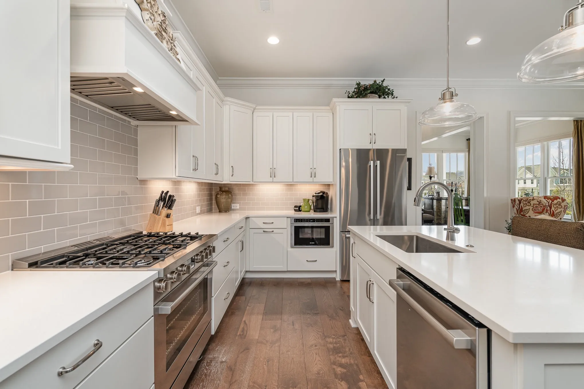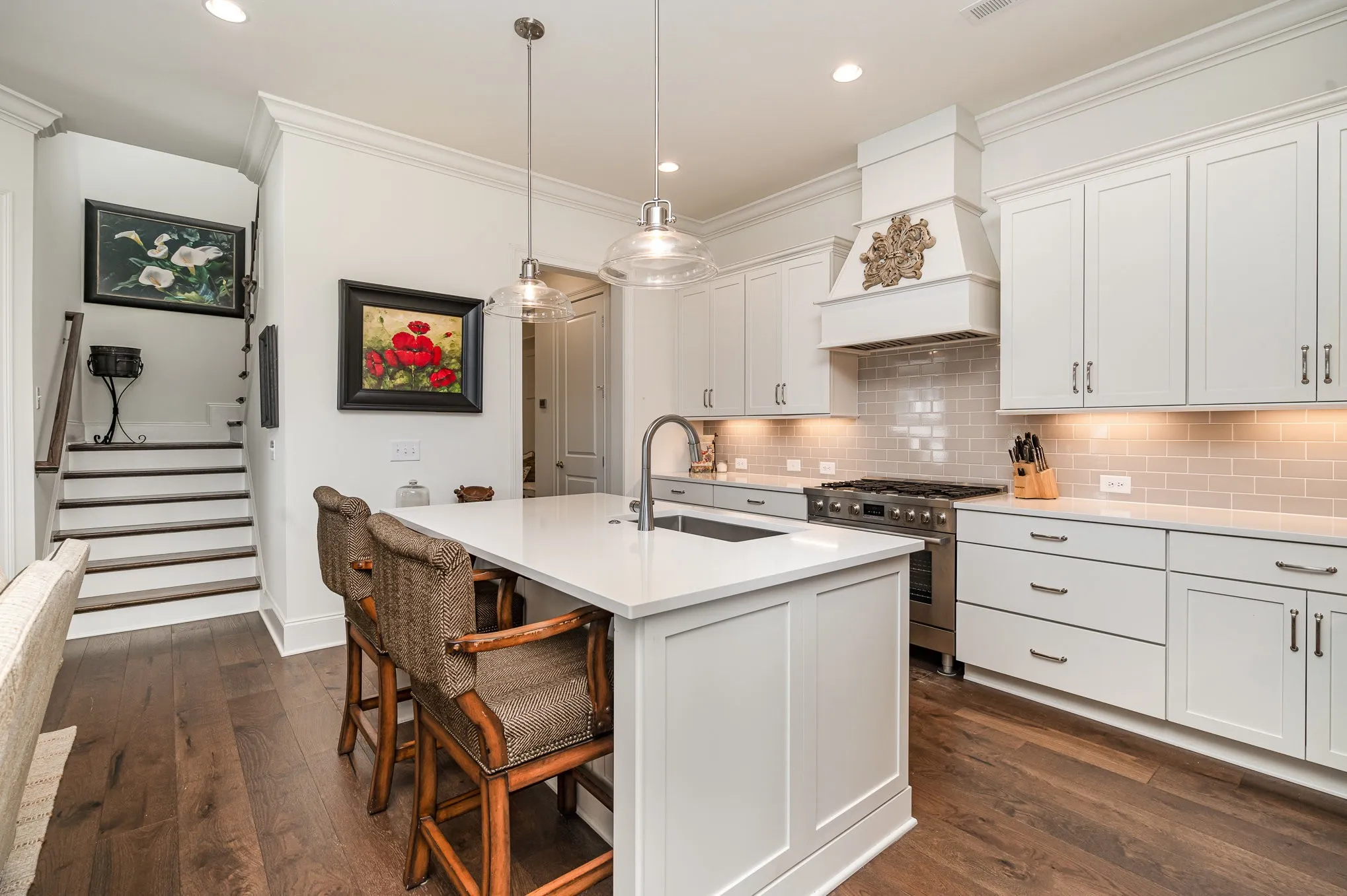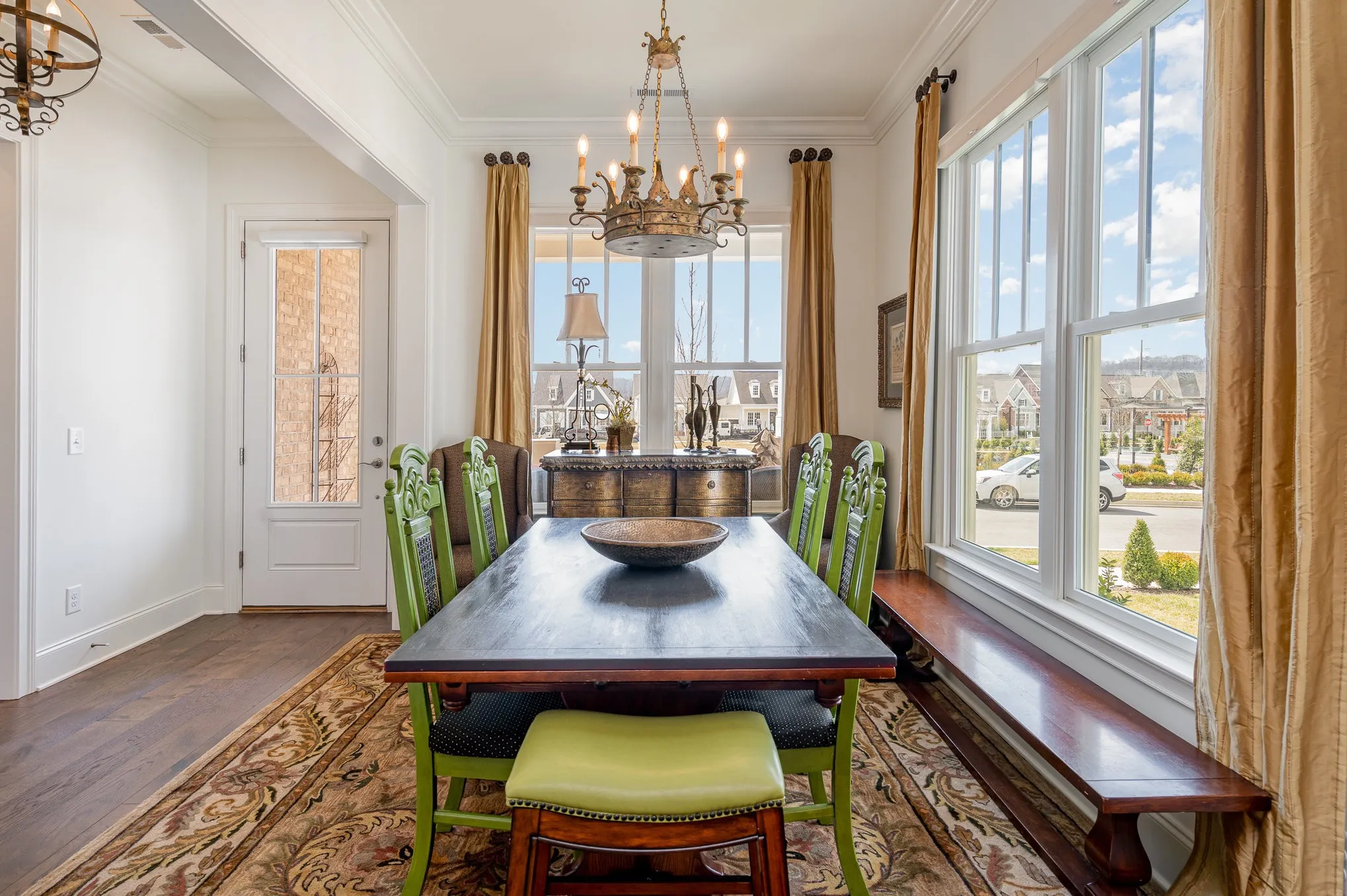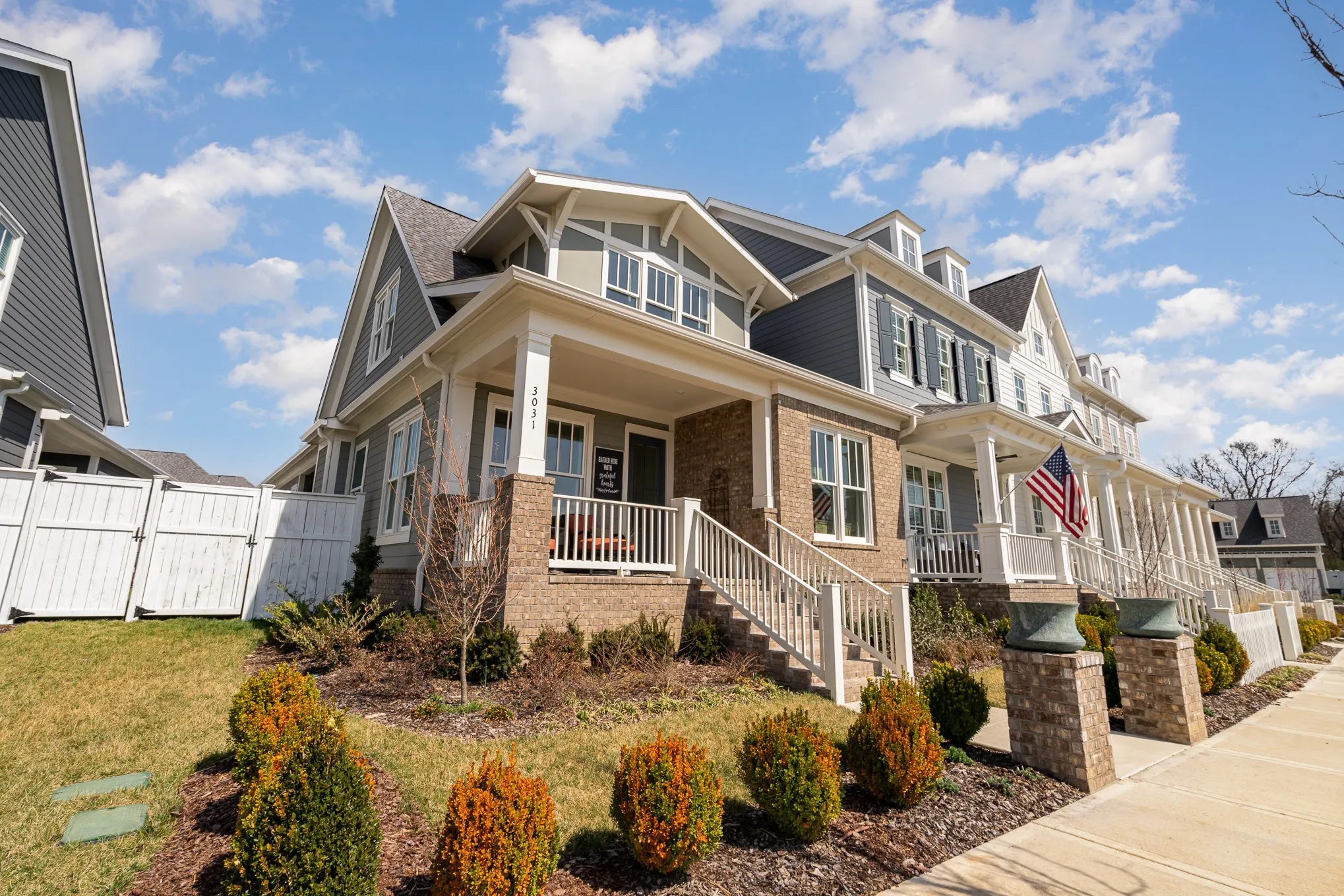 Experience maintenance-free living in this stunning end-unit 55+ townhome! Enjoy a spacious covered front porch where you can sip your morning coffee while taking in a beautiful view of the park. The home boasts soaring 10′ ceilings on the main floor, with 9′ ceilings upstairs. The main-level primary suite offers both comfort and convenience, and a second guest bedroom on the main level provides plenty of space for visitors or flexible use. The open island kitchen flows seamlessly into the dining area and great room—ideal for entertaining. Upstairs, you’ll find a versatile flex room and a private guest suite for added privacy. This home also features a two-car garage with direct access to the interior, providing added convenience. Outside, relax in your private courtyard patio with low-maintenance turf and a privacy fence. Throughout, you’ll find elegant wood flooring, with tile in the laundry and bathrooms. Golf cart in included with the purchase of the home. Don’t miss this opportunity!
