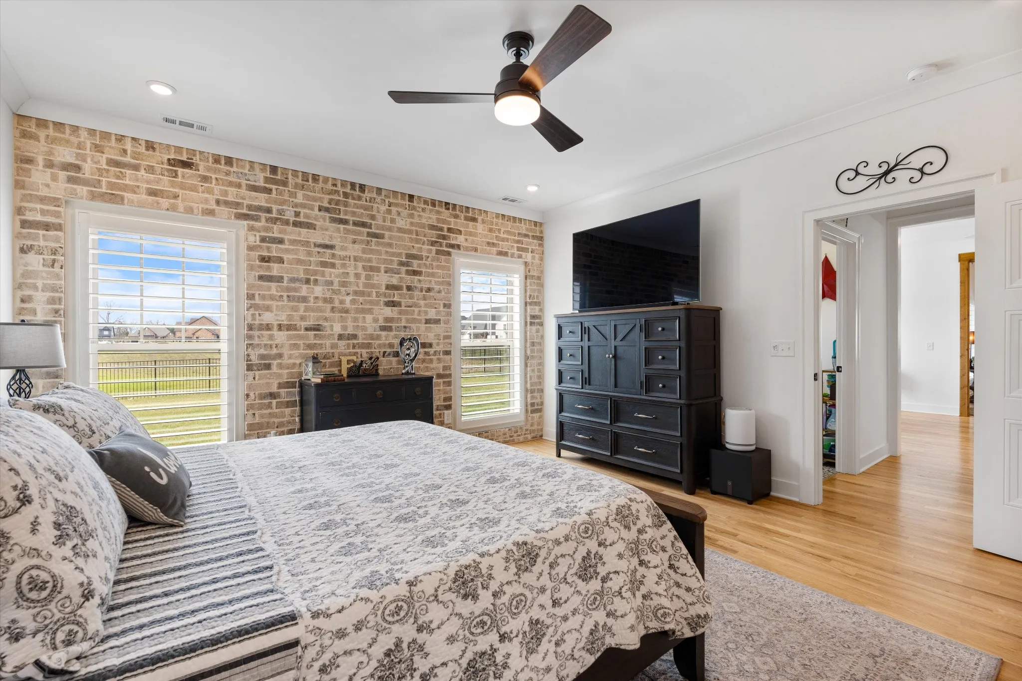 Luxury at its finest . This magnificent 5 bedroom 4 bath property nestled quietly in this Highly sought after neighborhood in Rutherford County. The Springs, is the one for you . While boasting high end tasteful upgrades , this property will not disappoint. This Smart Home offers a Wolf Hill Control 4 System that provides control to your entire home at your fingertips. This allows you to operate your door locks, garage doors, lighting, music from your built in surround sound speakers, cameras, and more. No detail was missed when building this custom home. From the wood plantation shutters, brick accent walls, tier one lighting packages throughout with upgraded fixtures, whole home water softener, granite countertops, elegant wood flooring, stunning brick fire place, 3 car garage with epoxy coated flooring, stage 2 Tesla Charger, & whole home surge protector. Imagine coffee on your covered & screened in back patio featuring epoxy flooring & custom patio shades. The exterior of the home includes a fully sodded yard with irrigation, a black aluminum fence in the back yard, & beautiful downlighting. Your New Home has so much to offer! Don’t let this one slip away!