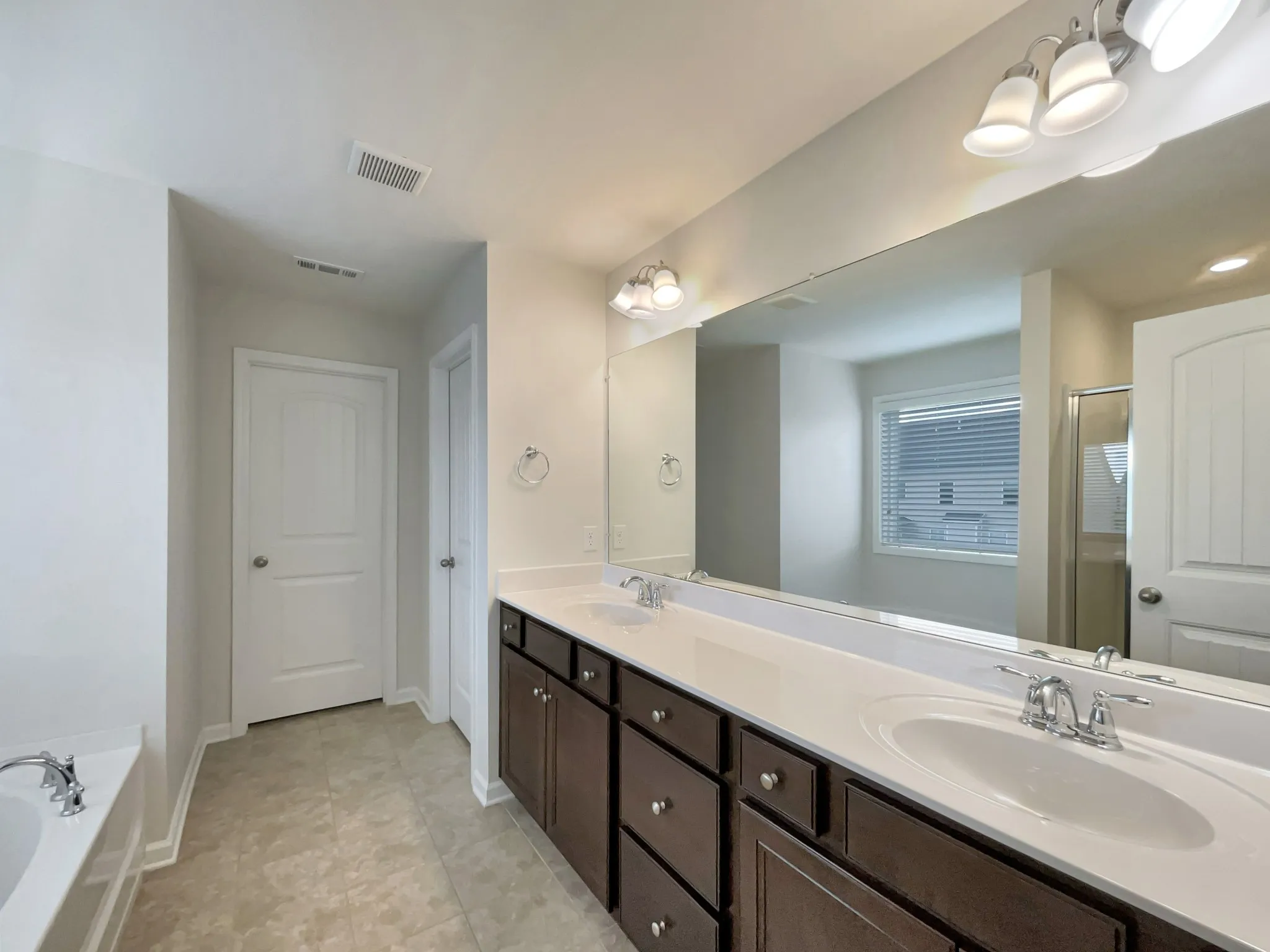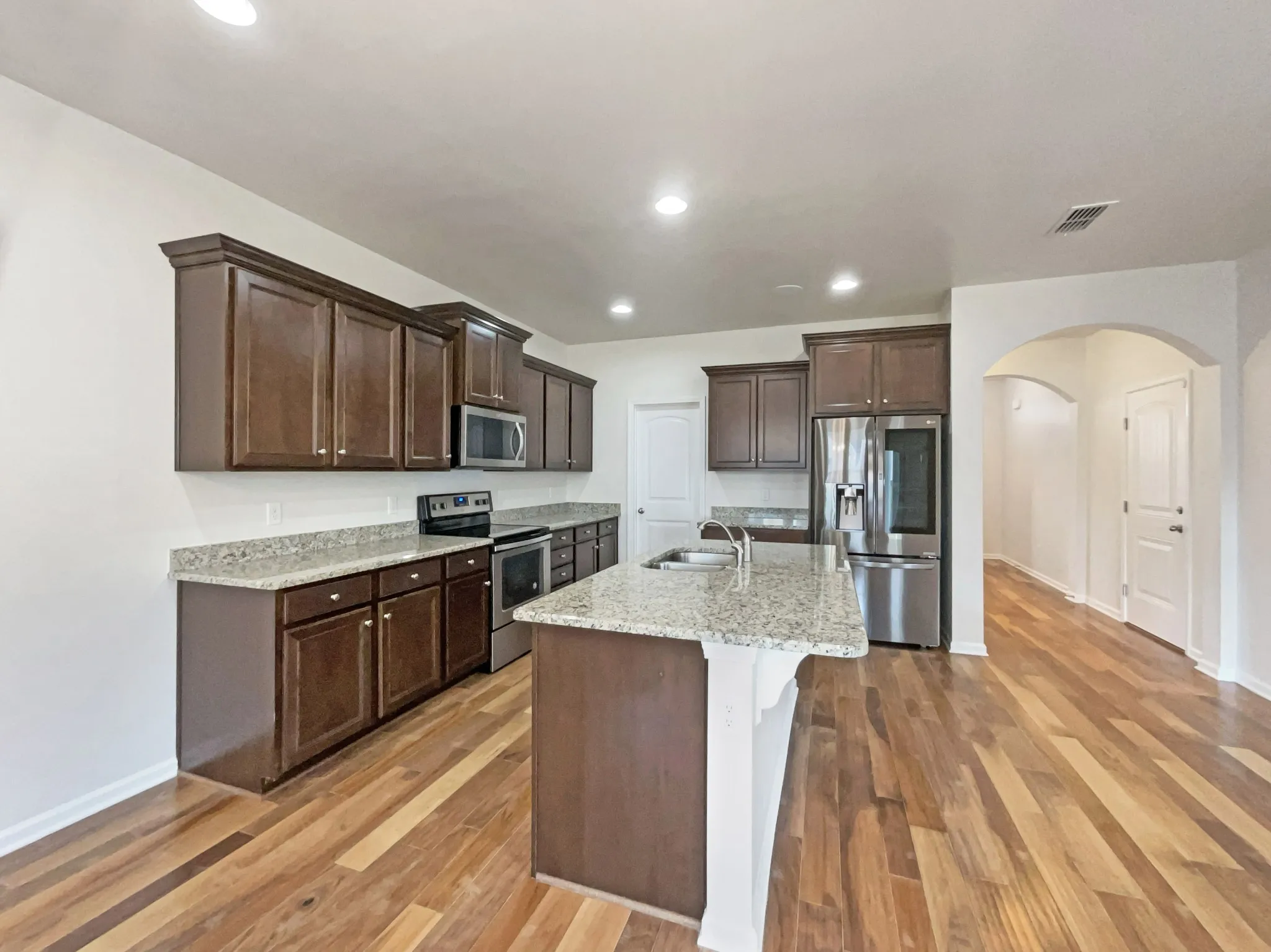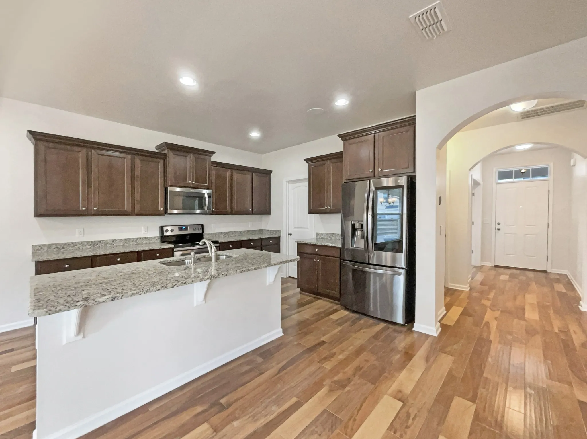 tub, and a separate shower. The open floorplan offers beautiful hardwood floors throughout the