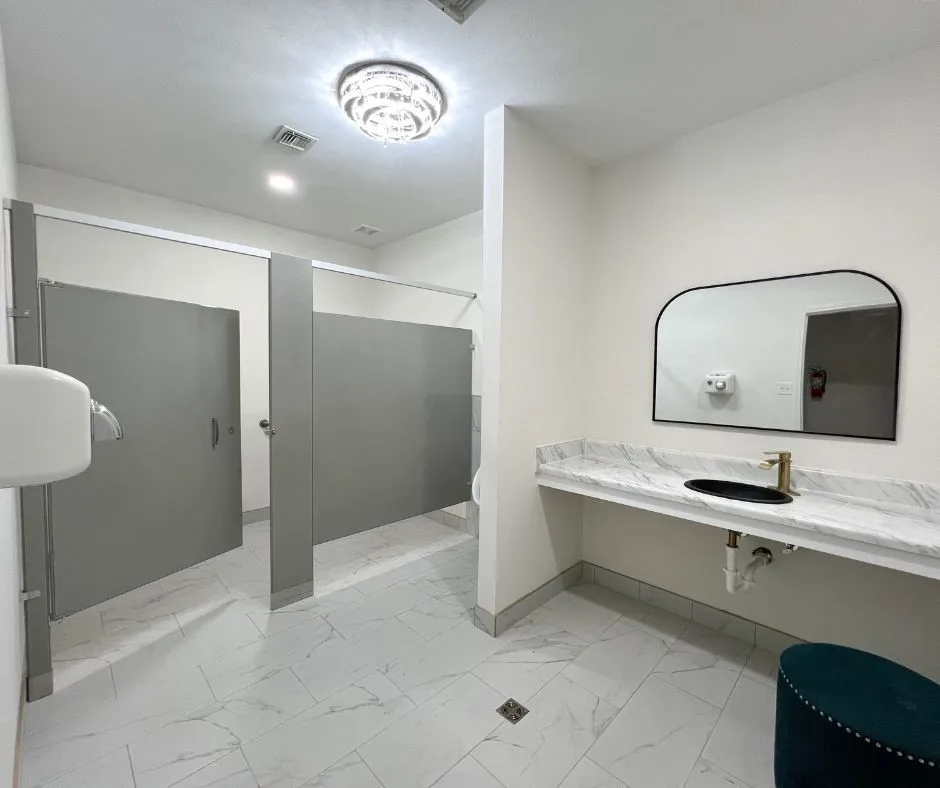 Amenities include: Access to a full kitchen & dining space. Two bathrooms for convenience. Dedicated printer space. Ideal for homeschool groups, counseling sessions, podcasting, and more!