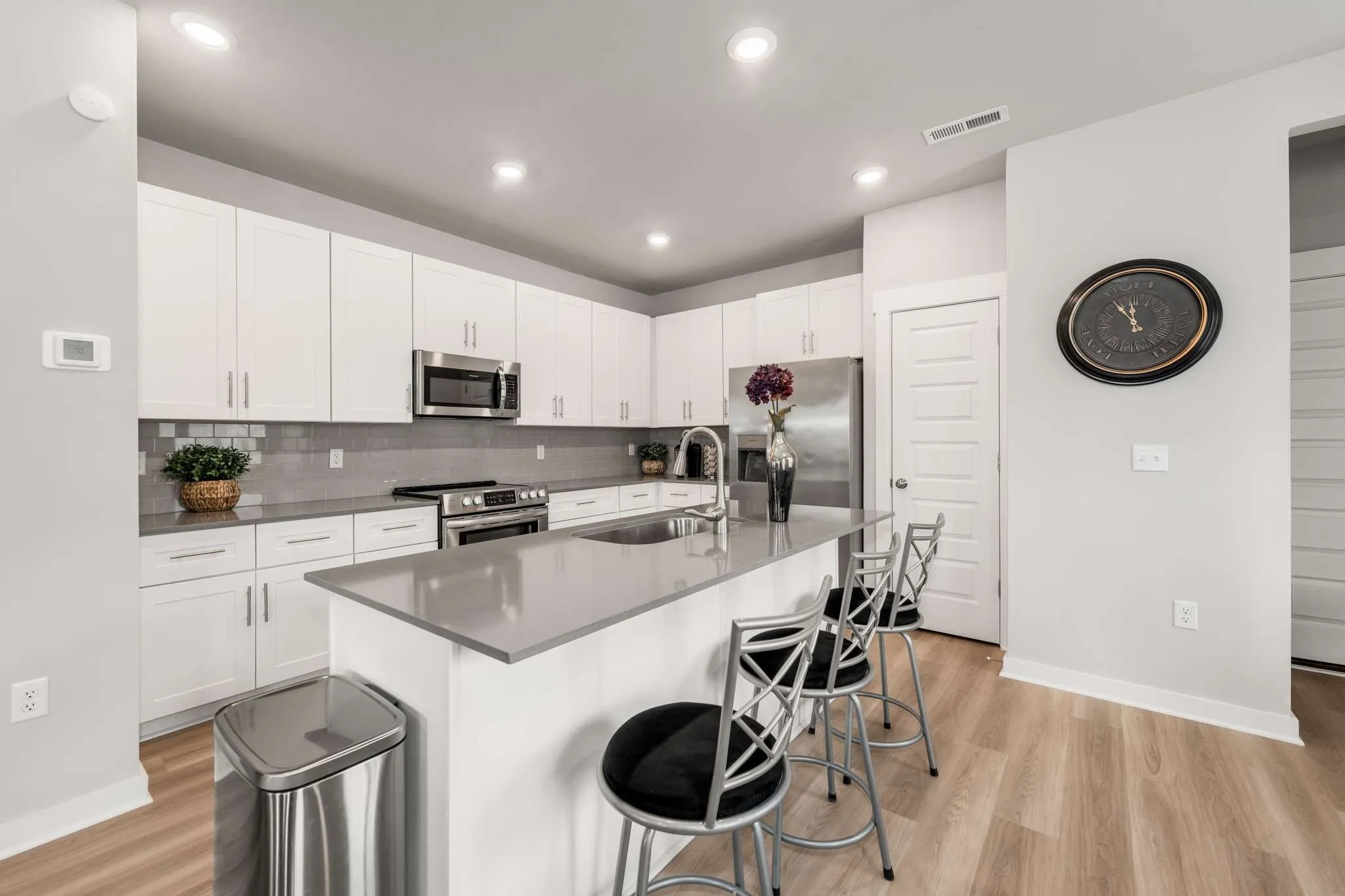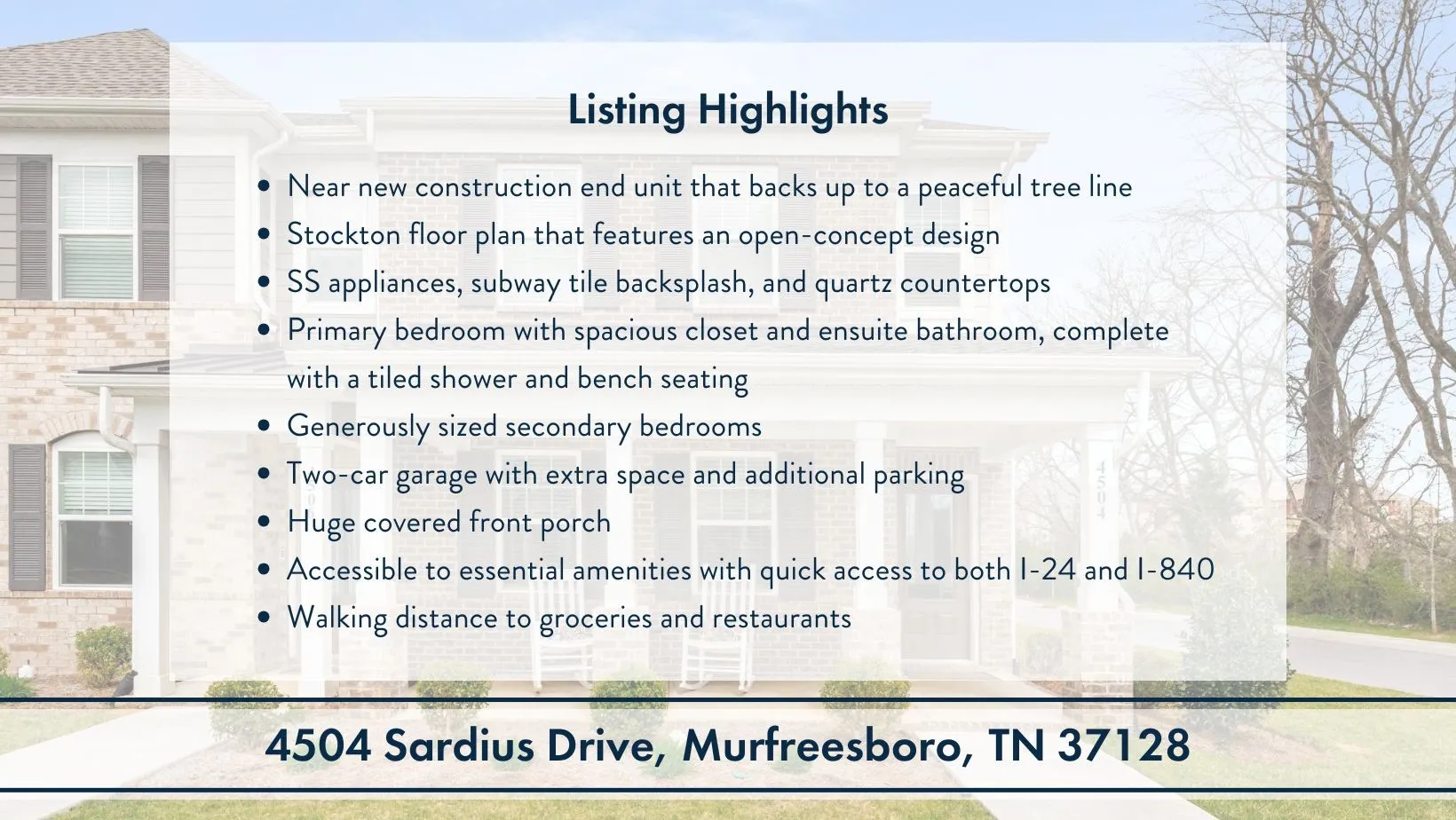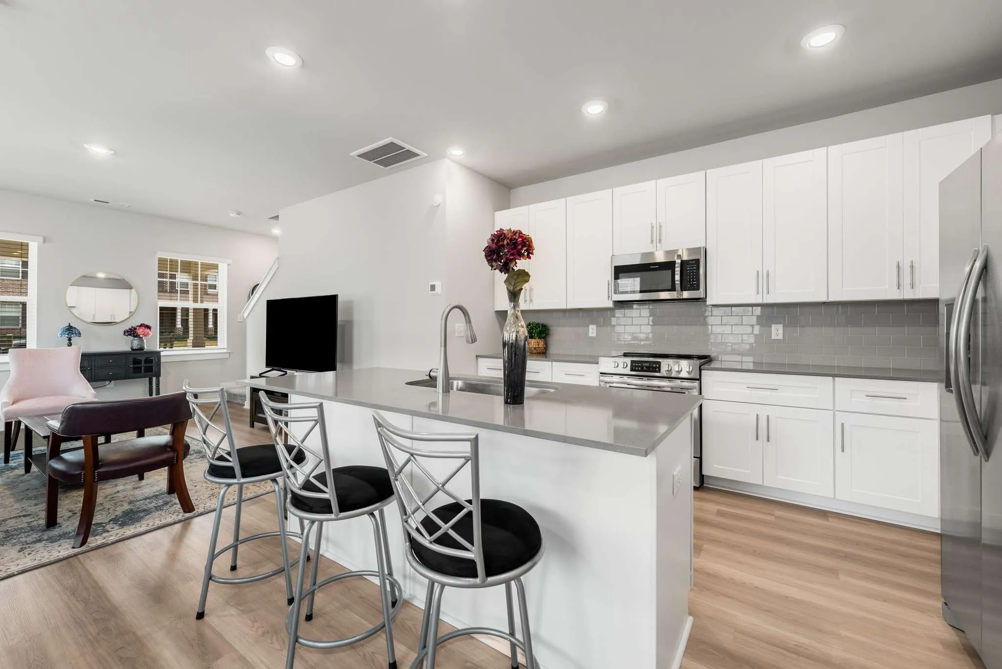 Welcome to refined, contemporary living! This END UNIT Stockton floor plan features an inviting, open-concept design that seamlessly connects the living, dining, and kitchen areas. Every detail is carefully selected to enhance your living experience, from the 42″ shaker cabinets to the subway tile backsplash and quartz countertops.
