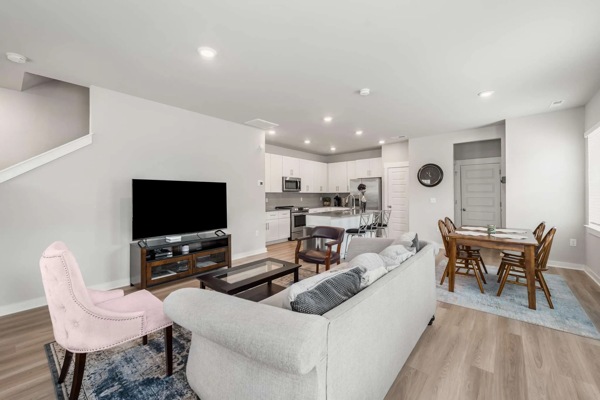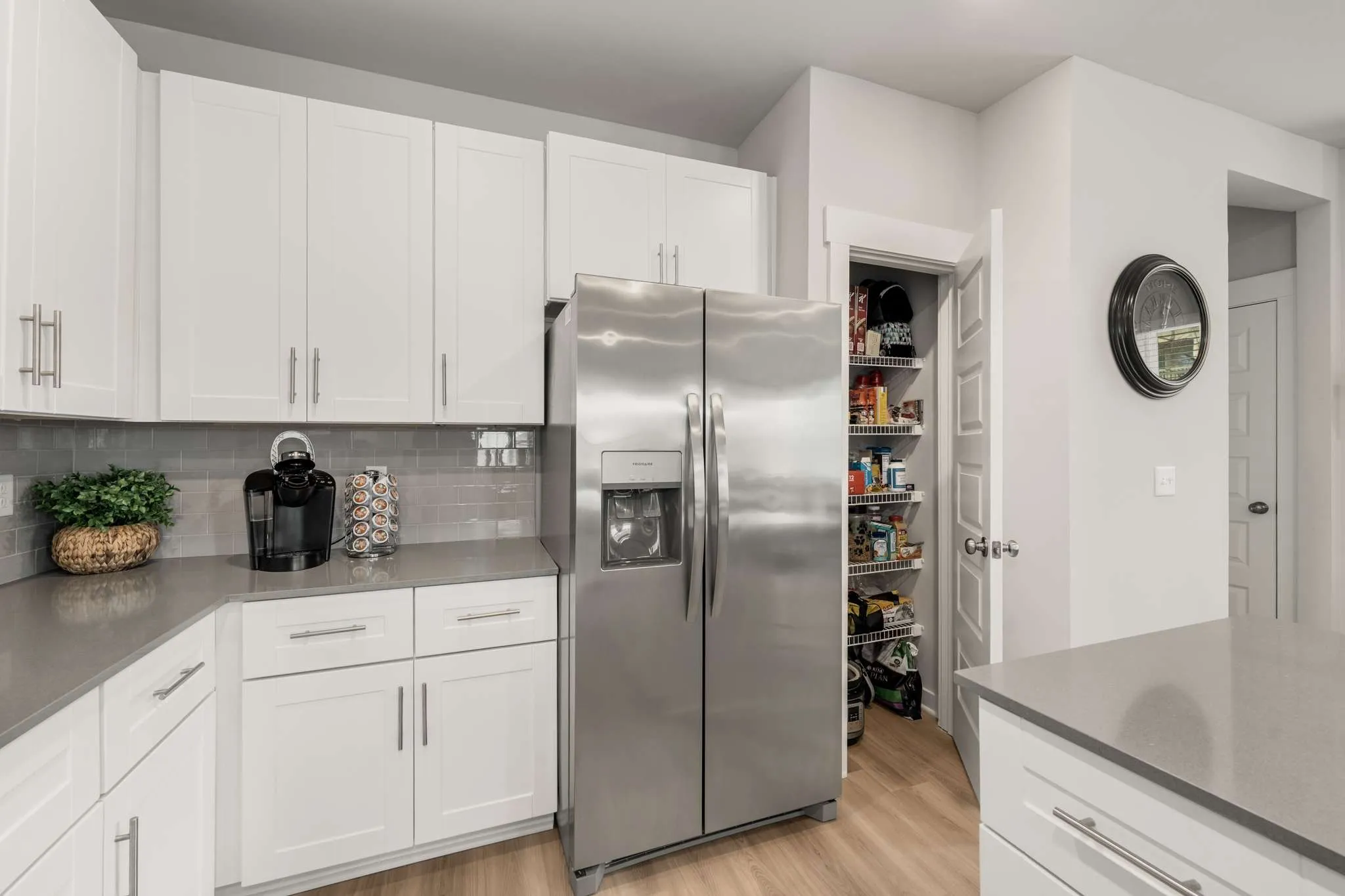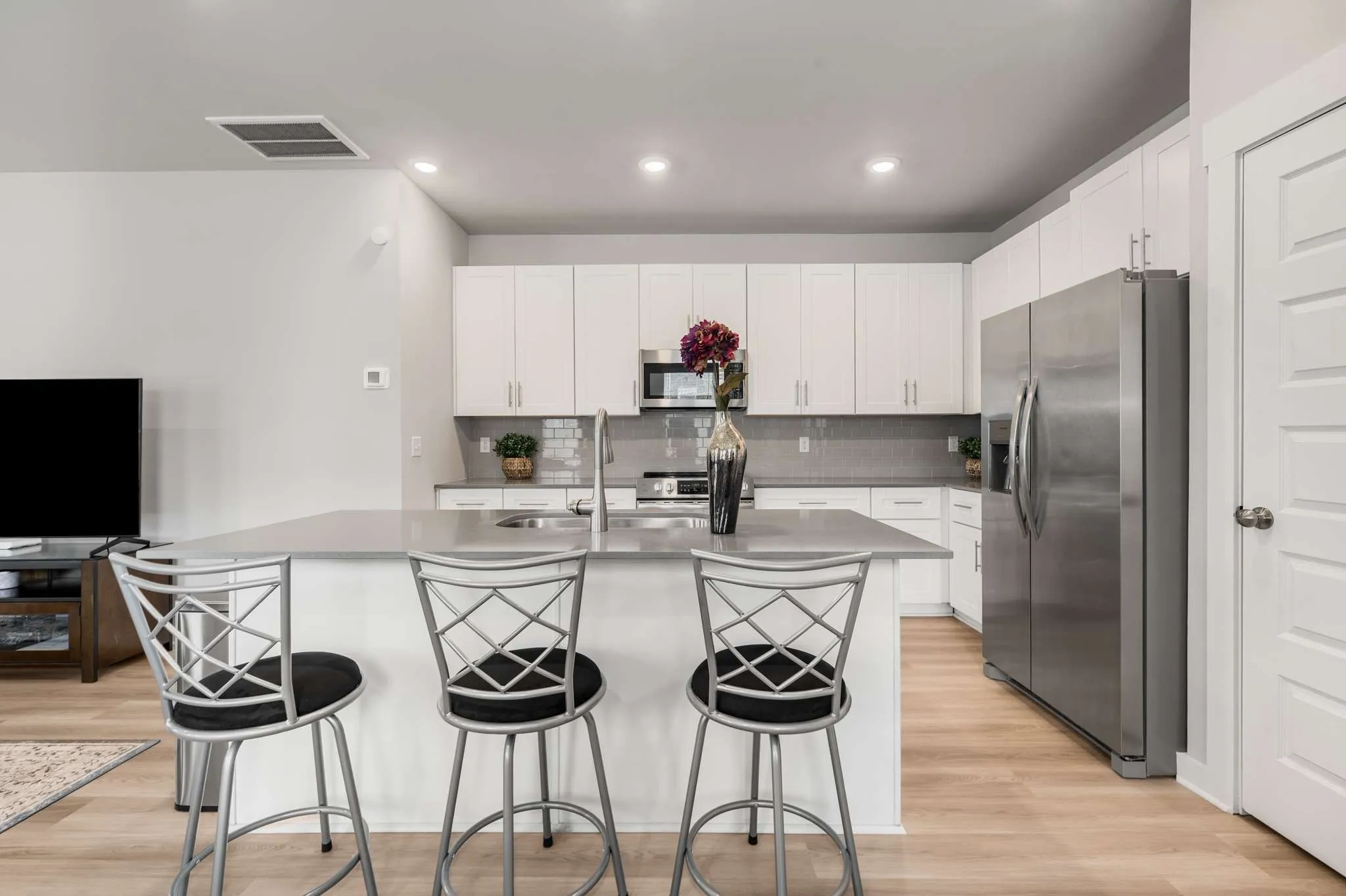 Welcome to refined, contemporary living! This END UNIT Stockton floor plan features an inviting, open-concept design that seamlessly connects the living, dining, and kitchen areas. Every detail is carefully selected to enhance your living experience, from the 42″ shaker cabinets to the subway tile backsplash and quartz countertops.