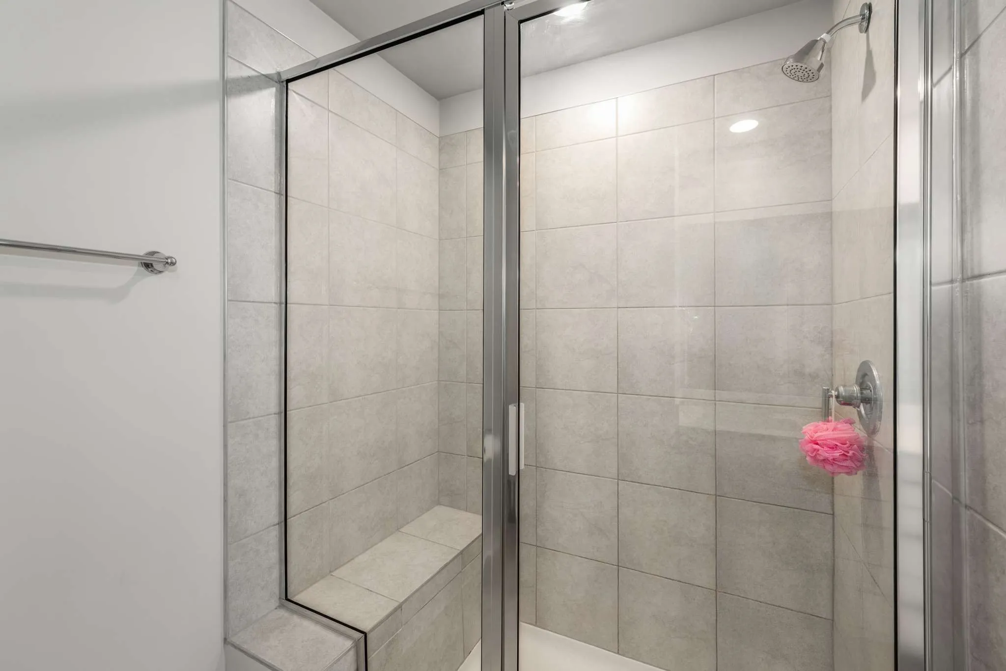 The primary bedroom offers a spacious closet and an ensuite bathroom, complete with a tiled shower and bench seating. The secondary bedrooms are generously sized, providing plenty of room for relaxation. Benefiting from its position as an end unit, this home enjoys an abundance of natural light and added privacy, backing onto a peaceful treeline.