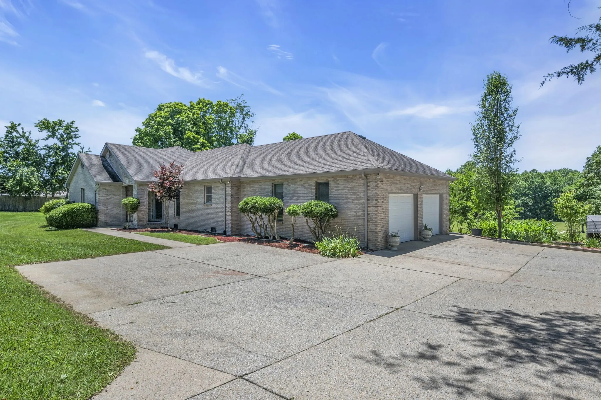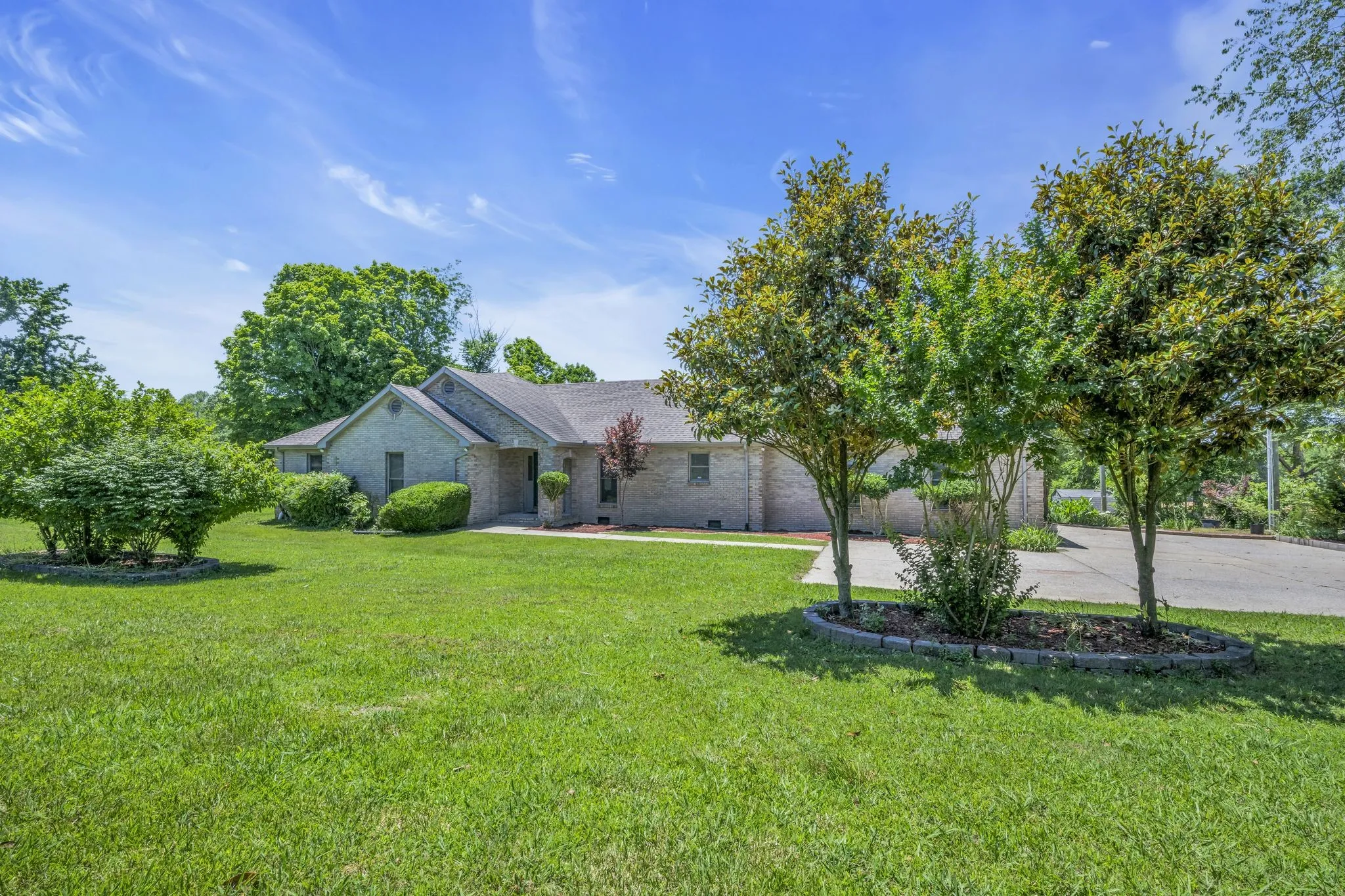 One-level, all brick, 3BR/2BA house including an oversized 2-car garage on 4.3 level acres bordering 278 feet of Aden Camp Branch (creek) in the very back of the property. Walking or biking distance to Fairview schools.