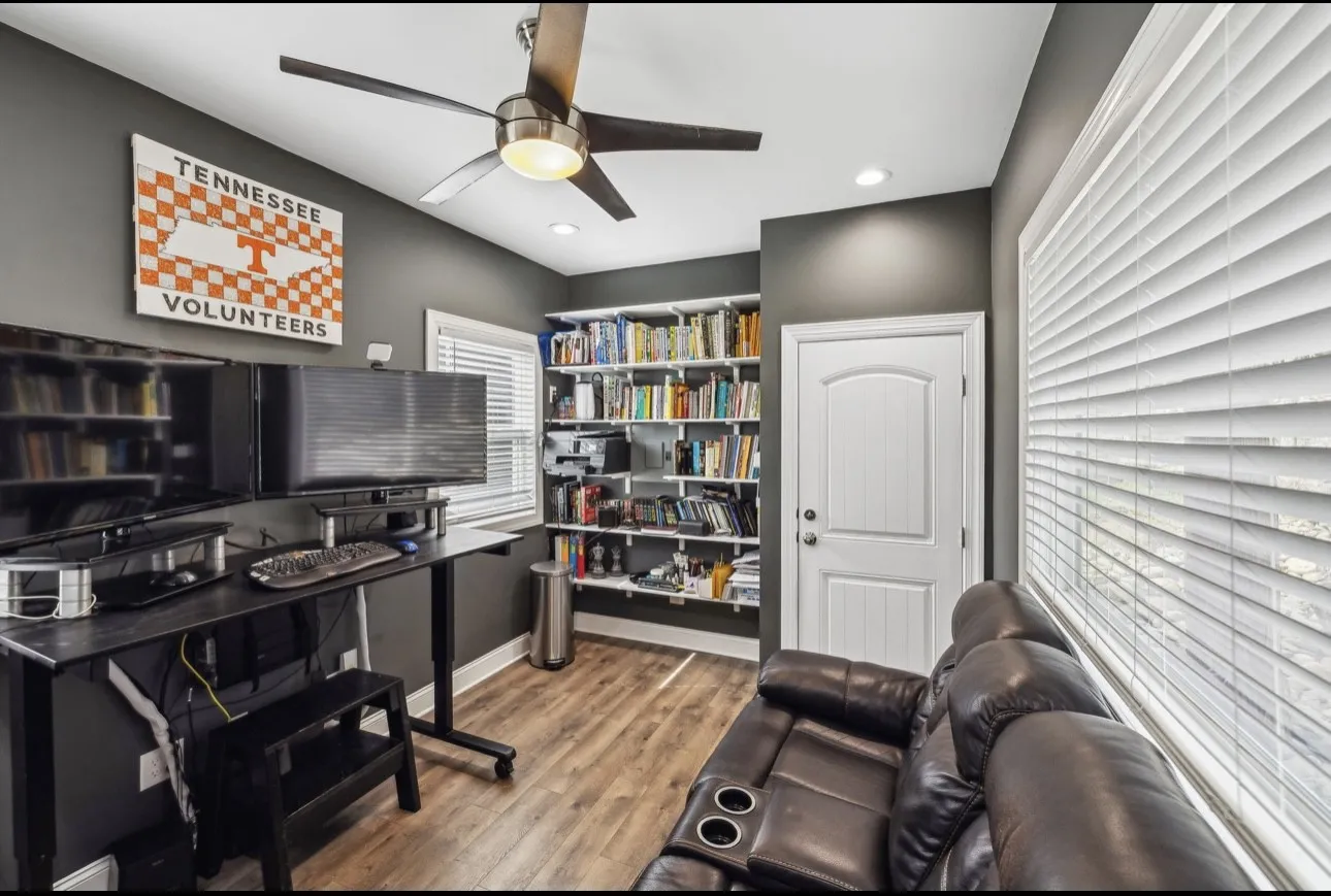 Perfect for entertainment and remote work, this 3,000+ sq. ft., single-owner home (built in 2017) offers features not found in cookie-cutter builds! ~ Located on a quiet cul-de-sac with a private backyard, you’ll enjoy large patios, a deck, and a fire pit—perfect for outdoor relaxation and get-togethers. ~ Inside, a media room with 7.1 hard-wired surround sound, projector, and large screen provides the ideal setup for movie nights or gaming. ~ A detached, 160 sq. ft. air-conditioned studio with built-in shelving offers a perfect space for a home office or hobbies. ~ Just minutes from I-24, hospital, retail, and restaurants, this location is as convenient as it gets! ~ Schedule a no-pressure tour today to experience it firsthand!