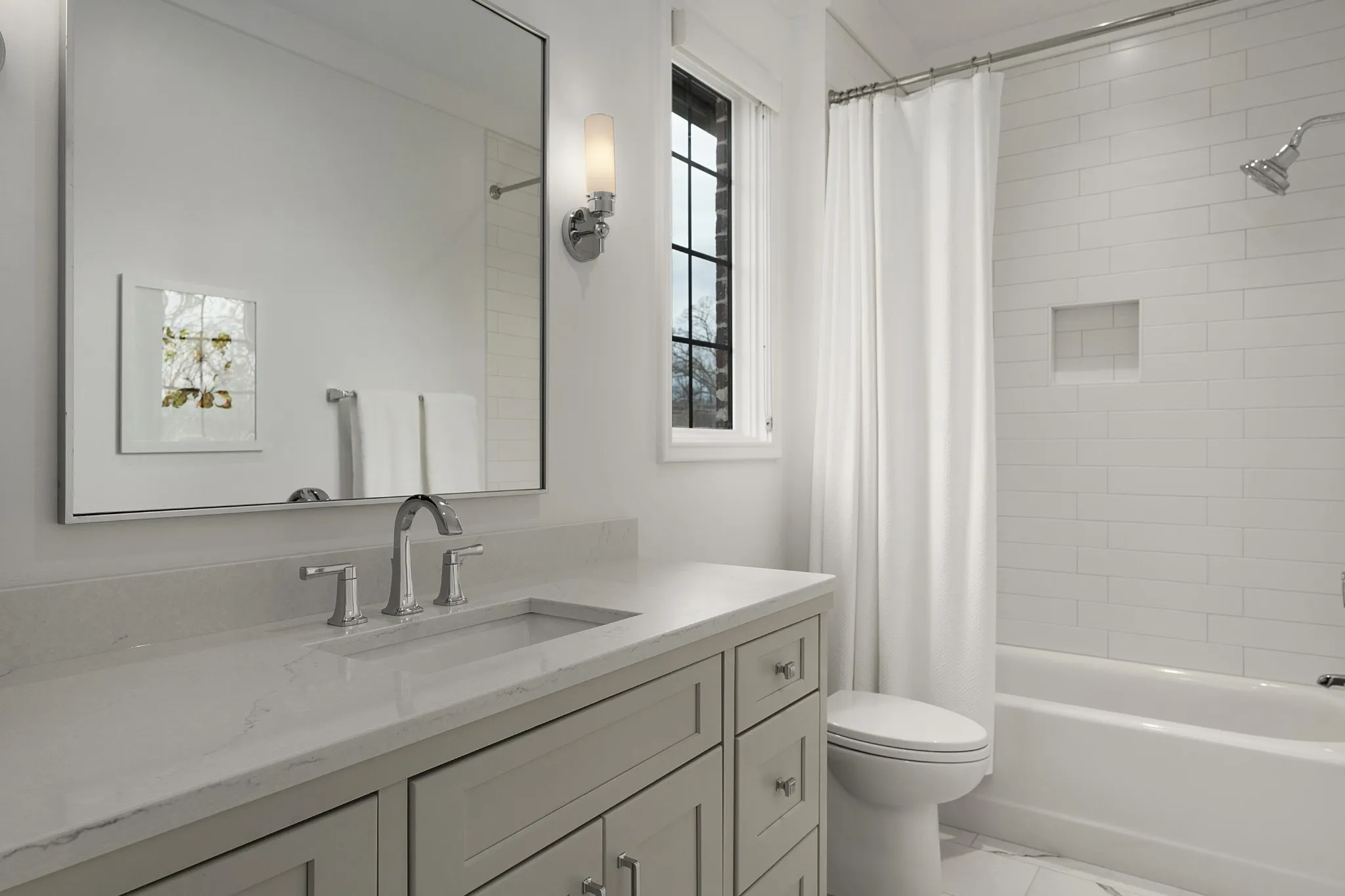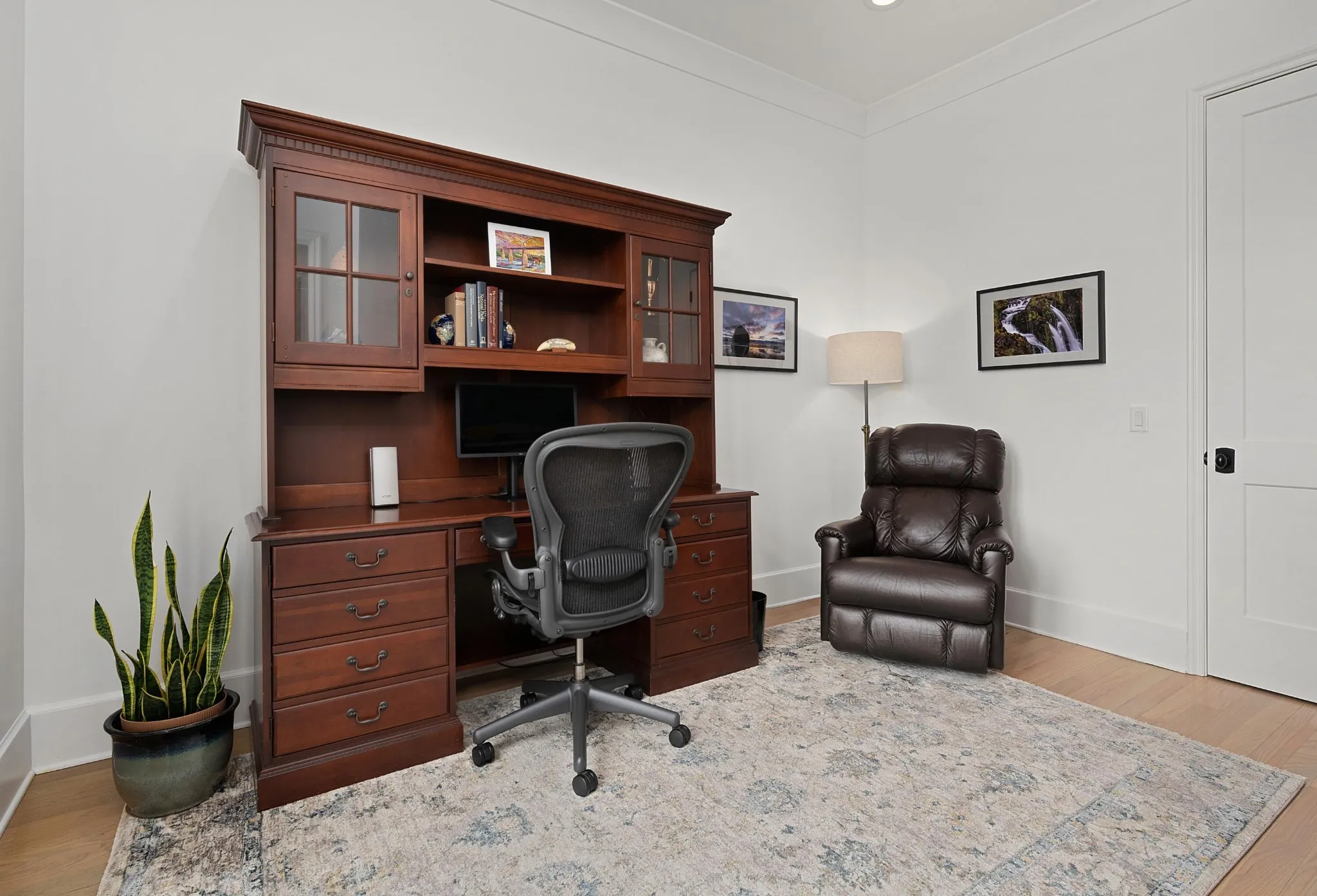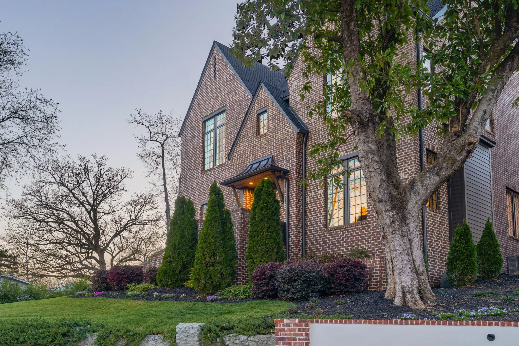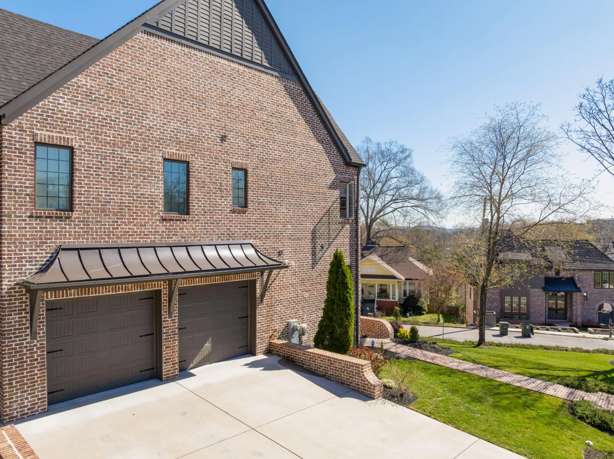 Custom built by Waters Holland in 2021, this like-new all brick, 4 bedroom, 4 bath home is truly a testament to quality design, construction and function. Located on a corner lot in the heart of North Chattanooga just minutes from schools, parks, shopping, restaurants, medical facilities and our urban center, this home will appeal on all levels. Some of the notable features include hardwoods and tile throughout, crown moldings, an open floor plan, decorative and recessed lighting, closet systems, a guest bedroom on the main, 10 foot ceilings on the main and 9 – 12 foots ceilings on the upper level, versatile bonus rooms, beautiful oversized clad windows, custom windows treatments, 2 garage bays, great outdoor living spaces and a fenced back yard – just to name a few. The living room has a beamed ceiling and a gas fireplace and flows seamlessly to the dining area and kitchen beyond. The kitchen will delight the home-chefs with its large center island with pendant lighting, quartz countertops, tile backsplash, under-cabinet lighting and stainless Bosch appliances, including a gas cooktop and double wall ovens. The kitchen also adjoins a rear butler’s pantry with wine/beverage fridge and access to the rear covered patio, as well as the garage for easy loading and unloading. Just off the butler’s pantry, you will find a spacious exercise room, while the guest bedroom and full guest bath are on the front side off of the foyer. There are 3 additional en suite bedrooms on the upper level, including the primary bedroom which boasts two walk-in closets with organizer systems and the primary bath with separate marble vanities, shower with tile and glass surround, a linen closet and a private water closet. A central bonus room has a double-door entry with a smaller adjoining bonus room that could easily be utilized as a 5th bedroom if desired.