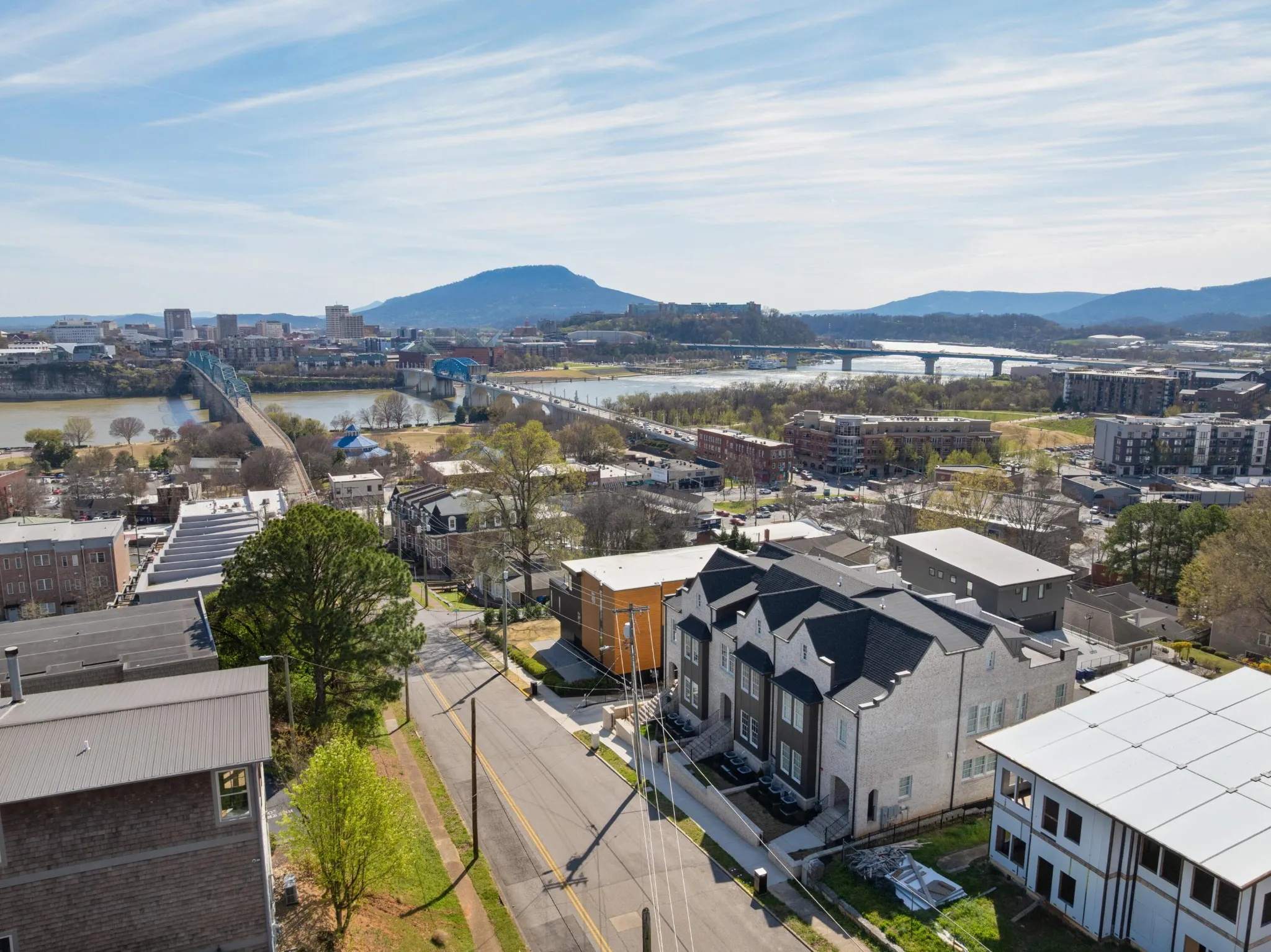 Gorgeous new construction townhome in the heart of North Chattanooga with scenic views from its perch on Forest Ave within walking distance of our beautiful riverfront and vibrant downtown hub, parks, schools, shopping, restaurants and more! This middle unit has plenty of natural lighting, hardwoods and tile, an elevator and a roof top deck to advantage of the amazing views, plus an oversized double garage with ample storage. The floor plan includes a dedicated foyer, formal dining room or office which adjoins the kitchen via the butler’s pantry, a powder room, a gourmet kitchen with a center island, stainless KitchenAid appliances, soft-close cabinetry, quartz countertops, tile backsplash and is open to the breakfast area and the great room with a gas fireplace. The sleeping quarters are on the second floor, including the primary suite with 2 walk-in closets and the primary bath with separate vanities, free standing tub and a shower with tile and glass surround. There are two additional bedrooms, a full hall bath with a large shower and laundry room. The upper level has a flex space with refreshment center, and French doors to the rooftop deck, a half bath and a storage room that could also be used as a bonus room. The basement level has a deep double garage and a large storage room. If you are looking to simplify your lifestyle without sacrificing on space or quality, then contact us today for more information about this luxurious townhome with fantastic views in a super convenient location. Information is deemed reliable but not guaranteed. Buyer to verify any and all information they deem important.