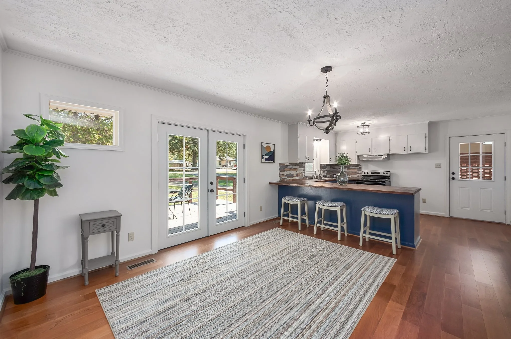 Welcome to your dream home! This beautifully renovated 4-bedroom, 2-bathroom brick home offers a perfect blend of modern comfort and classic charm. Step inside to discover an inviting open floor plan that seamlessly connects a spacious living area with an abundance of natural light. The heart of the home is the stunning kitchen, featuring brand-new appliances, elegant butcher block countertops, and ample cabinet space, making it a joy to cook and entertain. Enjoy delightful meals in the dining area, enhanced by new French doors that lead to a lovely back deck, perfect for outdoor gatherings and relaxation. Each of the four bedrooms is generously sized, offering plenty of space for family and guests. The updated bathrooms feature stylish fixtures and finishes that complement the home’s overall aesthetic. With its fresh renovations and move-in-ready status, this home is perfect for those seeking a turnkey lifestyle. Located in a desirable neighborhood, close to parks, schools, and amenities, this property won’t last long! Don’t miss out on this incredible opportunity—schedule your showing today!
