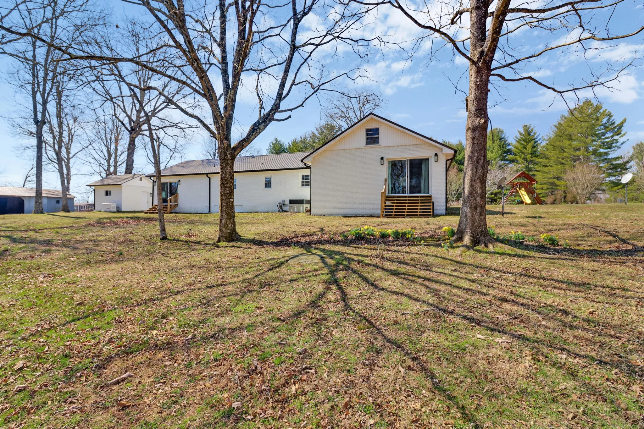 RARE OPPORTUNITY TO OWN THIS BEAUTIFUL HOME ON 70+ PRISTINE ACRES! FULLY REMODELED IN 2024! LOCATED AT THE END OF JOHN MYERS ROAD WITH VIRTUALLY ZERO TRAFFIC. AT OVER 2600 SQ FT THIS HOME OFFERS FOUR BEDROOMS AND THREE FULL BATHS. MANY MODERN TOUCHES THROUGHOUT WHILE STILL KEEPING THAT FARMHOUSE FEEL! FEATURES INCLUDE A SPACIOUS MASTER SUITE WITH LARGE WALK IN CLOSET AND HUGE CUSTOM TILE WALK IN SHOWER, PRIVATE HOME OFFICE SPACE, LARGE FAMILY ROOM ,BEAUTIFULLY DONE MODERN FARMHOUSE KITCHEN, SEPARATE GUEST SUITE WITH ITS OWN PRIVATE BATH, WOOD AND TILE FLOORS THROUGHOUT THE HOME. ALSO FEATURING A GENERAC STANDBY GENERATOR, DETACHED GARAGE, LARGE COVERED FRONT PORCH, FIRE PIT, BARNS, PONDS, FENCED AND CROSS FENCED, LOTS OF FRONTAGE ON FARMERS CREEK AND BEAUTIFUL YEAR-ROUND MOUNTAIN VIEWS. NO RESTRICTIONS! AN ADDITIONAL 34 ACRES IS AVAILABLE. THIS ONE-OF-A-KIND PROPERTY IS A MUST SEE!