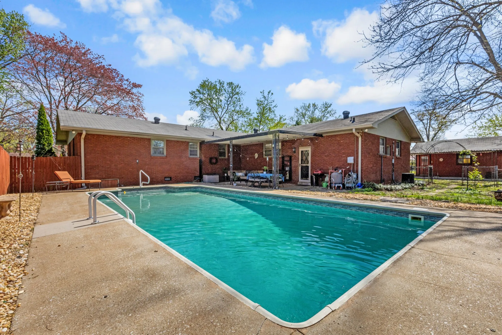 **REDUCED** This stunning all-brick home in the heart of Smyrna offers both style and comfort and NO HOA ! With over 2,500 sq. ft. of living space with newly installed hardwood flooring, it boasts a beautifully remodeled kitchen featuring stainless steel appliances and bamboo cork flooring. The home includes three spacious bedrooms, 2.5 bathrooms, and a recently updated master bath. The floor plan is perfect for entertaining with a large living room, formal dining room, gathering room, and a huge rec room that provides ample space for family activities. Outside, you’ll find a gorgeous, fully fenced inground pool with a saltwater chlorine system, ideal for relaxing or hosting get-togethers. The expansive double lot offers plenty of privacy and includes mature pecan and pear trees, providing plenty of shade and room for a garden or even a disc golf putting area.Additional features include a detached garage with an attached carport for extra car storage, along with a large concrete driveway and guest parking for convenience. Plus, with its close proximity to schools, shopping, and amazing parks, this home truly has it all. It’s the perfect place to settle down and enjoy life in Smyrna!