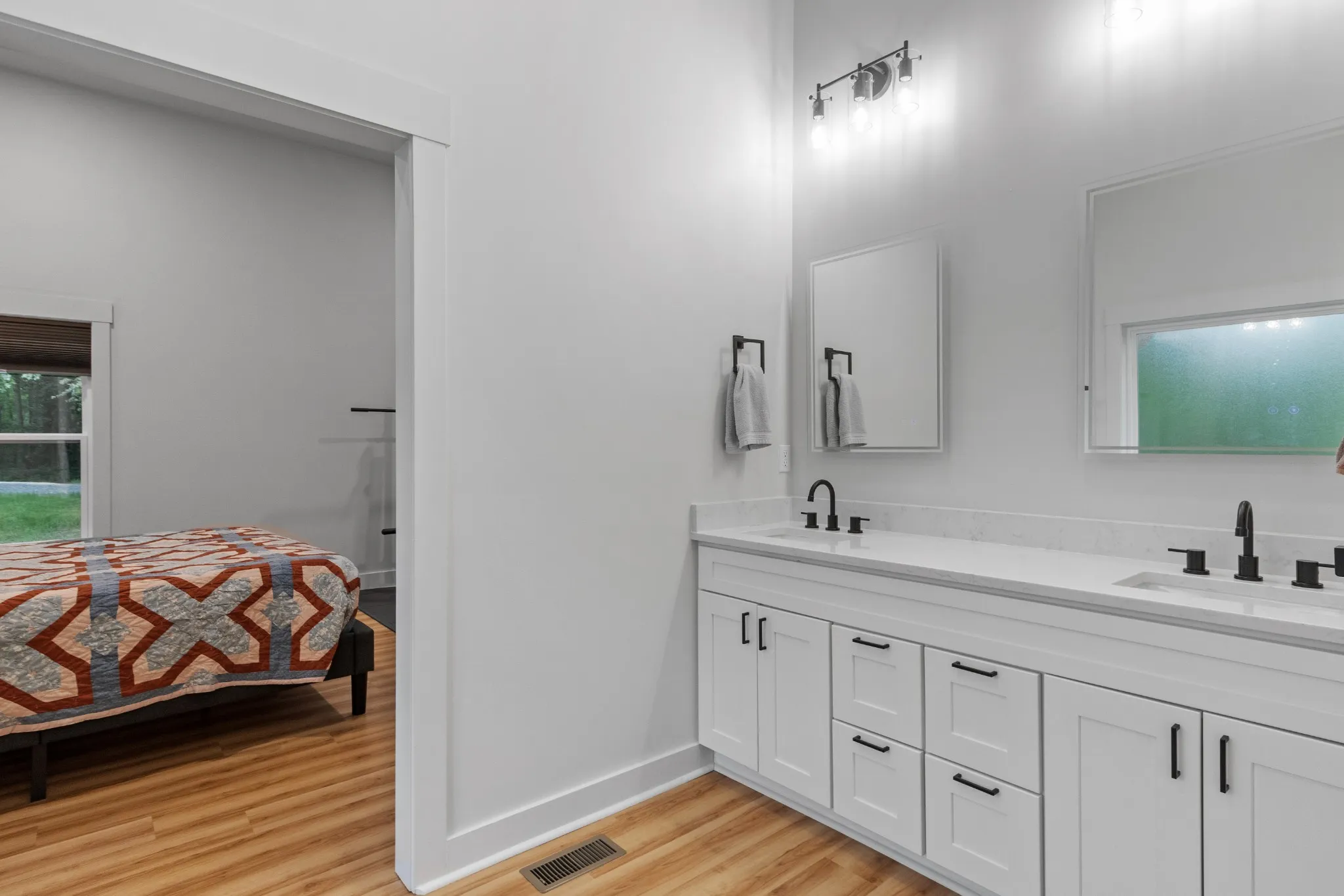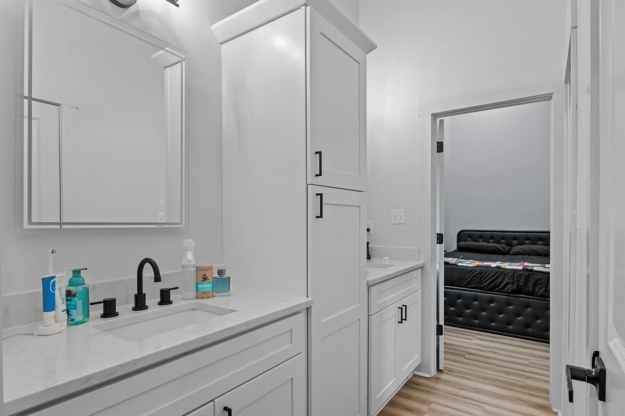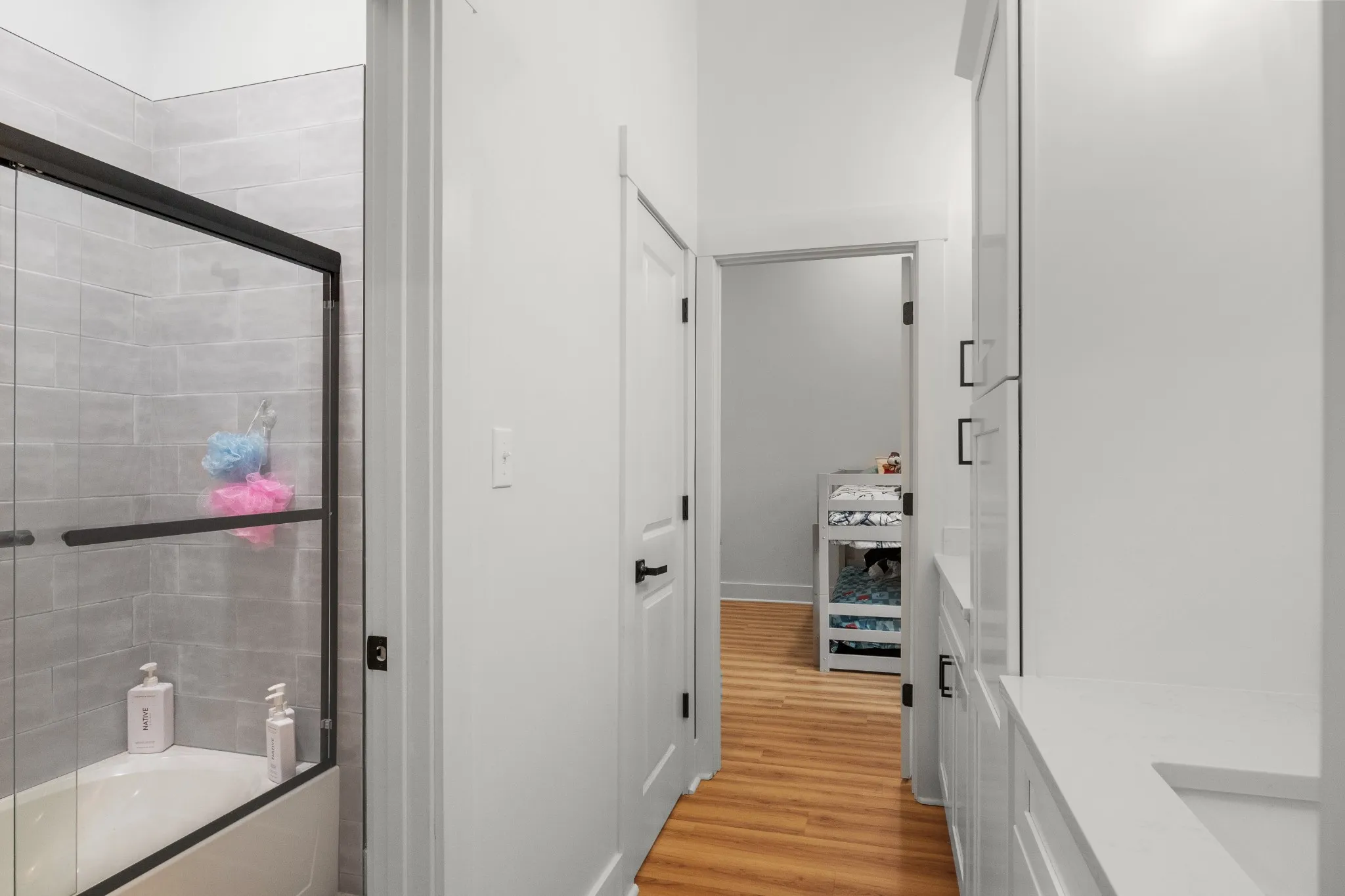 "LongDescription" => "Jack & Jill bathroom between the guest bedrooms with the white cabinets, plenty of storage, double sinks. and quartz counters!"