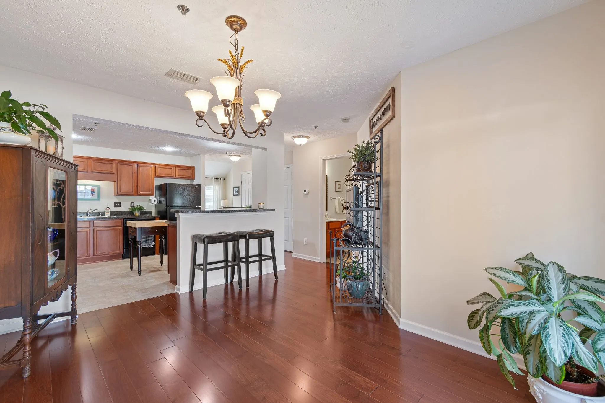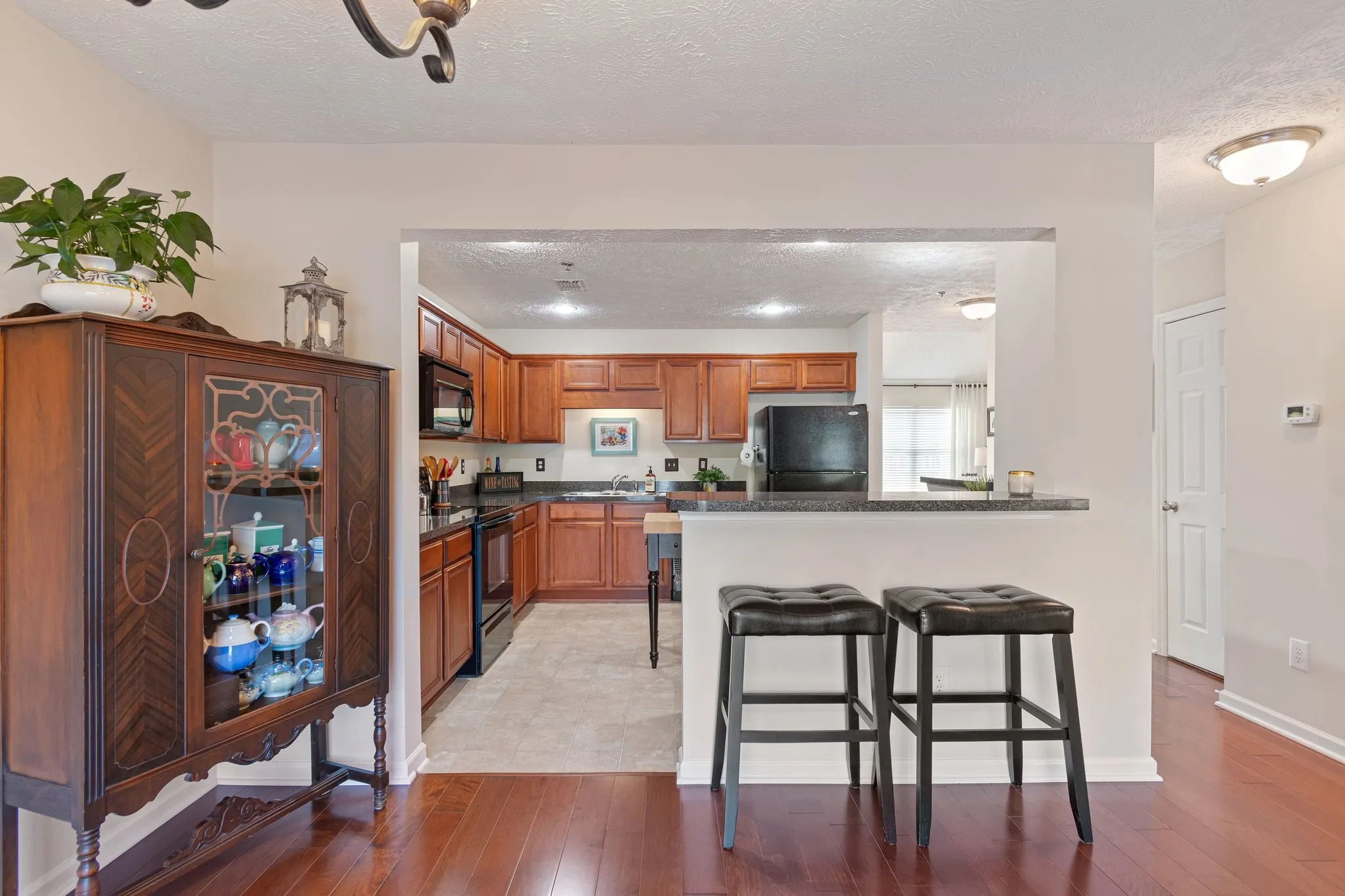Welcome home to this immaculate 3 Bedroom, 3 Bath home with a one car garage and extra wide driveway for additional parking. Hardwood floors in the two story family room as well as in the kitchen and dining room. All appliances remain including refrigerator, washer and dryer. Big walk-in pantry.Pull out trays in the cabinets. Large Primary bedroom with a walk in closet and bath with separate shower and tub. Home is flooded with lots of natural light. Fenced in back patio that backs to the woods. Such a private space for relaxing! Conveniently located near the elementary school and shopping in Spring Hill. Easy access to I-65 for a quick commute. Downstairs bedroom currently used as a den.