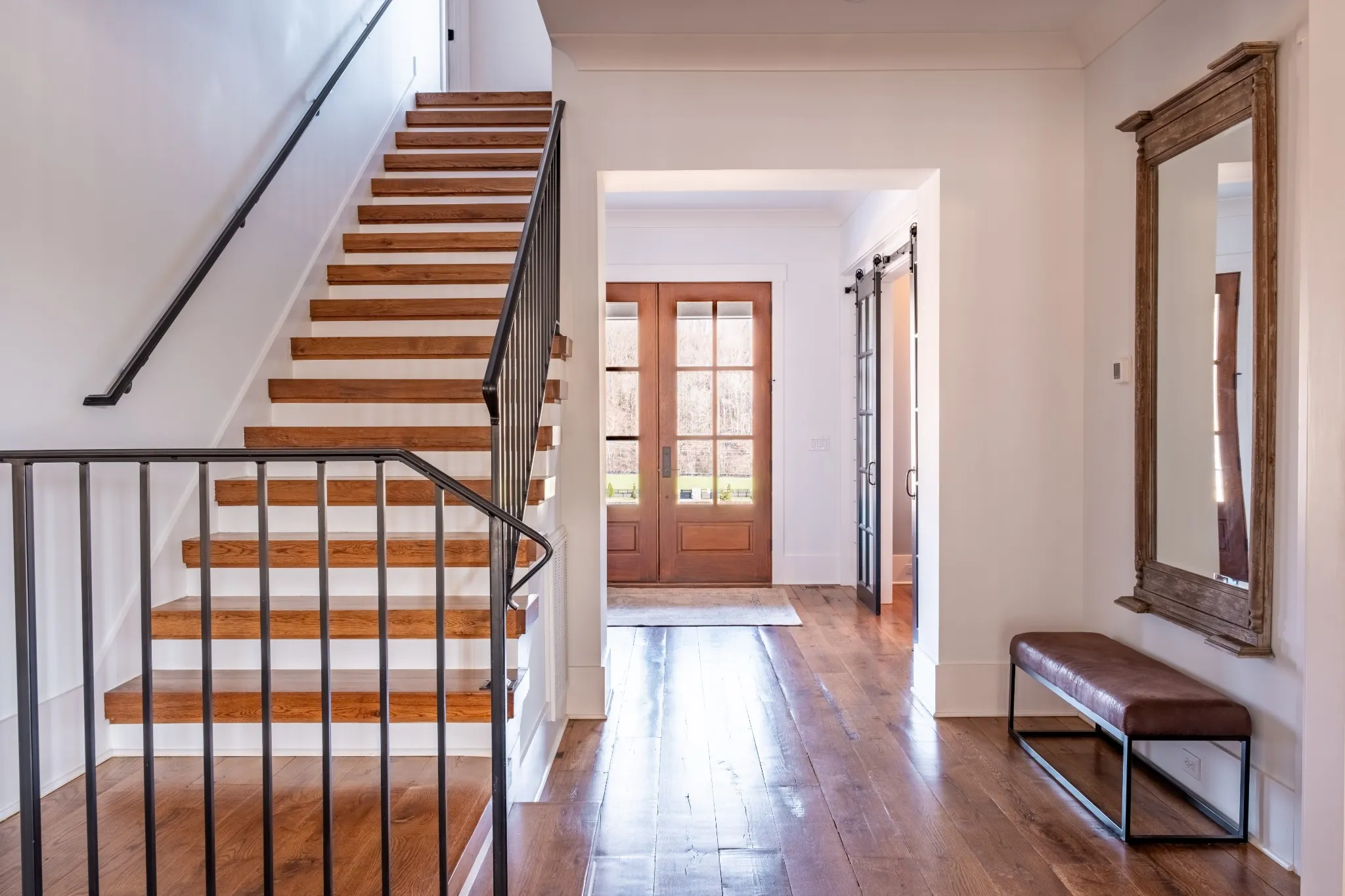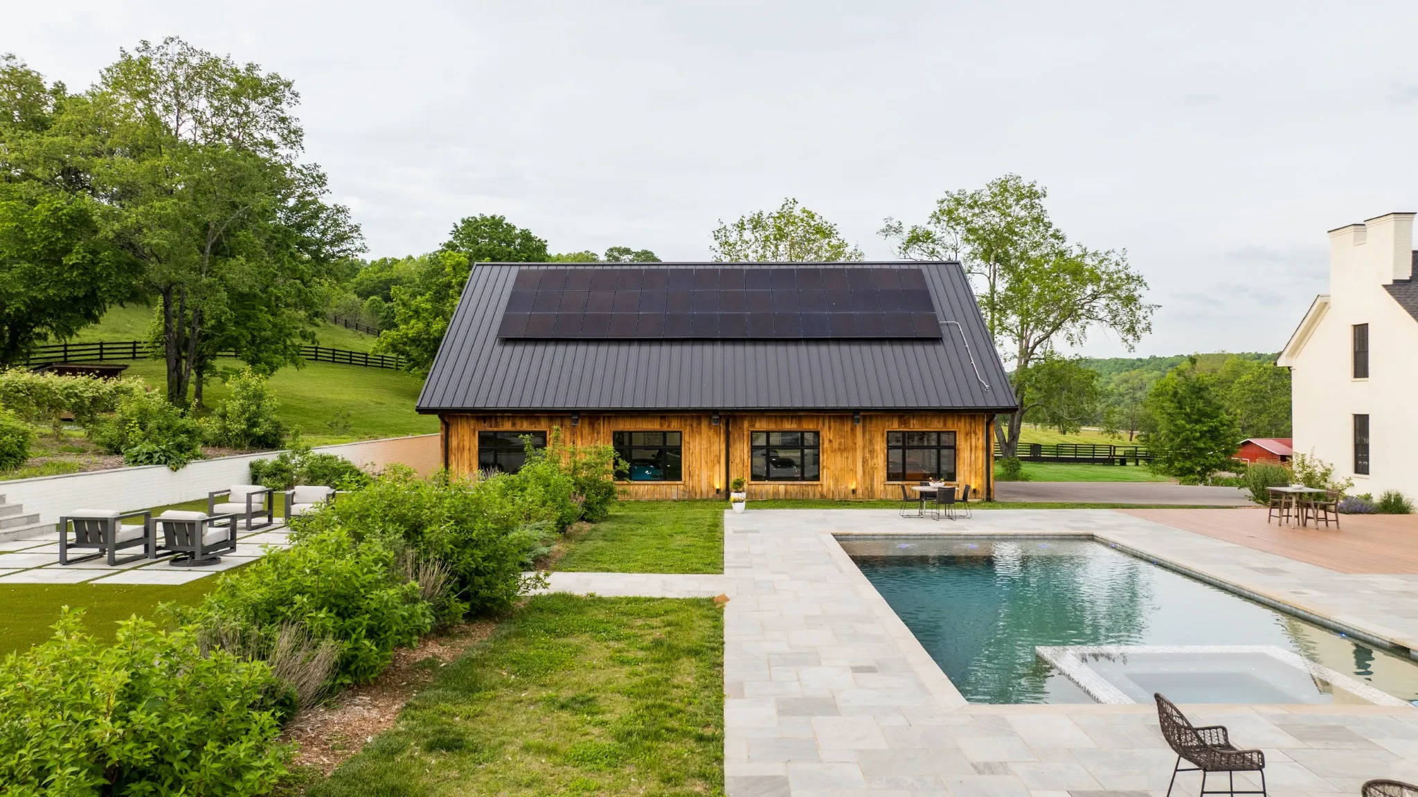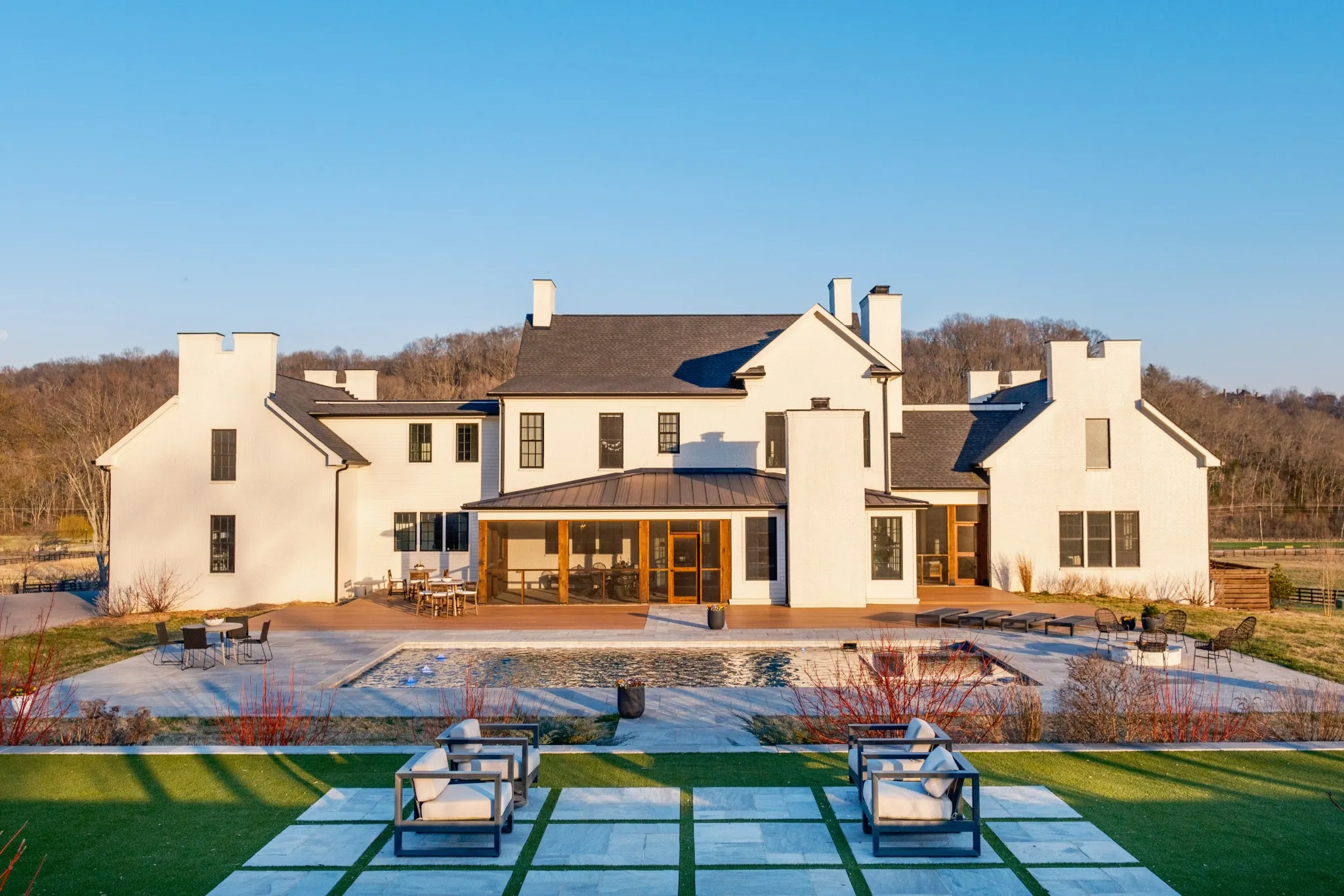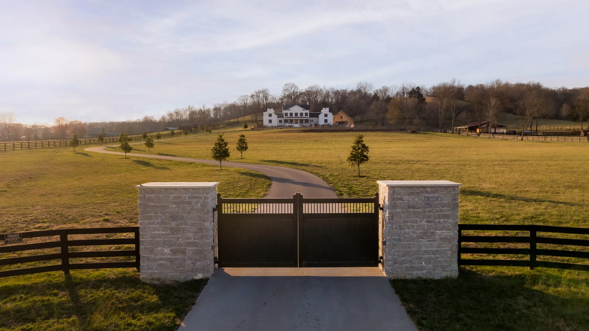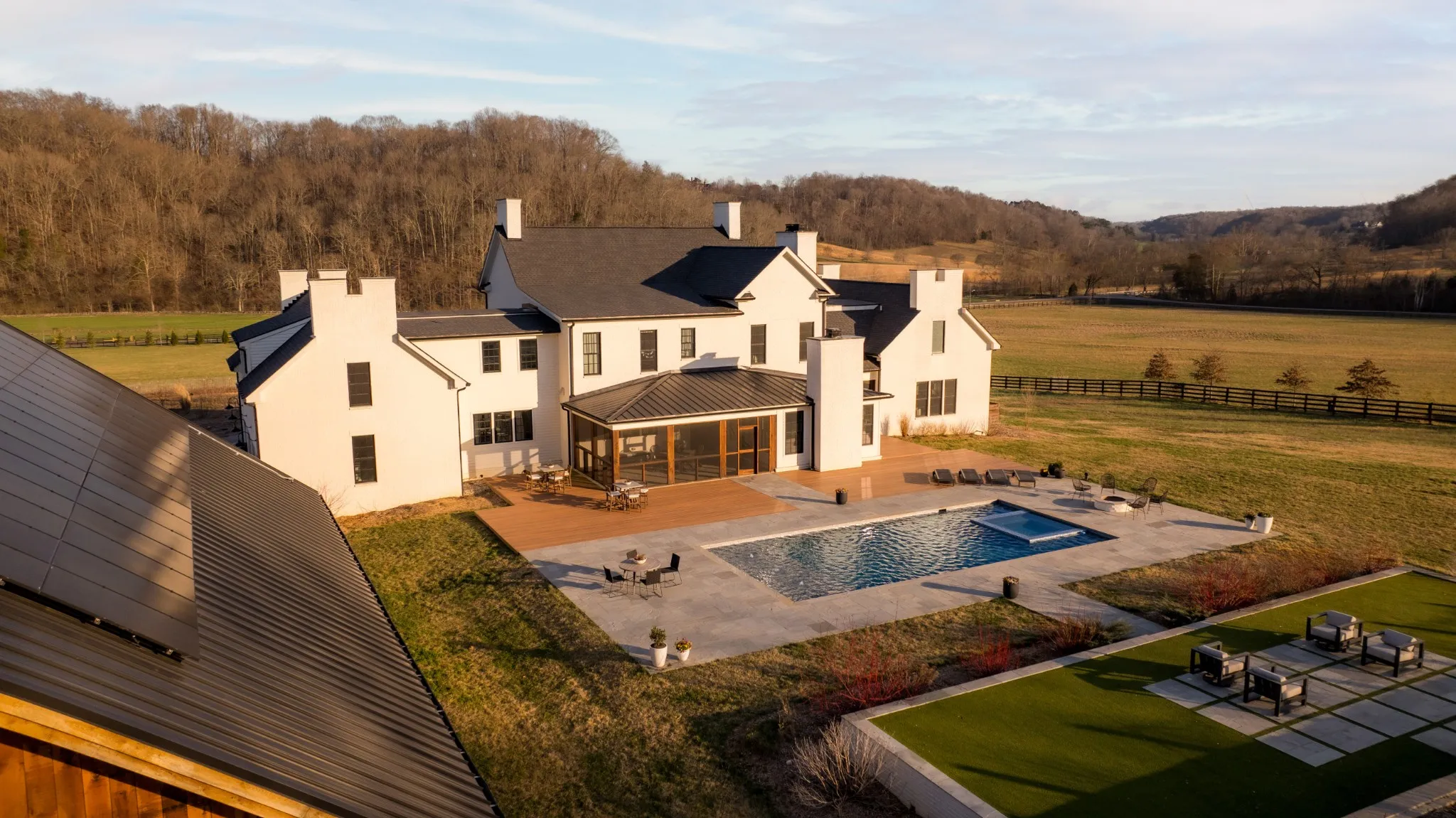 An exceptional 25-acre organic regenerative farm nestled in the heart of Leipers Fork, Tennessee. This rare estate features a sprawling 8,091 sq ft farmhouse with primary suites on the first and second floor. Three additional bedrooms on 2nd floor all with en suite and room currently used as an office with en suite. Large bonus room wired for an overhead projector. Custom climate controlled car barn with glass writing studio overlooking car collection. Front porch sunrise views and rear sunset views from screen porch and sunroom across the pool and spa. Primary suite on first floor has a second private screen porch with fireplace. Additional hilltop build sites with breathtaking views. This self-sufficient regenerative farm is equipped with well water and solar power, ensuring a sustainable, eco-friendly lifestyle. The farm is fenced and cross fenced providing multiple pastures for livestock along with an agriculture barn, multiple run-in sheds and a chicken/duck coop. There are 200 fruit trees and gardens to feed 20 families. 13 acres are run with invisible fencing for dogs. This property offers the rare combination of luxury living, organic farming, and endless possibilities for expansion, set in the picturesque countryside of Leipers Fork and close to modern amenities.
