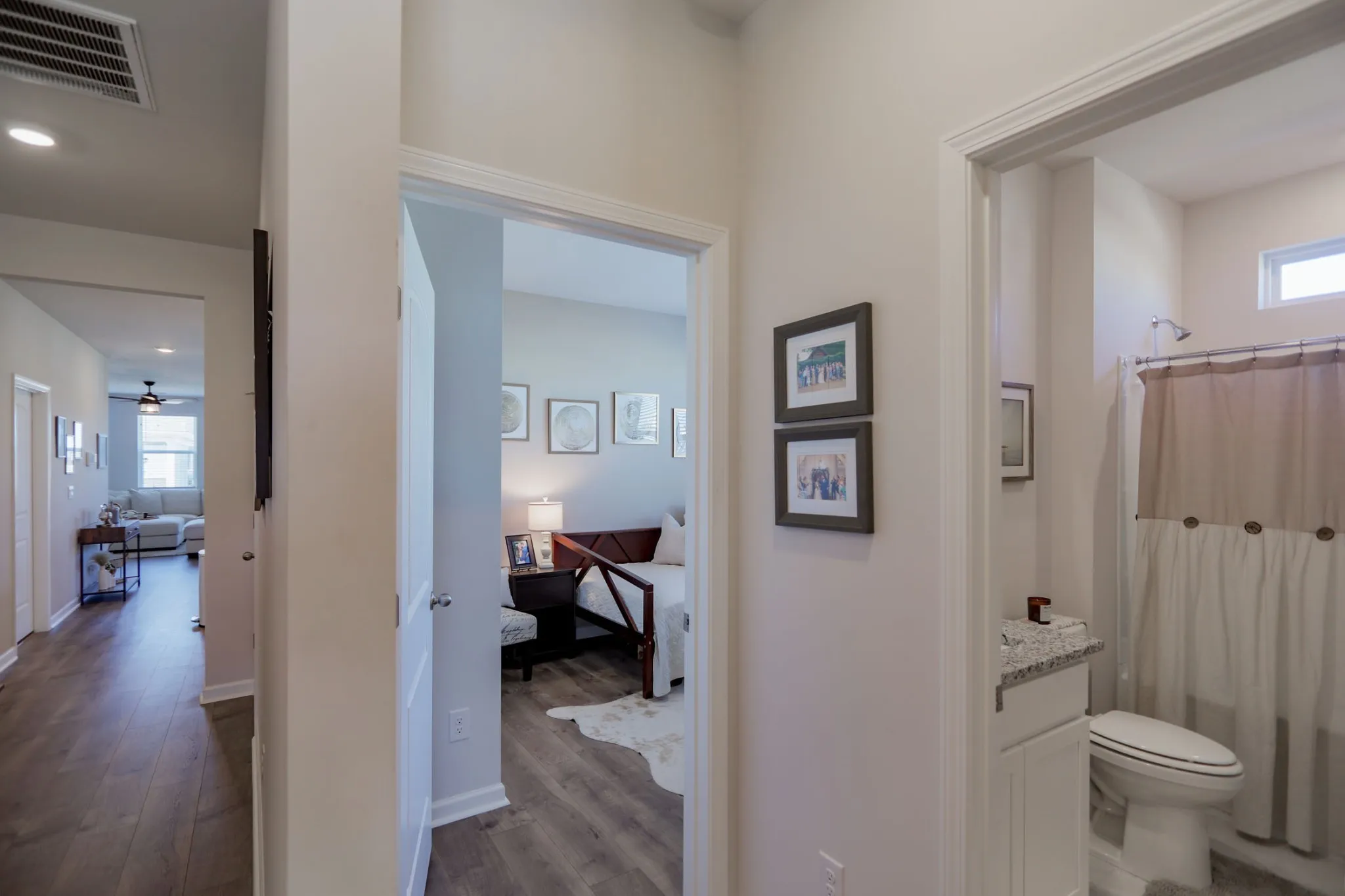 Discover the perfect blend of comfort and style in this 4-bedroom home, designed for both relaxation and entertaining. The Primary Bedroom gives a wonderful retreat with its walk in glass door shower and separate vanities. The large, open kitchen features an 8-foot island, granite countertops, and a walk-in pantry, seamlessly connecting to the charming dining room and expansive living room area. Enjoy outdoor living with a covered back patio and a charming covered front porch. The home also includes a 2-car garage for your convenience. Located in a vibrant neighborhood, residents have access to a community pool, tennis courts, and a clubhouse. Conveniently situated close to the interstate, shopping, and dining, this home offers everything you need for modern living. Don’t miss out on this incredible opportunity!