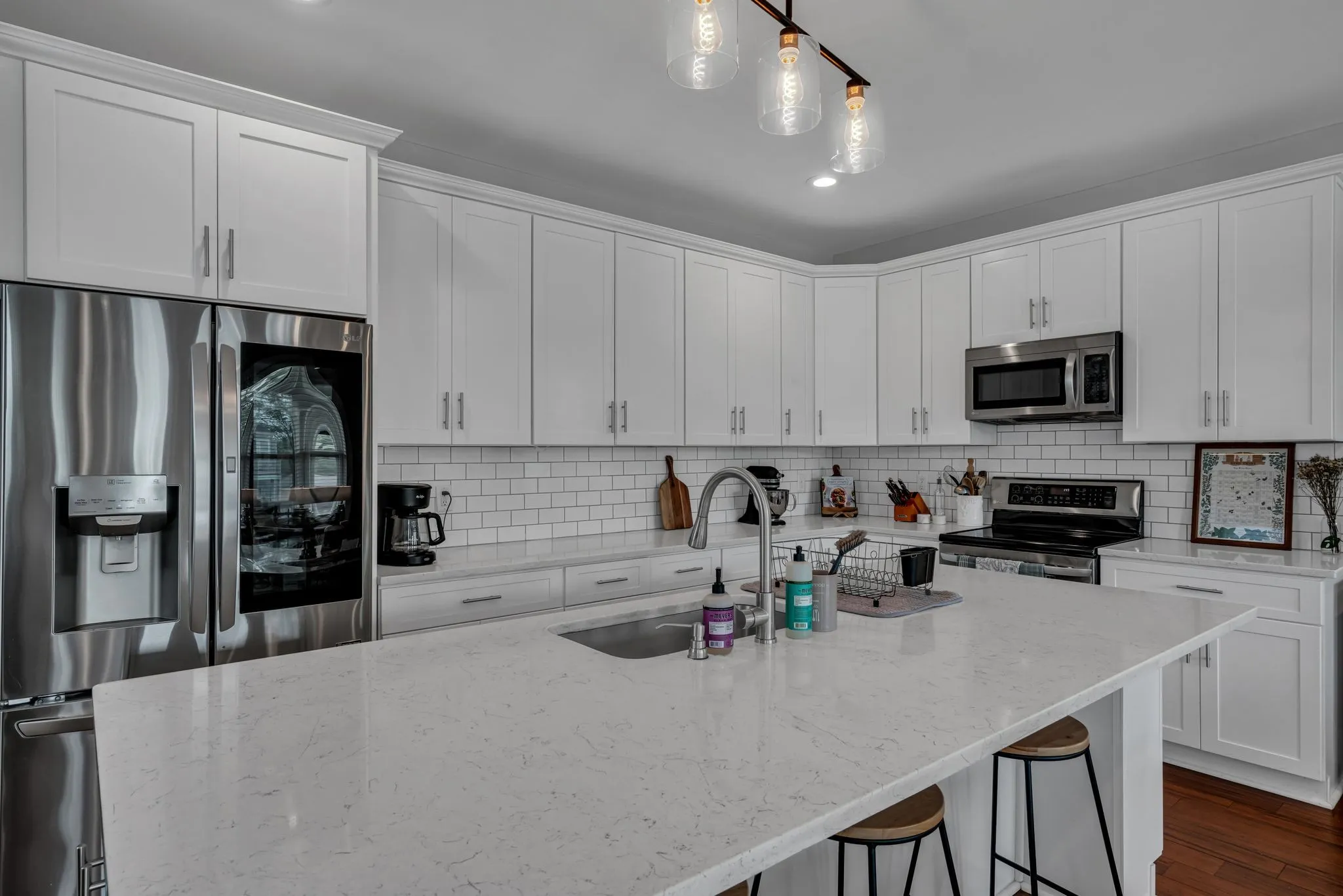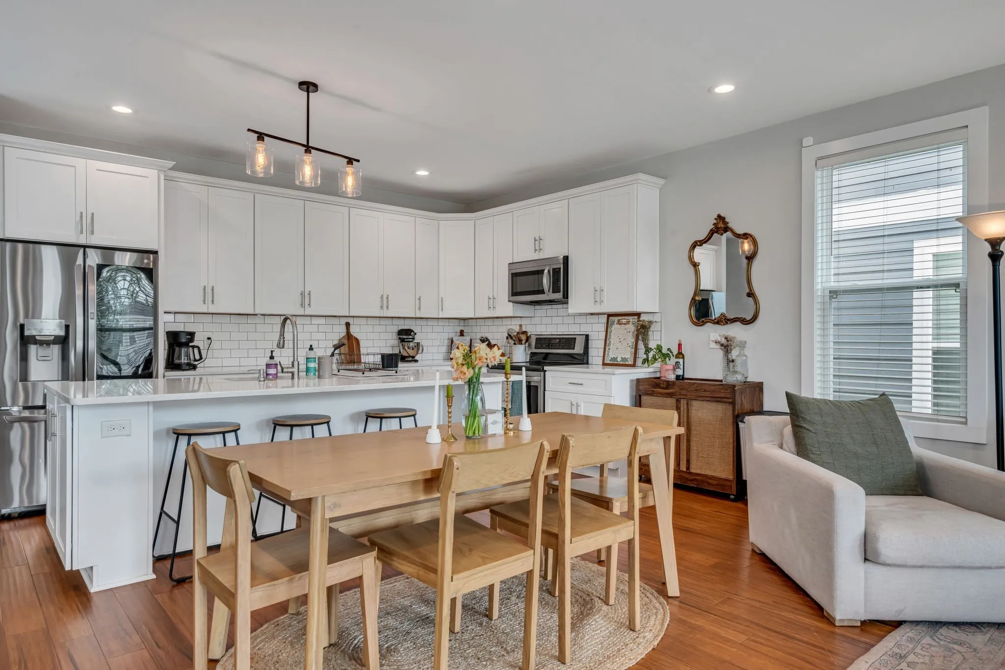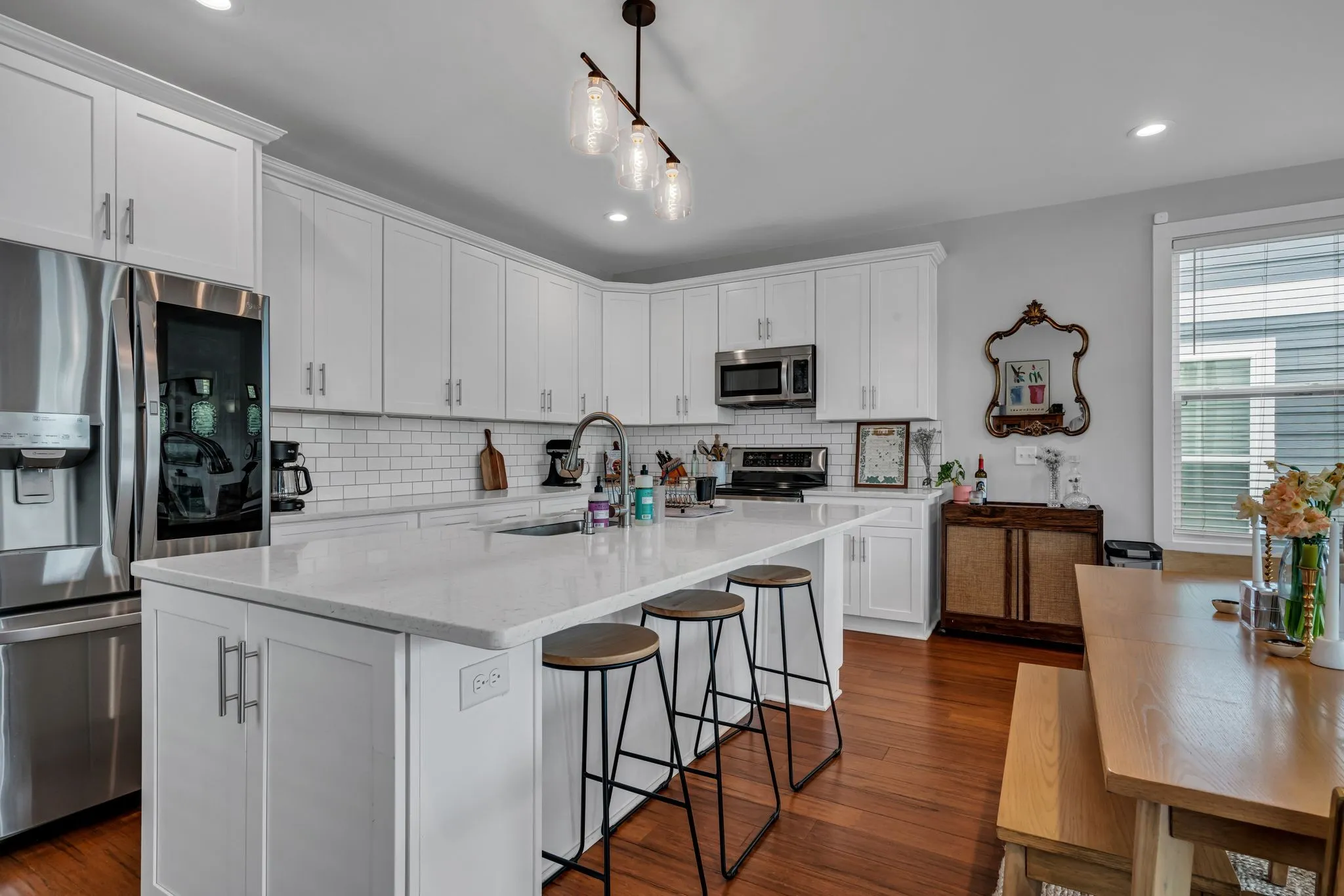 Exciting chance to own in Nations! Enjoy the convenience of strolling to numerous eateries, cozy coffee shops, and beautiful West Park, all while being just a stone’s throw away from the interstate and downtown Nashville. This spacious floor plan boasts two luxurious Primary ensuites. The downstairs Primary bedroom is complete with its own exterior entrance and convenient kitchenette—a unique setup ideal for a home office or accommodating in-law/guest suite. Enjoy the multiple levels of covered porches and your own private fenced-in backyard with a charming deck. Many invitations to indoor and outdoor entertaining and relaxing in this meticulously maintained and move-in ready home