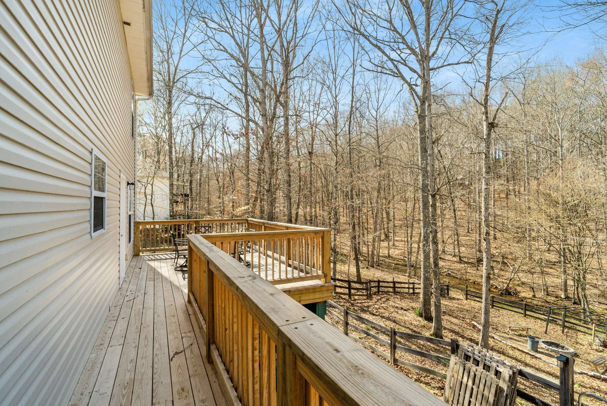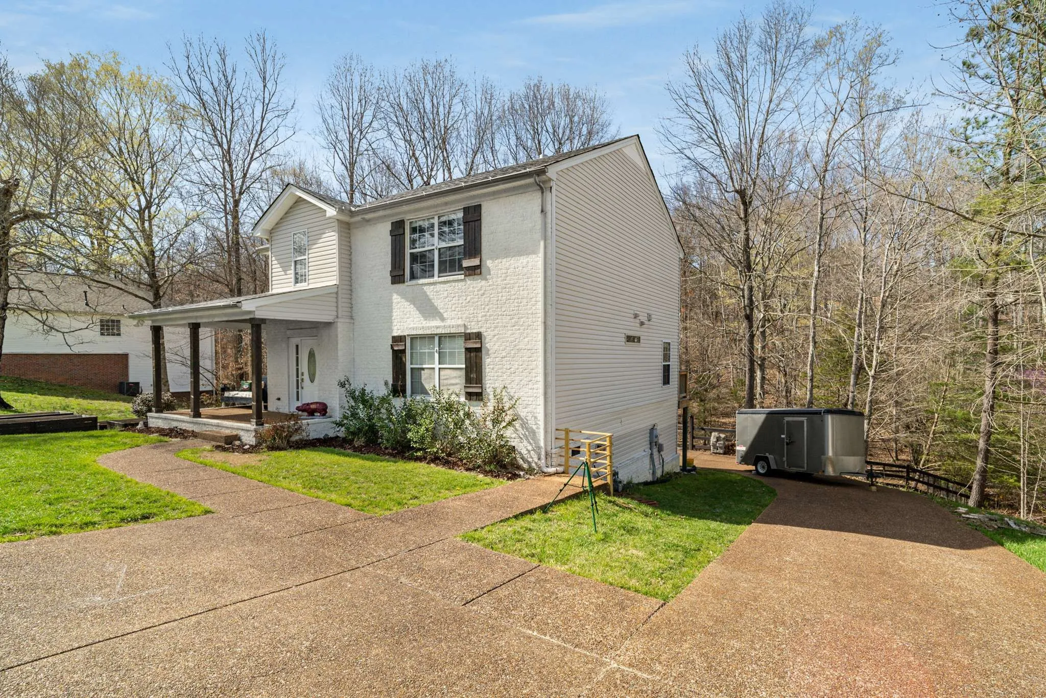 Presenting this amazing 4-bedroom, 3.5-bath home in the heart of Fairview! This home is perfectly situated near future retail and dining hotspots, yet surrounded by trees, a creek, and tranquility. Imagine taking an afternoon nap on your bed swing on the covered front porch with a good book, or enjoying your morning coffee out back. The backyard landscaping, complete with a built-in firepit and serene creekside views, is a sight to behold from the deck that spreads the full length of the rear of the home—the ideal spot for outdoor dinners and gatherings with friends. A main level primary en suite bedroom; an additional primary bedroom with en suite upstairs, and 2 additional bedrooms and bath allows you to host family and visitors, in addition to the basement workout/flex room or office with a private entrance off the garage. Don’t miss the designated area for the perfect garden. Located on a quiet dead-end road surrounded by mature trees, this home offers both peace and convenience, with Bowie Nature Park, highly-rated Williamson County schools, shopping, and I-840 all nearby. Plus, there’s NO HOA! Don’t miss this opportunity to own a slice of heaven in Fairview.