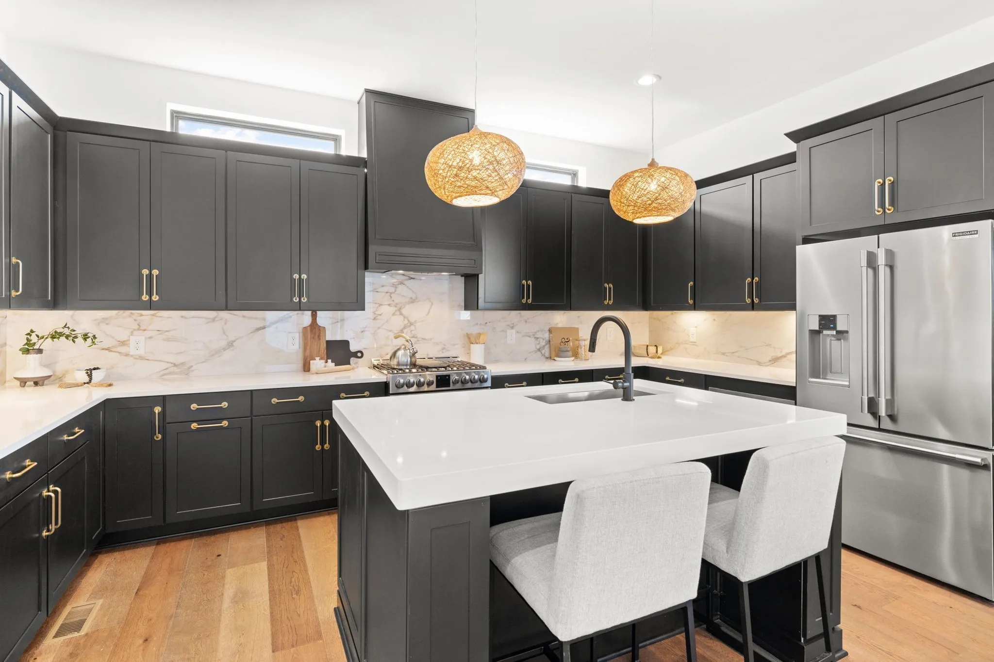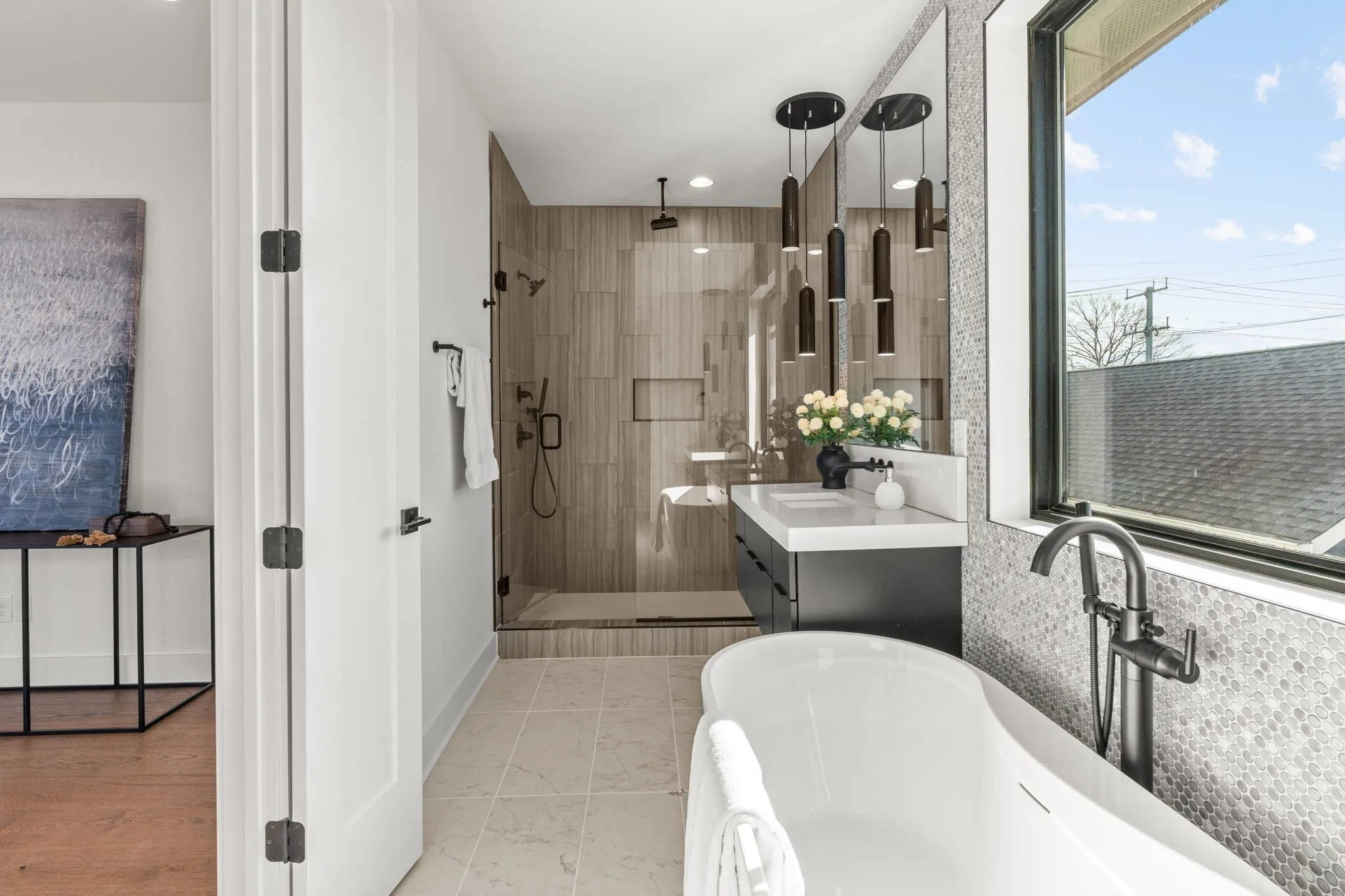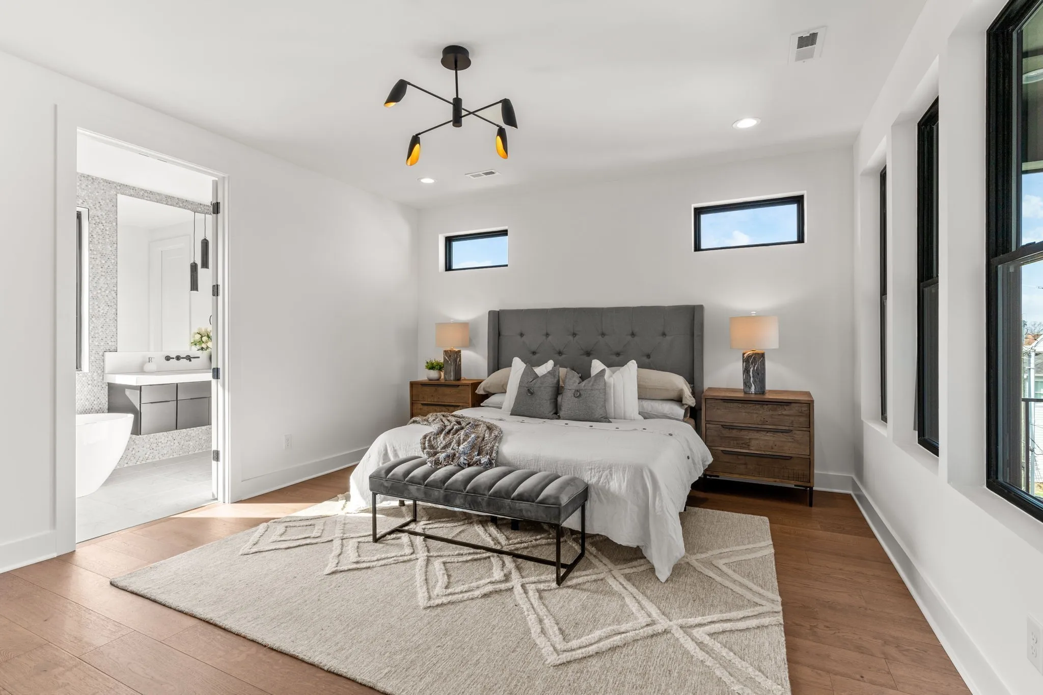 Experience modern luxury living in the heart of Nashville’s Edgehill neighborhood, just steps from Barcelona Wine Bar and minutes from Vanderbilt, Midtown, The Gulch, and 12South. This stunning home offers high-end designer finishes across three levels, perfect for those with the most discerning taste. The sleek matte black kitchen features mitered woven wool quartz countertops and a unique garage-style pass-through window, leading to the covered back deck with indoor/outdoor bar seating, making it an entertainer’s dream. The living room boasts a striking fireplace with matte black tiles reaching the ceiling and upgraded gas logs. The primary level bonus room includes its own covered deck, dry bar, wine fridge, mirrored tile, and open shelving—ideal for relaxation or hosting guests. The luxurious primary bath features floating vanities, a full wall of penny-round tile, and mitered quartz countertops. This property is fully fenced, with secure garage access for added privacy. Located in a vibrant neighborhood, you’re just steps away from local favorites such as Bella Napoli Pizzeria, Jack Brown’s Beer & Burger Joint, and Old Glory, while Osa Coffee Roasters, Bobby’s Idle Hour Tavern, and Playdate Bar are just a short stroll away. With a variety of dining, shopping, and entertainment options nearby, this home offers the best of Nashville living. Rent is $6,000 per month fully furnished, with washer and dryer included. Tenants are responsible for utilities, and lawn maintenance is included in the rent. A credit and background check is required. Application is available in the media section. 24 hour notice to show.
