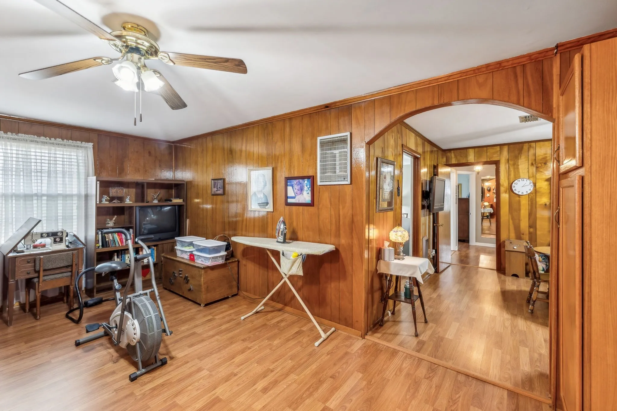 Charming Country Living – No HOA! This cozy 2-bedroom, 1-bath home sits on a sprawling 2-acre lot, offering endless possibilities. A versatile den could serve as a potential 3rd bedroom or home office. The home features low-maintenance laminate flooring throughout, with durable tile in the bathroom. The kitchen comes with appliances and a mounted TV, ready for your enjoyment. A chest freezer conveys. A detached garage provides extra storage or workshop space. Don’t miss out—schedule a showing today!