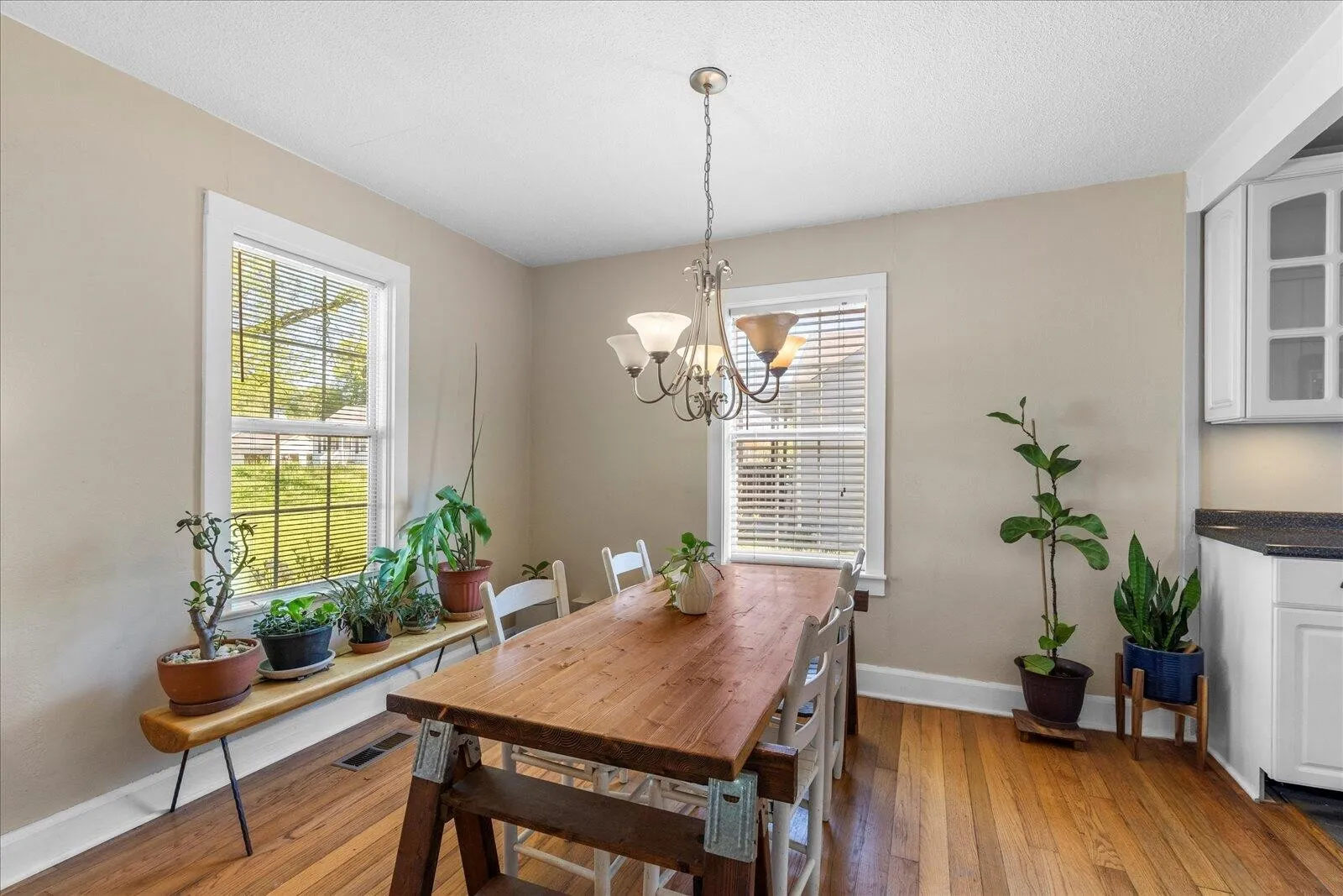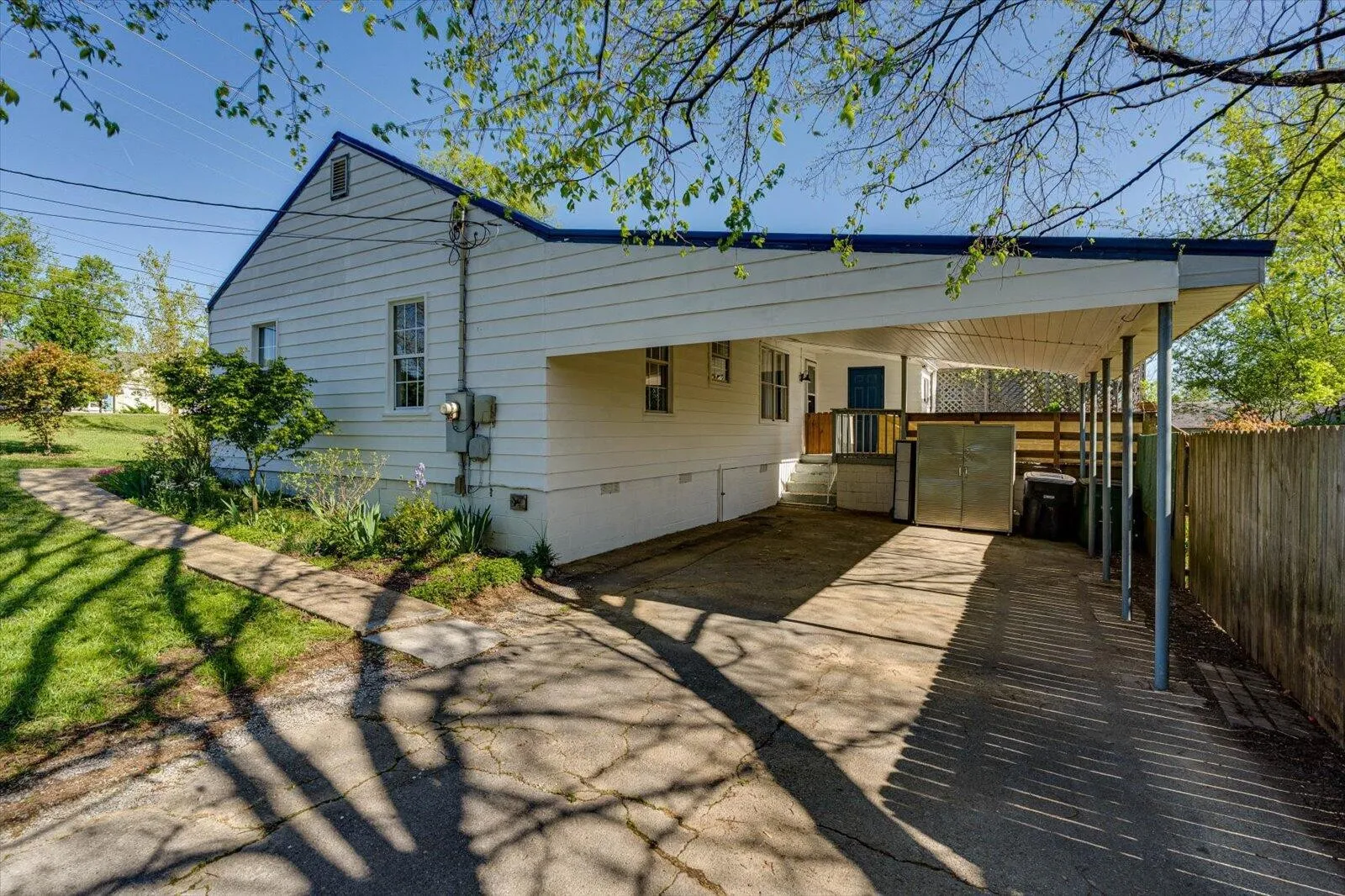 Welcome to this beautiful, quaint home in the heart of East Ridge. Situated on a corner lot, this charming one-level home has been thoughtfully renovated from top to bottom, making it move-in ready for its next owner. Step inside to find gorgeous solid hardwood floors that flow throughout the home, adding warmth and character. The newly remodeled galley kitchen boasts ample cabinetry and counter space conveniently located near the door transitioning out to a large outdoor deck, making your summer grill outs and entertaining all that much more enjoyable! The bathroom has been tastefully updated with a stylish tiled tub/shower combo and contemporary fixtures. Three spacious bedrooms and a cozy living room complete this primary level. Take a peek upstairs at the attic space that the current owners have added flooring and lighting to, making it ready for you to turn into an additional space for an office or reading nook. Several big ticket items have been recently updated including plumbing and electrical (2017), Bryant 607 E 2-stage heat pump 15 SEER rated HVAC (2016), Ductwork (2016), hot water heater (2018), ridge vent, soffit vents added to the metal roof (2017), a new sewer line installed by WWTA (2020), fresh coat of exterior and interior paint (2024), and a fully fenced in backyard perfect for Fido! Beyond the interior updates, this home offers great outdoor spaces. Relax in your rocking chair on the front porch, host summer cookouts on the spacious back deck, let Fido roam freely in the fully fenced in backyard, and enjoy the pleasant pickings of native species the current owner tastefully planted. The oversized attached carport provides ample covered parking, additional storage, and an attached covered laundry room that will fit a full size washer and dryer. This charming abode is conveniently located close to schools and zoned for Spring Creek Elementary, East Ridge Middle and East Ridge High School.