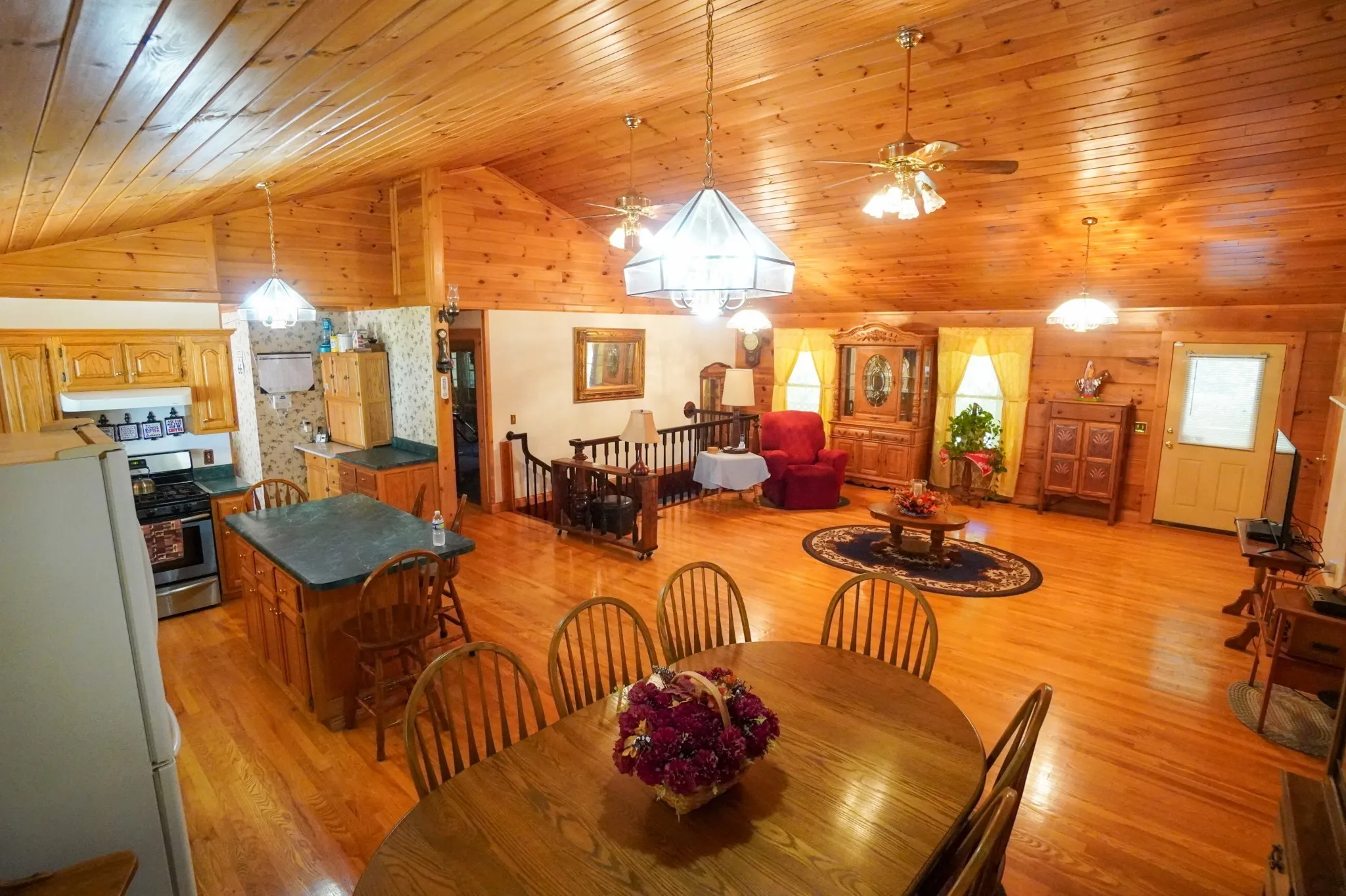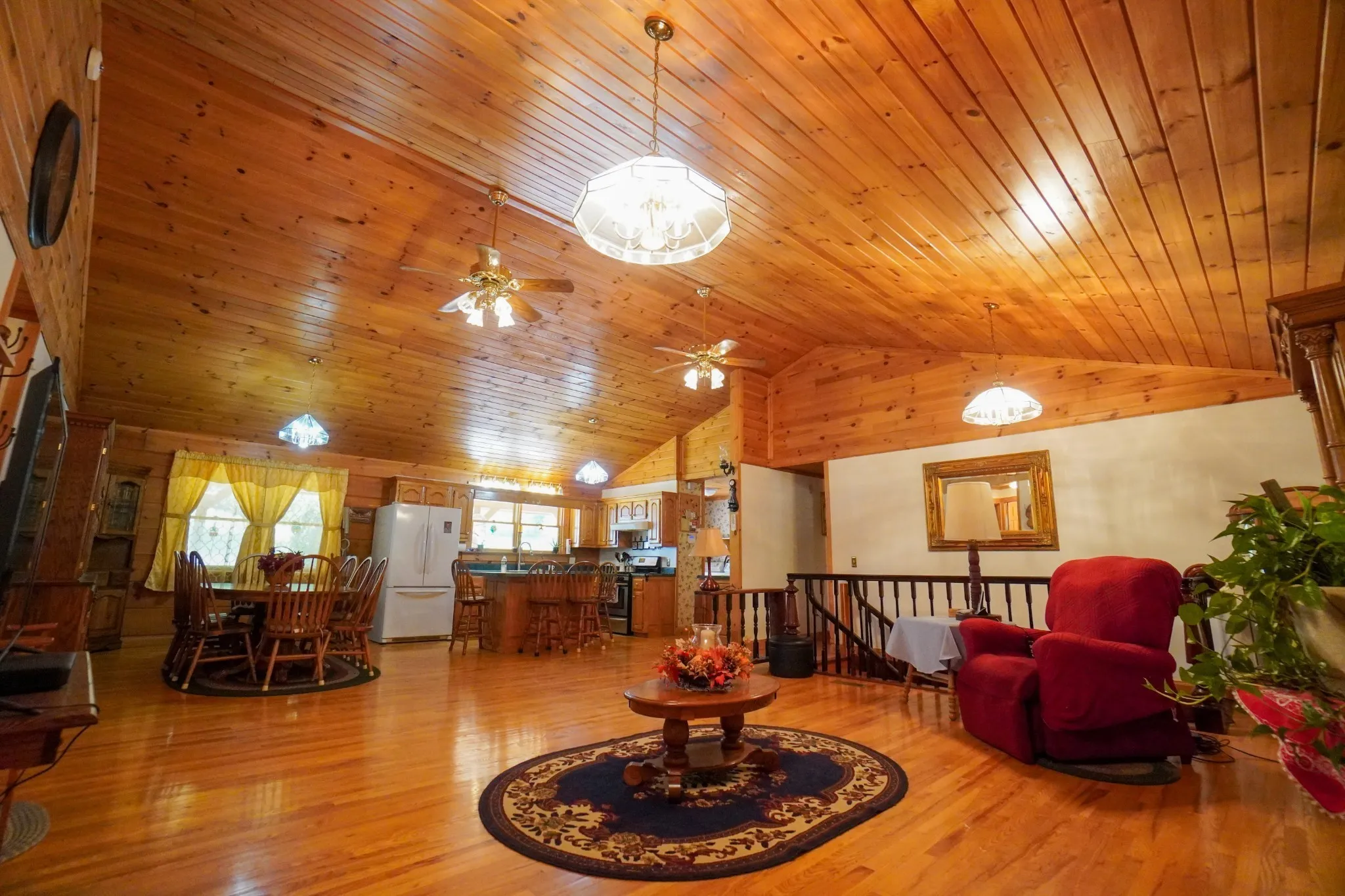 Step inside to an inviting open floor plan, where soaring cathedral ceilings and rich red oak flooring create a warm yet airy ambiance. The spacious great room seamlessly flows into the kitchen and dining area, making it an ideal space for gatherings.\n