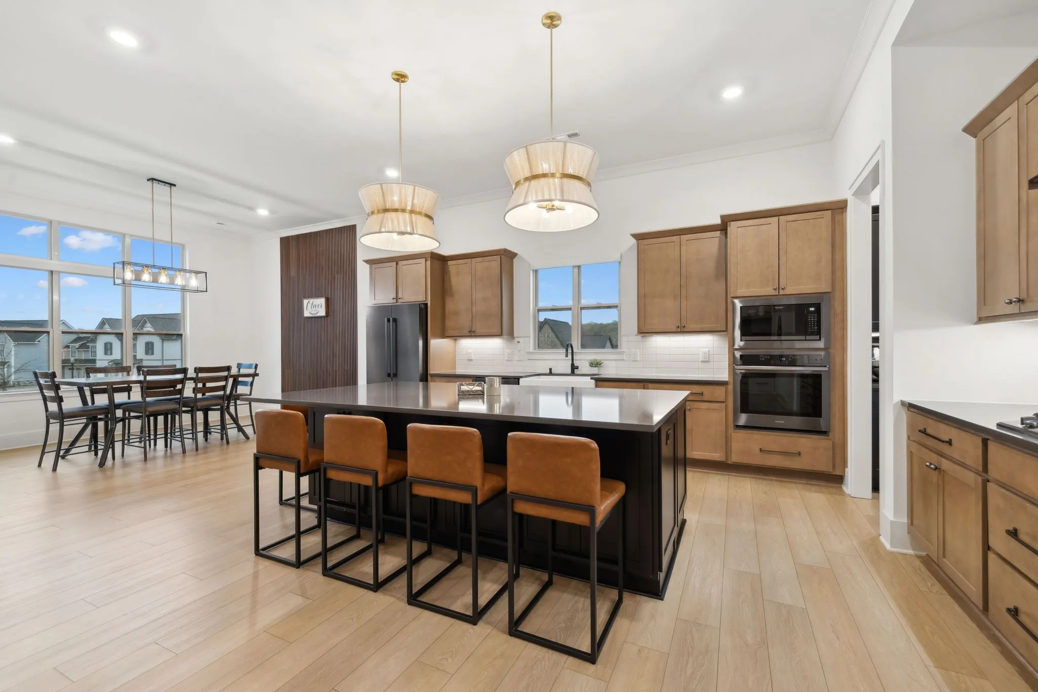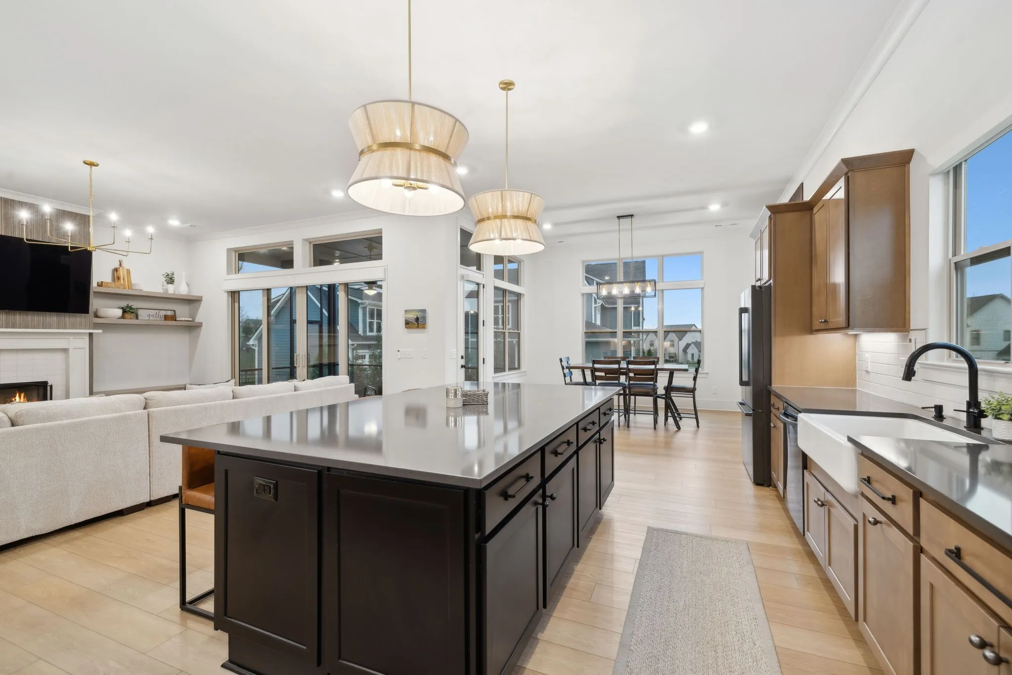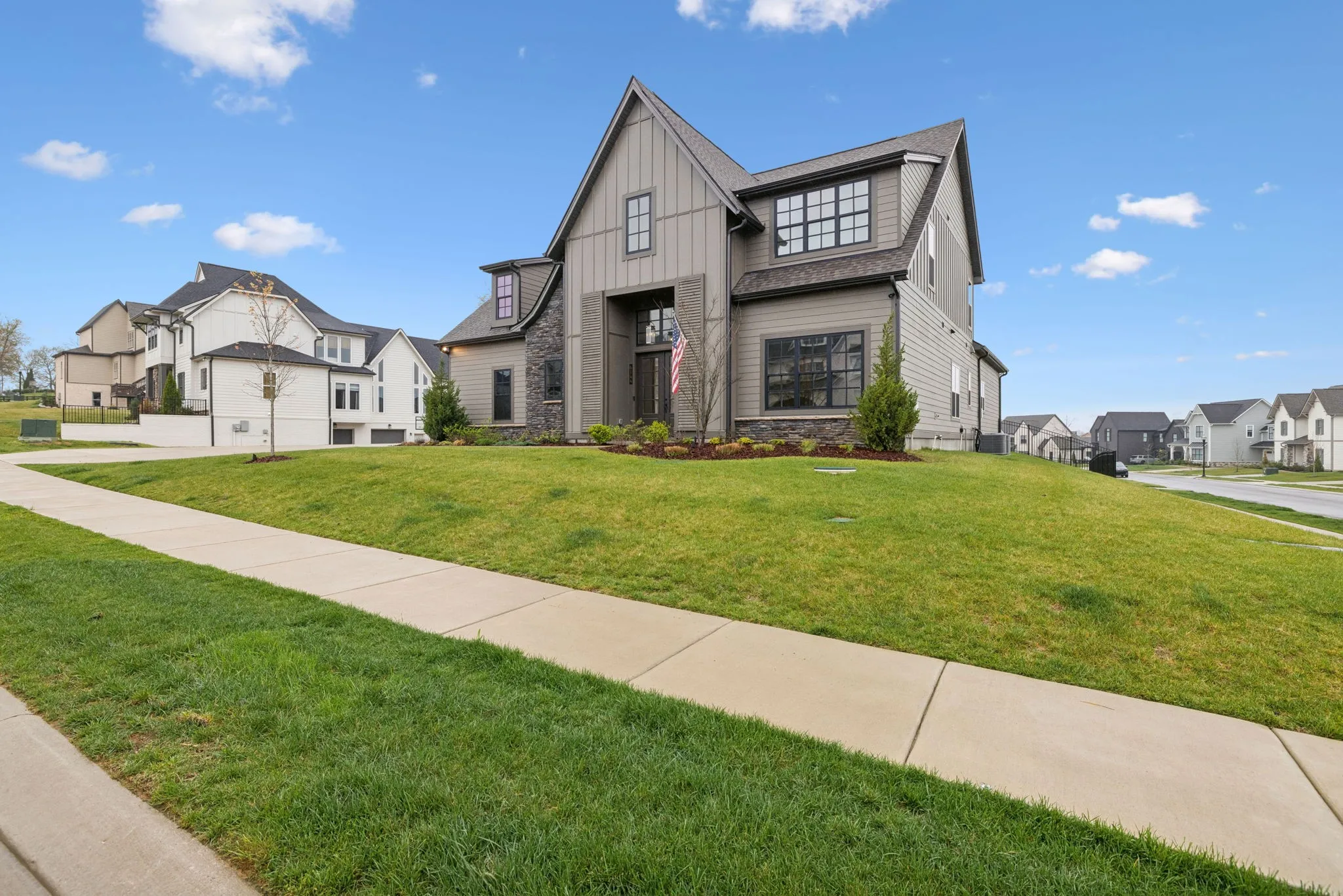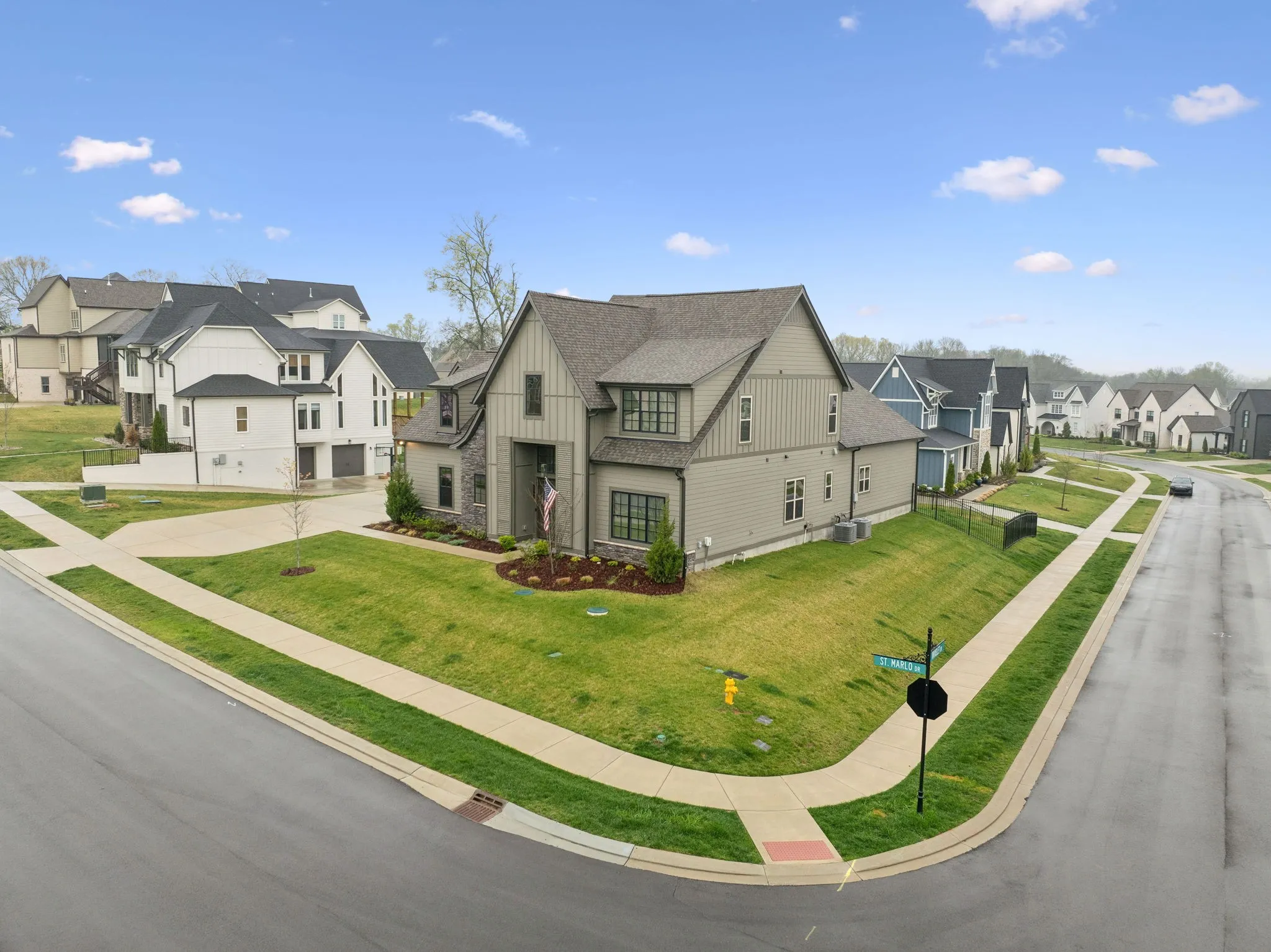+"PublicRemarks": "Experience the perfect blend of luxury and modern elegance in this exceptional home, ideally positioned on a desirable corner lot in the prestigious Saint Marlo community. From the moment you step inside the grand two-story foyer, you'll be captivated by the open and inviting layout, thoughtfully designed for both comfort and style. The gourmet kitchen is a culinary masterpiece, boasting warm cabinetry, a spacious center island, built-in oven, gas cooktop, farmhouse sink, and a walk-in pantry with a sink and beverage center. The adjacent dining area ensures effortless entertaining, while modern lighting, a cozy gas fireplace, and soaring 11-ft ceilings elevate the home’s sophisticated ambiance. Tinted windows with motorized shades provide an ideal balance of natural light and privacy. The main-level primary suite is a private sanctuary, featuring a spa-like bath with a large floor to ceiling tile walk-in shower, double vanities, and an oversized walk-in closets. A flex room on the main level offers versatility, perfect for use as a home office, formal dining room, or sitting area. Upstairs, two additional bedrooms, a spacious open bonus room, and ample storage complete the second level. There is room to finish the large unfinished space above the garage for a 5th bedroom if desired. Step outside to the screened back patio, where lush trees create a peaceful and private outdoor retreat. Everyday functionality is seamlessly integrated with a drop zone, custom-upgraded laundry room, and powder bath conveniently located off the garage. One of the home’s standout features is the extended 4-car garage, a rare and desirable amenity. With its thoughtful layout, premium finishes, and unbeatable location, this home truly offers the best of Franklin living!"