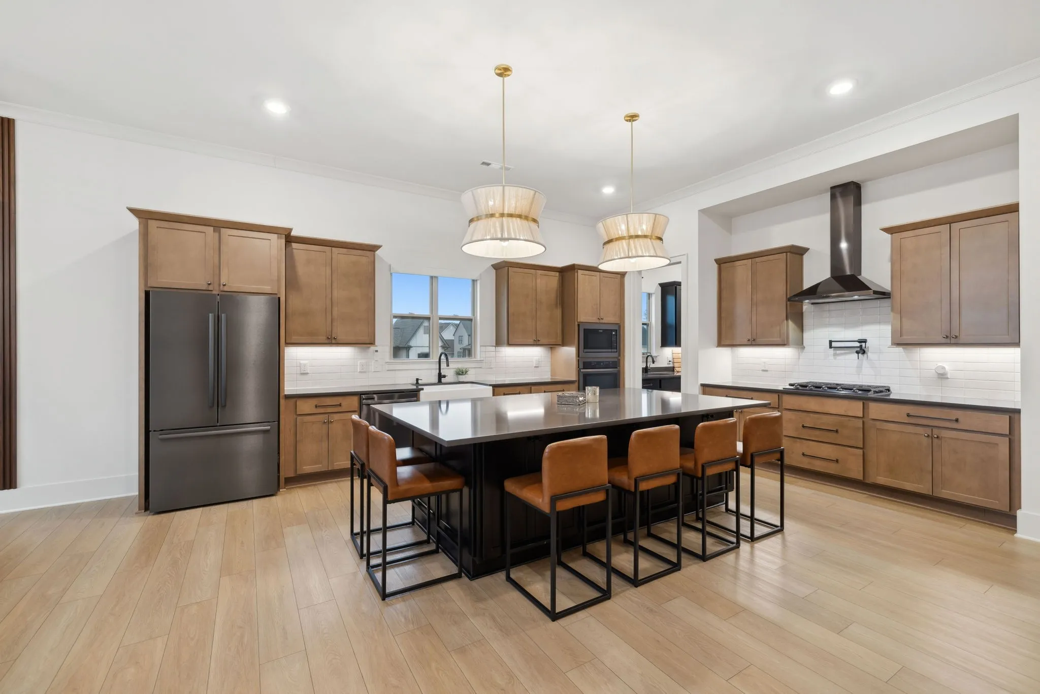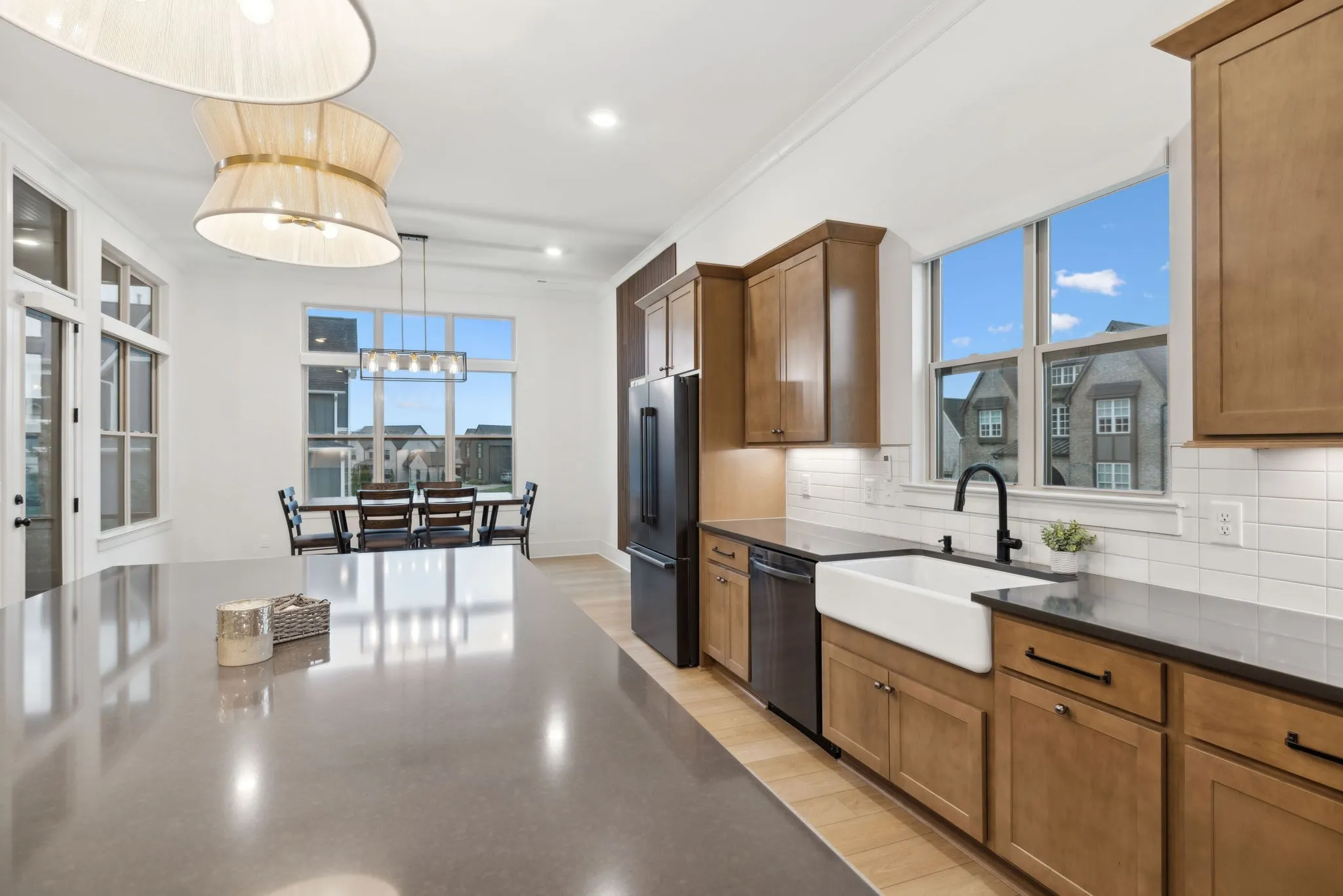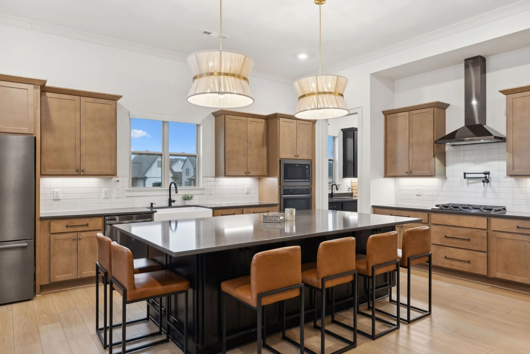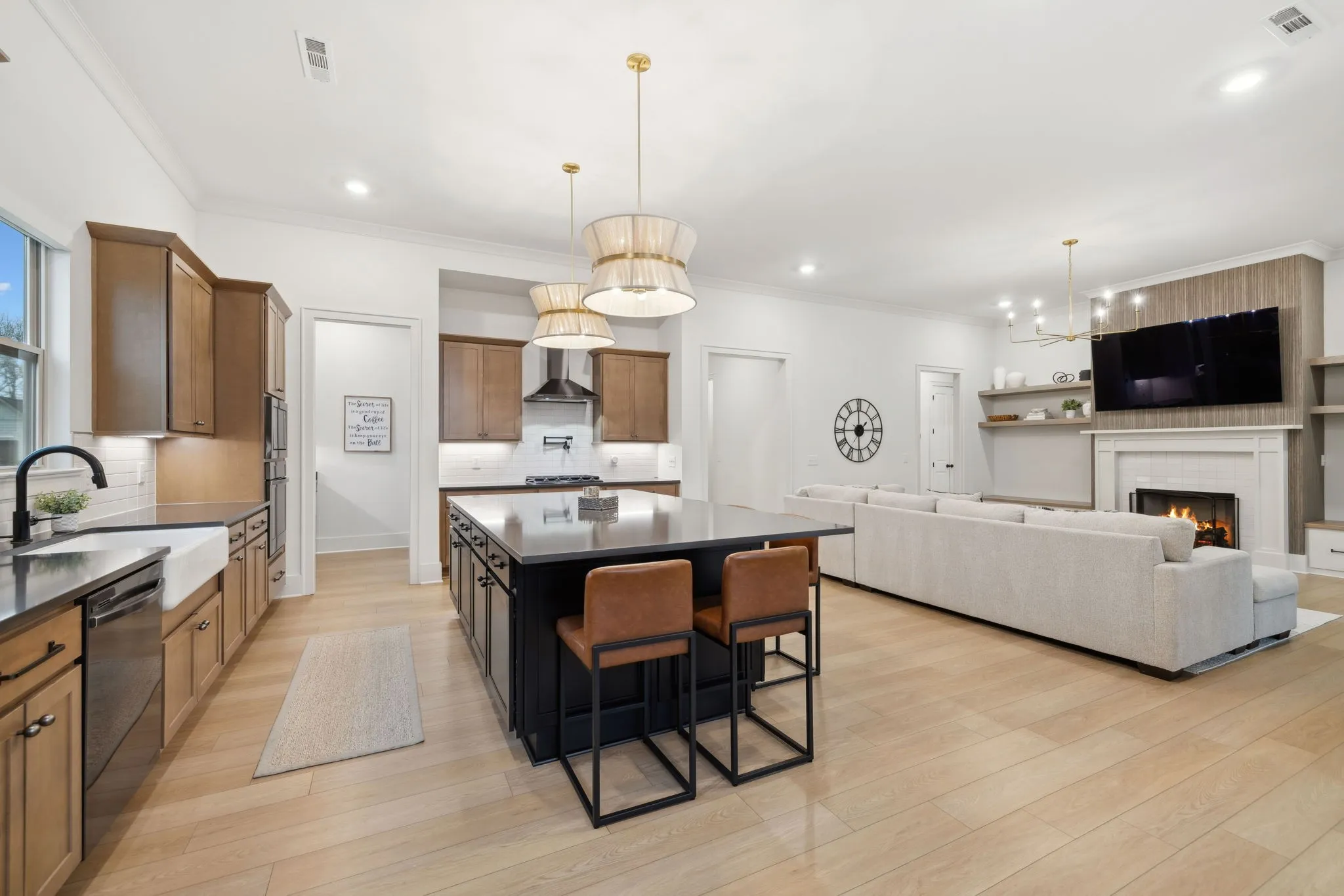 +"PublicRemarks": "Experience the perfect blend of luxury and modern elegance in this exceptional home, ideally positioned on a desirable corner lot in the prestigious Saint Marlo community. From the moment you step inside the grand two-story foyer, you'll be captivated by the open and inviting layout, thoughtfully designed for both comfort and style. The gourmet kitchen is a culinary masterpiece, boasting warm cabinetry, a spacious center island, built-in oven, gas cooktop, farmhouse sink, and a walk-in pantry with a sink and beverage center. The adjacent dining area ensures effortless entertaining, while modern lighting, a cozy gas fireplace, and soaring 11-ft ceilings elevate the home’s sophisticated ambiance. Tinted windows with motorized shades provide an ideal balance of natural light and privacy. The main-level primary suite is a private sanctuary, featuring a spa-like bath with a large floor to ceiling tile walk-in shower, double vanities, and an oversized walk-in closets. A flex room on the main level offers versatility, perfect for use as a home office, formal dining room, or sitting area. Upstairs, two additional bedrooms, a spacious open bonus room, and ample storage complete the second level. There is room to finish the large unfinished space above the garage for a 5th bedroom if desired. Step outside to the screened back patio, where lush trees create a peaceful and private outdoor retreat. Everyday functionality is seamlessly integrated with a drop zone, custom-upgraded laundry room, and powder bath conveniently located off the garage. One of the home’s standout features is the extended 4-car garage, a rare and desirable amenity. With its thoughtful layout, premium finishes, and unbeatable location, this home truly offers the best of Franklin living!"
